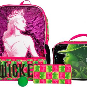 AI ACCESSORY INNOVATIONS Sanrio\u2019s Cinnamoroll 5 Piece Backpack Set, Hello Kitty Kawaii Flip Sequin Girls School Bag with Front Zip Pocket, 2 Side Mesh Pockets, Blue