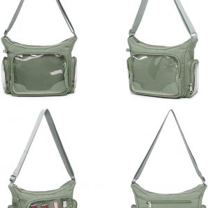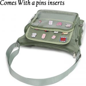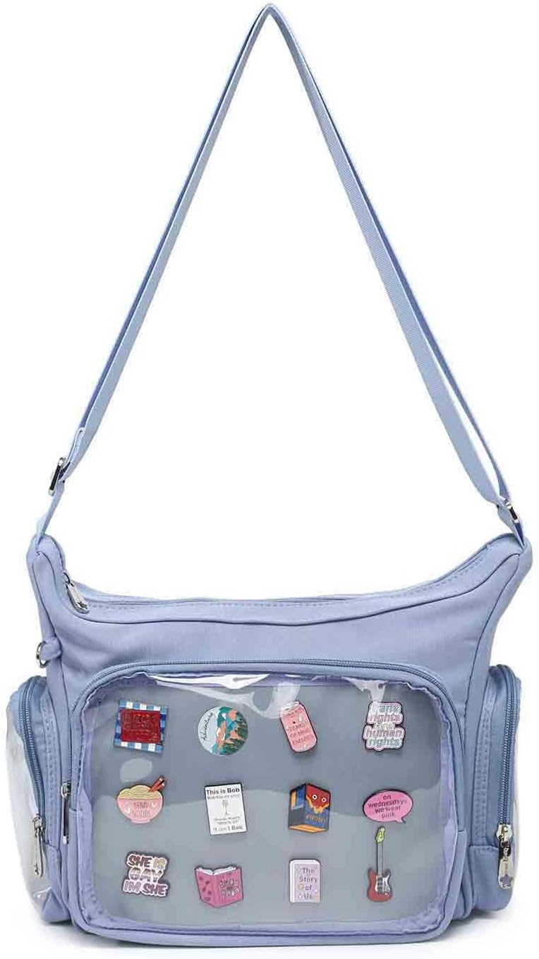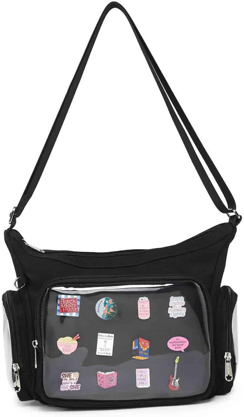 Canvas Ita Bag Crossbody Shoulder Bag Kawaii Purses and Handbags with Anime Pins Display