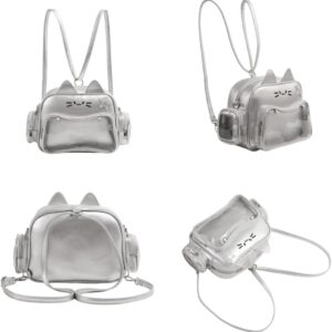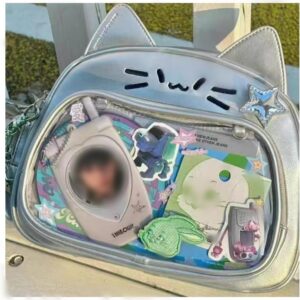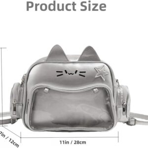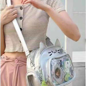 Cat Ita Bag Pin Display Backpack for School PU Leather Preppy Backpack for Girls Y2k Aesthetic Single Shoulder Bag