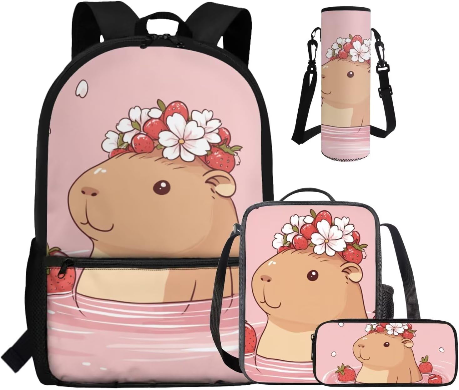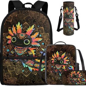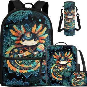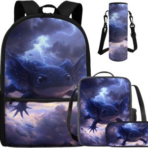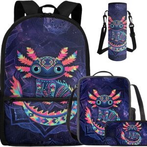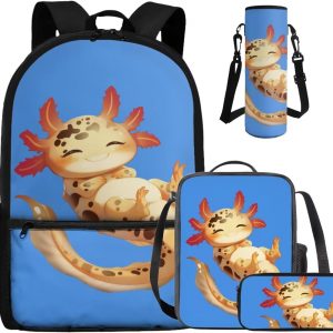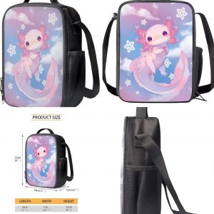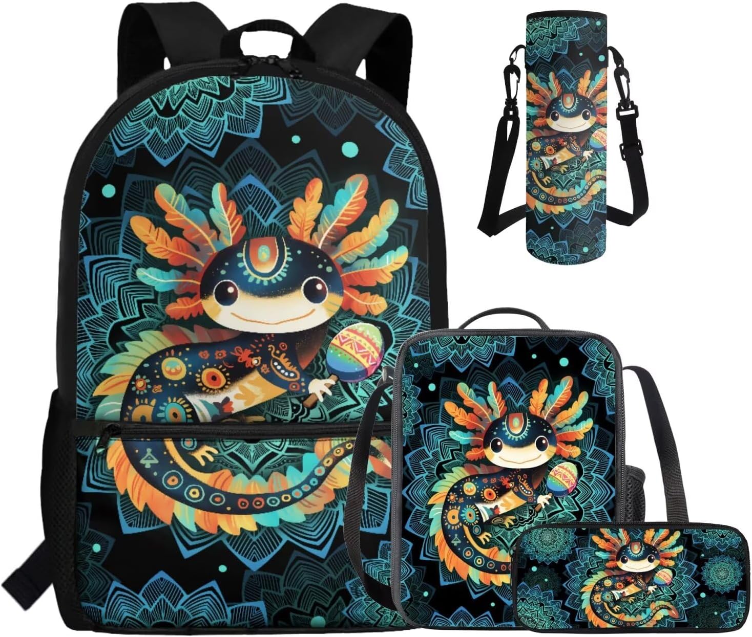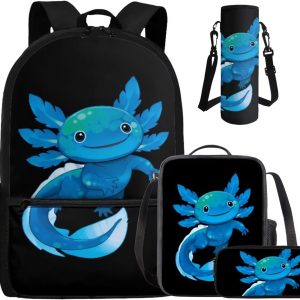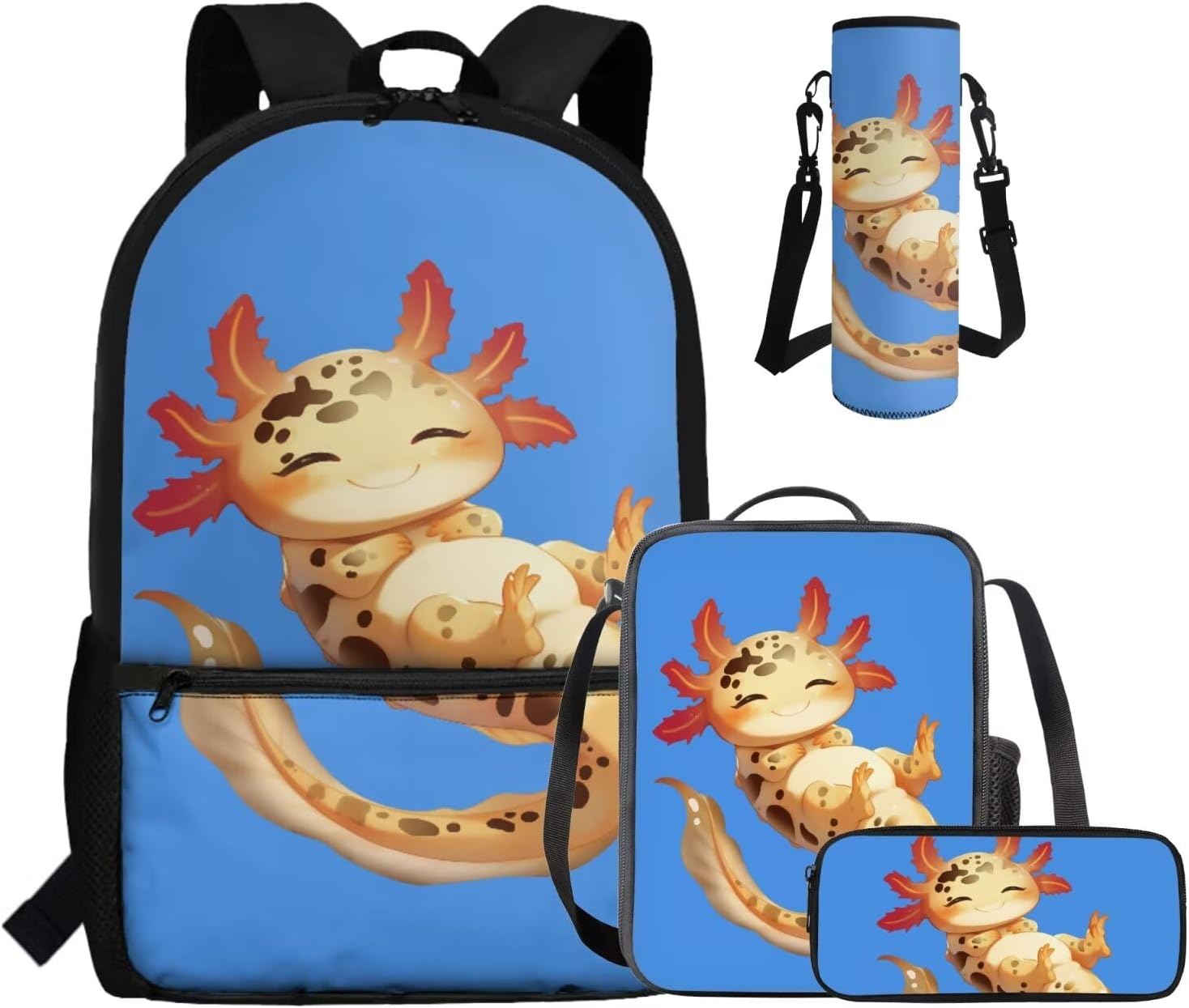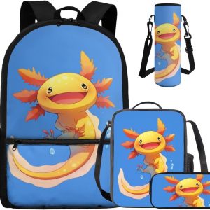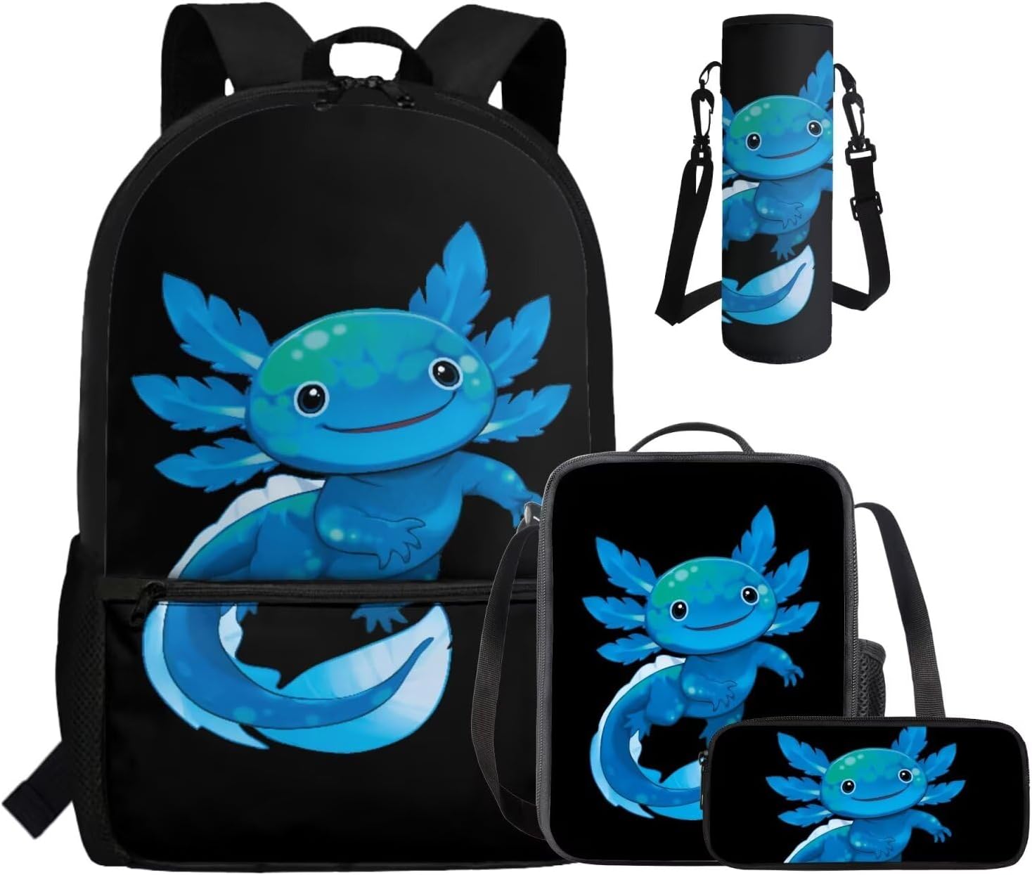 COEQINE Girls Backpack with Water Bottle Pink Axolotl Stars Y2K for 8-10 Kawaii Bookbags Kids School Bag Set Lunch Box Pencil Case Sleeve Teens Purse