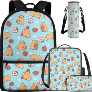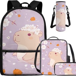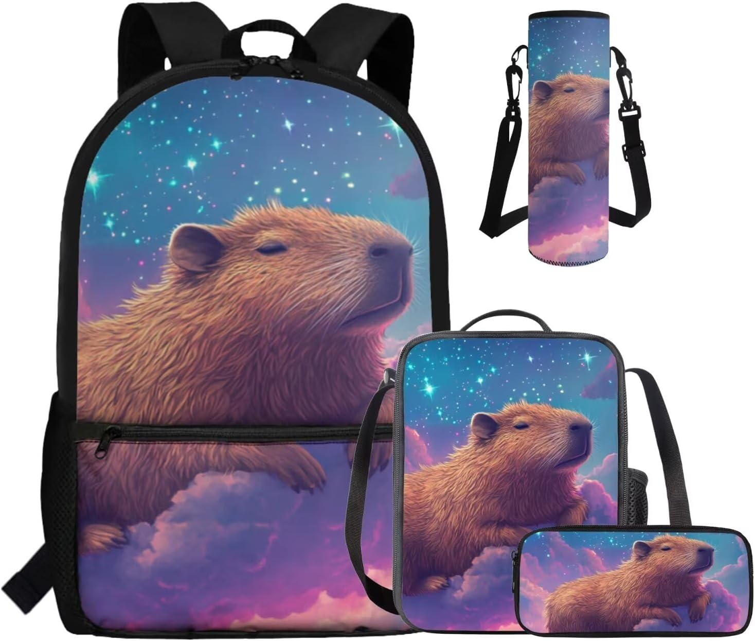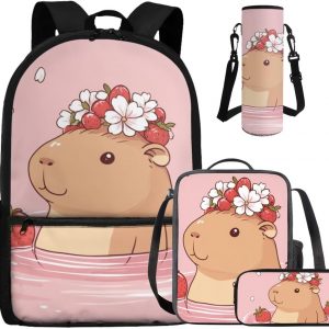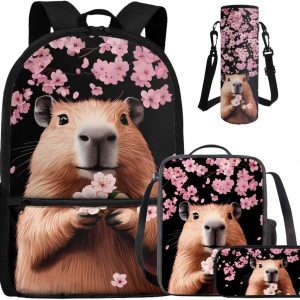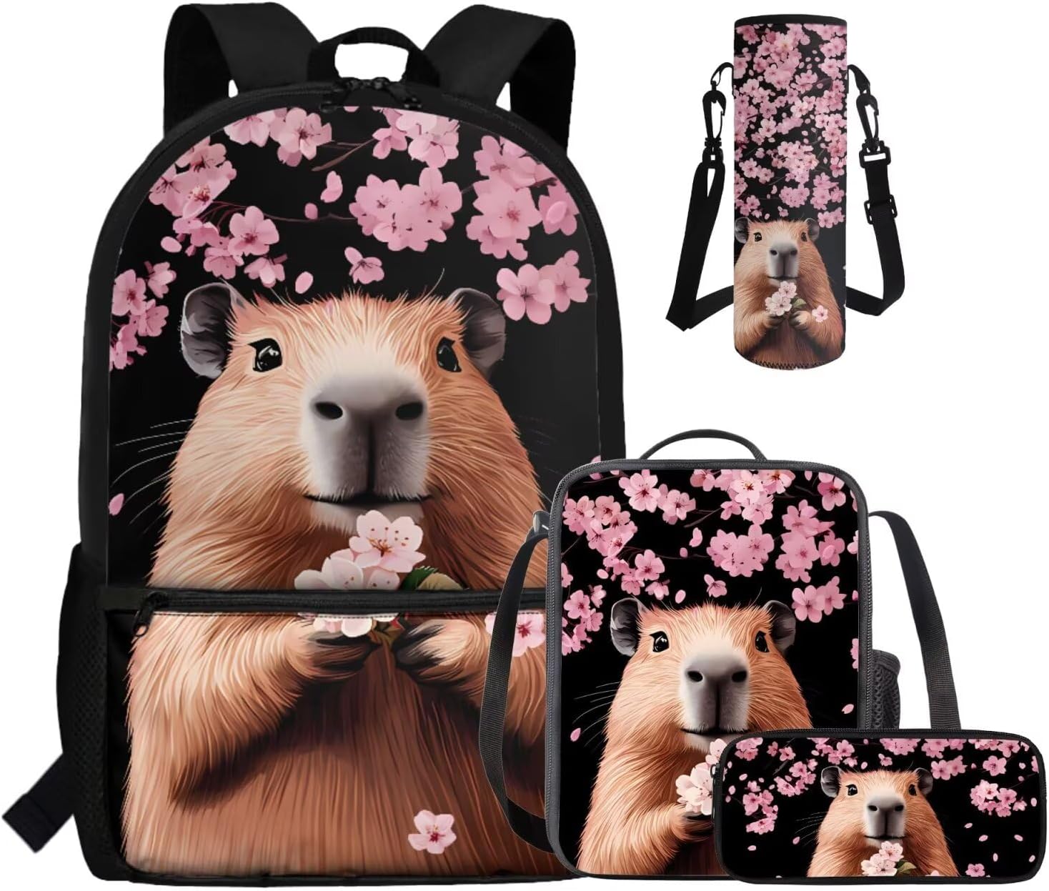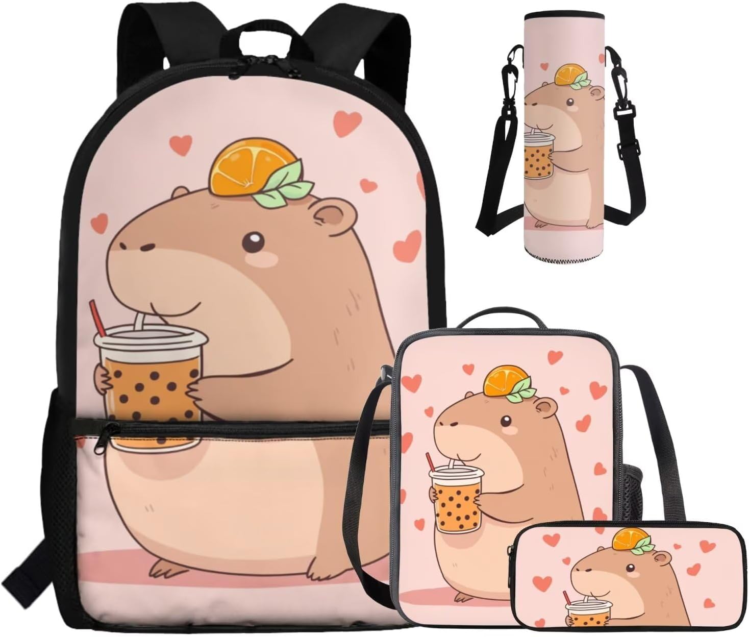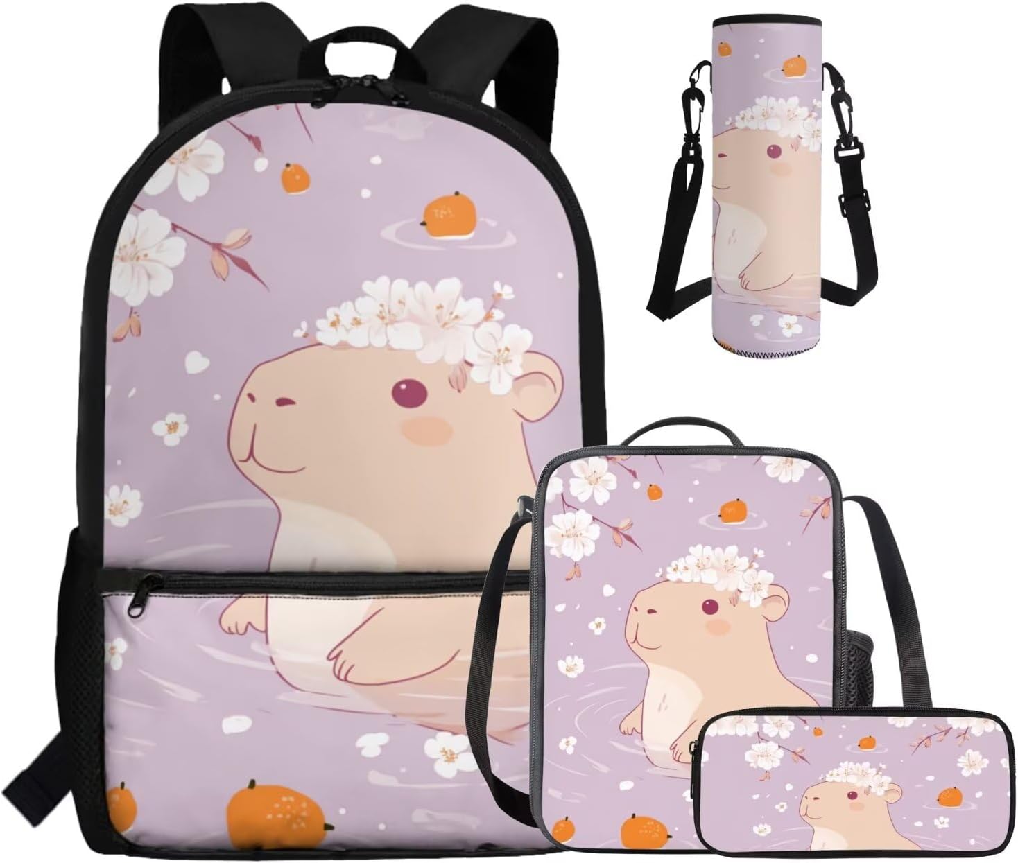 COEQINE Girls Backpack with Water Bottle Pink Axolotl Stars Y2K for 8-10 Kawaii Bookbags Kids School Bag Set Lunch Box Pencil Case Sleeve Teens Purse