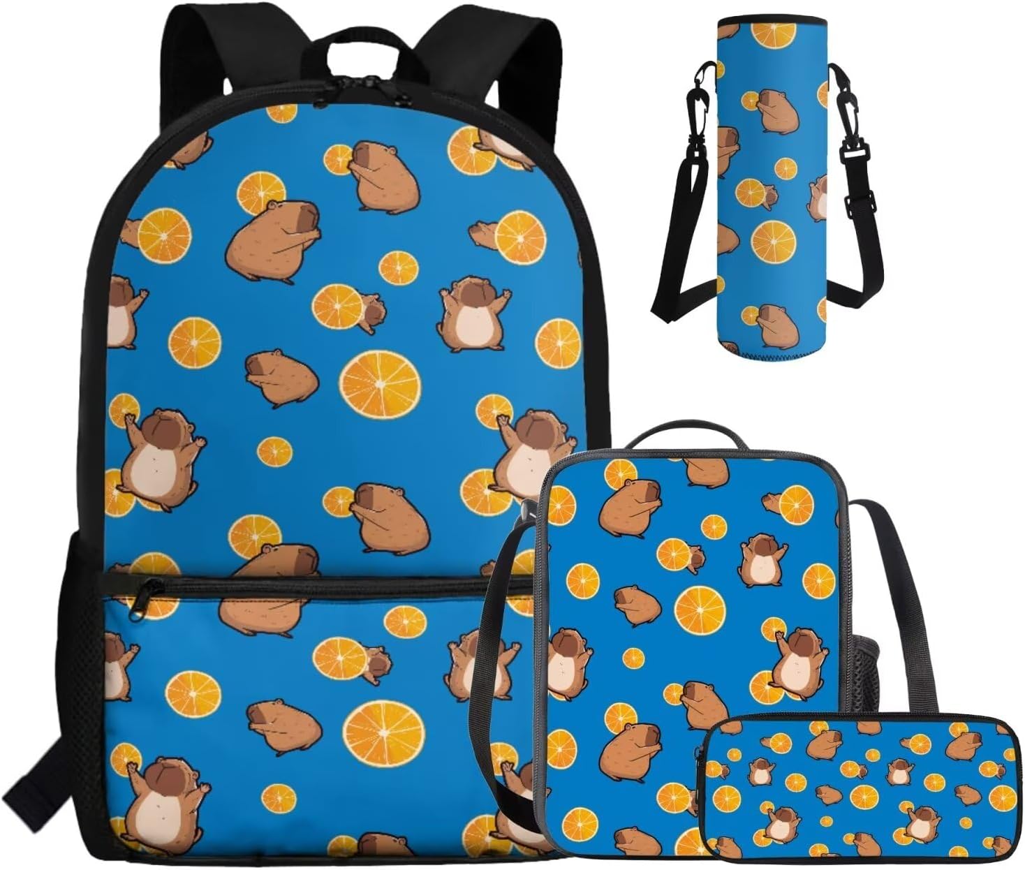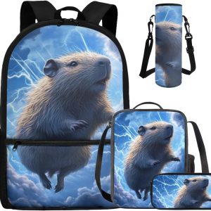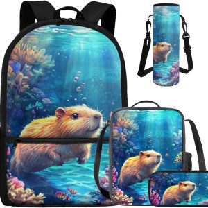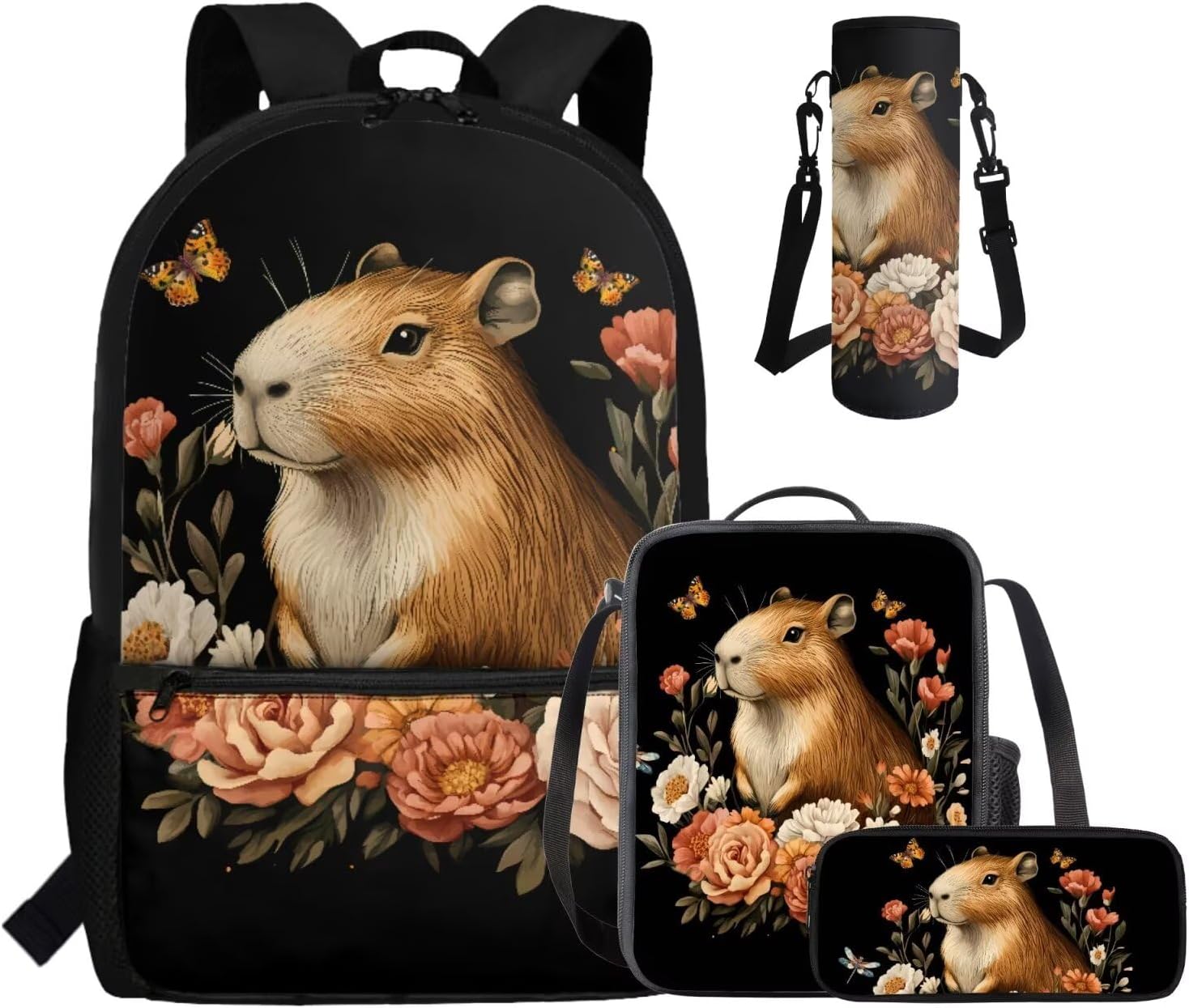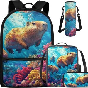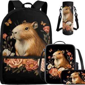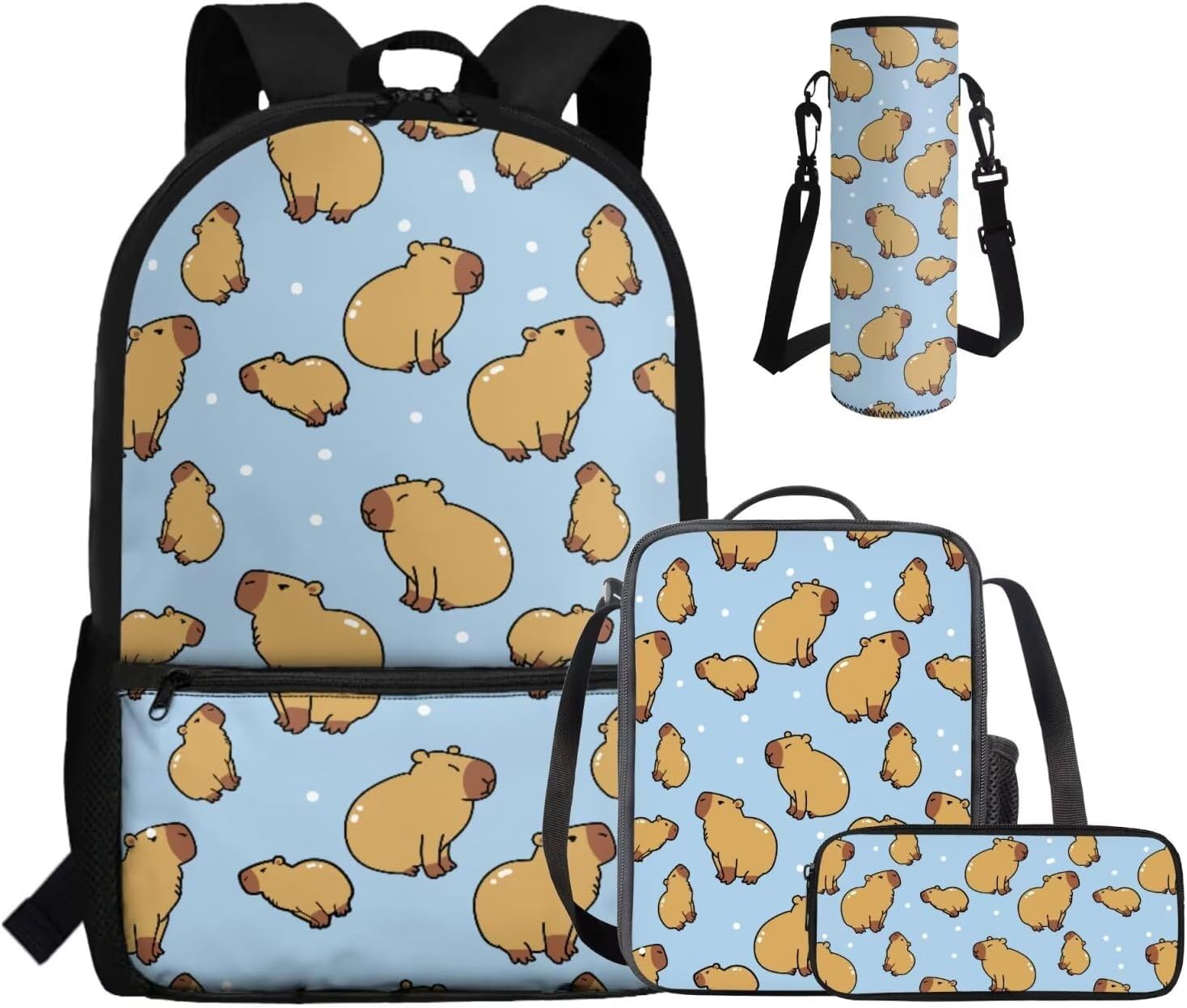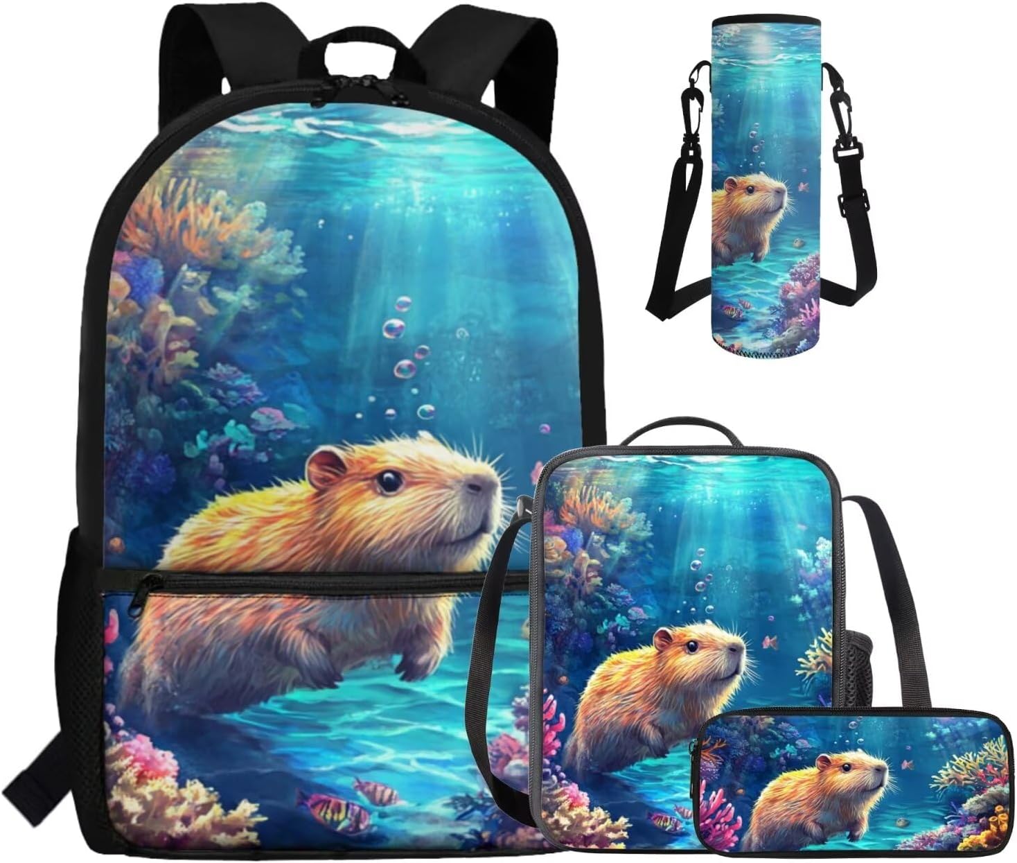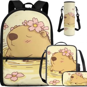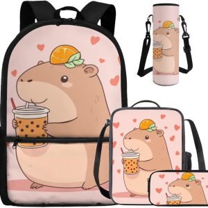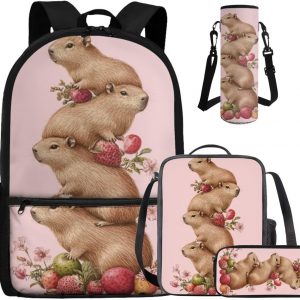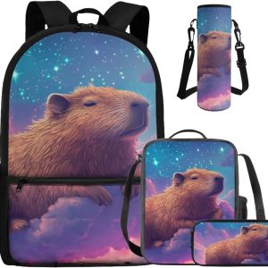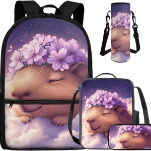 COEQINE Girls Backpack with Water Bottle Pink Axolotl Stars Y2K for 8-10 Kawaii Bookbags Kids School Bag Set Lunch Box Pencil Case Sleeve Teens Purse