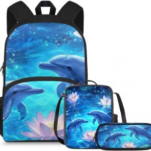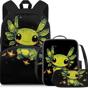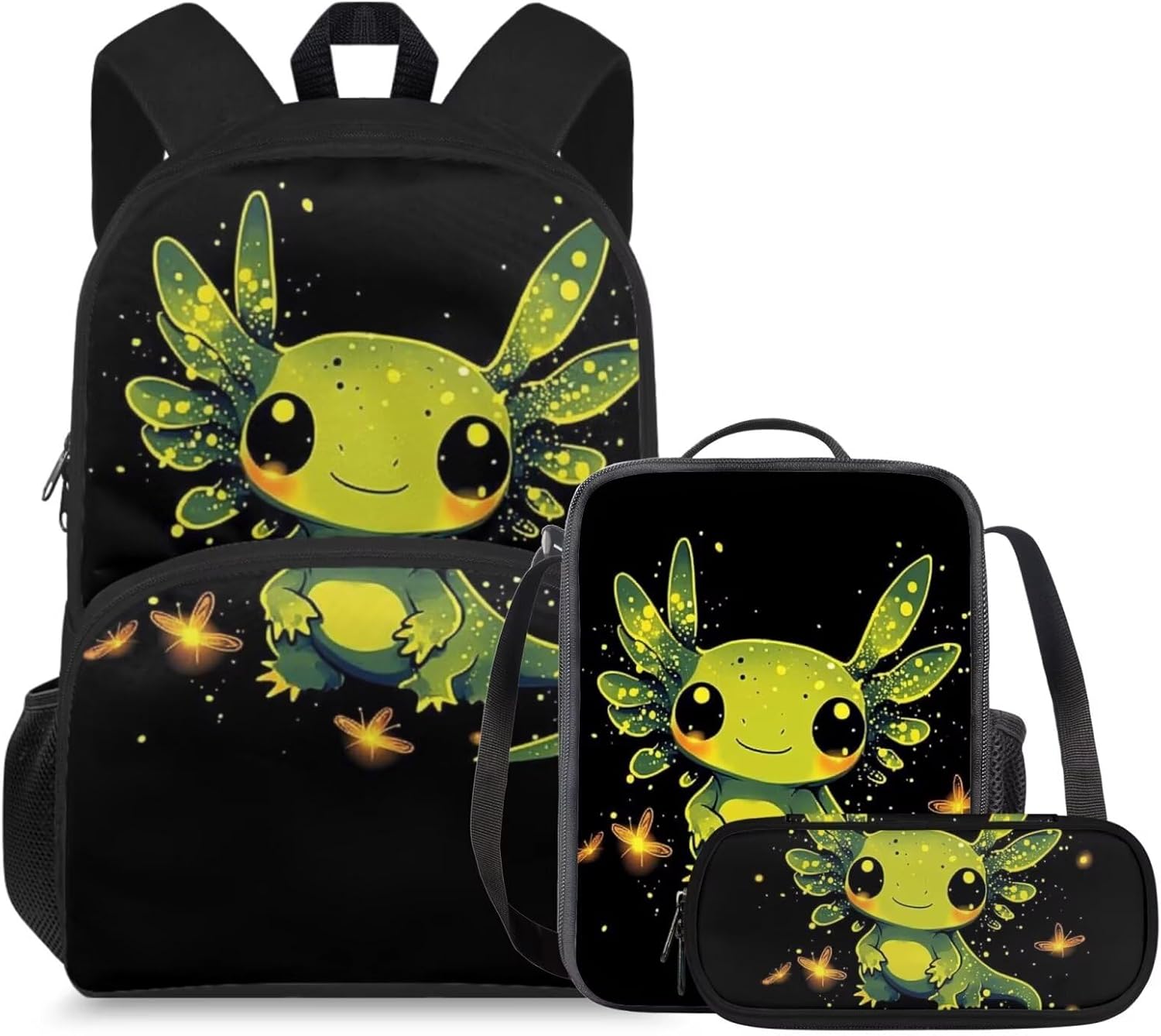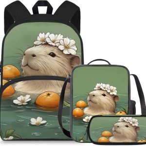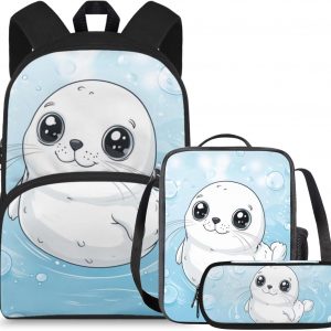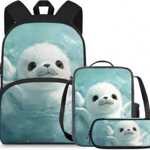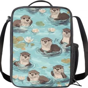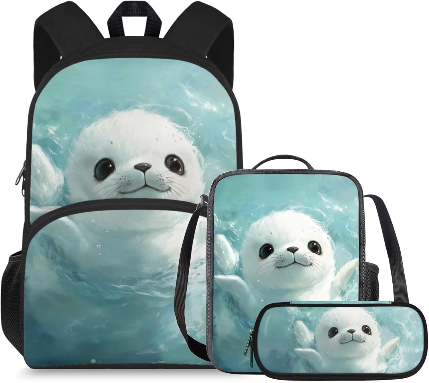 COEQINE Otter Backpack for Girls Kawaii Pre School Bookbag Set for Toddler with Lunch Box Strap Lightweight 3Pcs 15 Inch Book Bag for Kids 6-8 Year Large Penci Holder