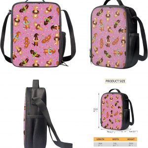 - – [AMPLE STORAGE] The backpack interior has a compartment, with a zipper closure style. There are two side pockets on the outside of the backpack, which can hold children's bottles and umbrellas; The lunch bag comes with dual zippers, one side comes with a mesh bottle pocket, adjustable shoulder straps. And internal elastic straps to secure small forks, knives, and spoon handles. The lunch bag can be carried by hand, crossed diagonally, or carried on one shoulder.