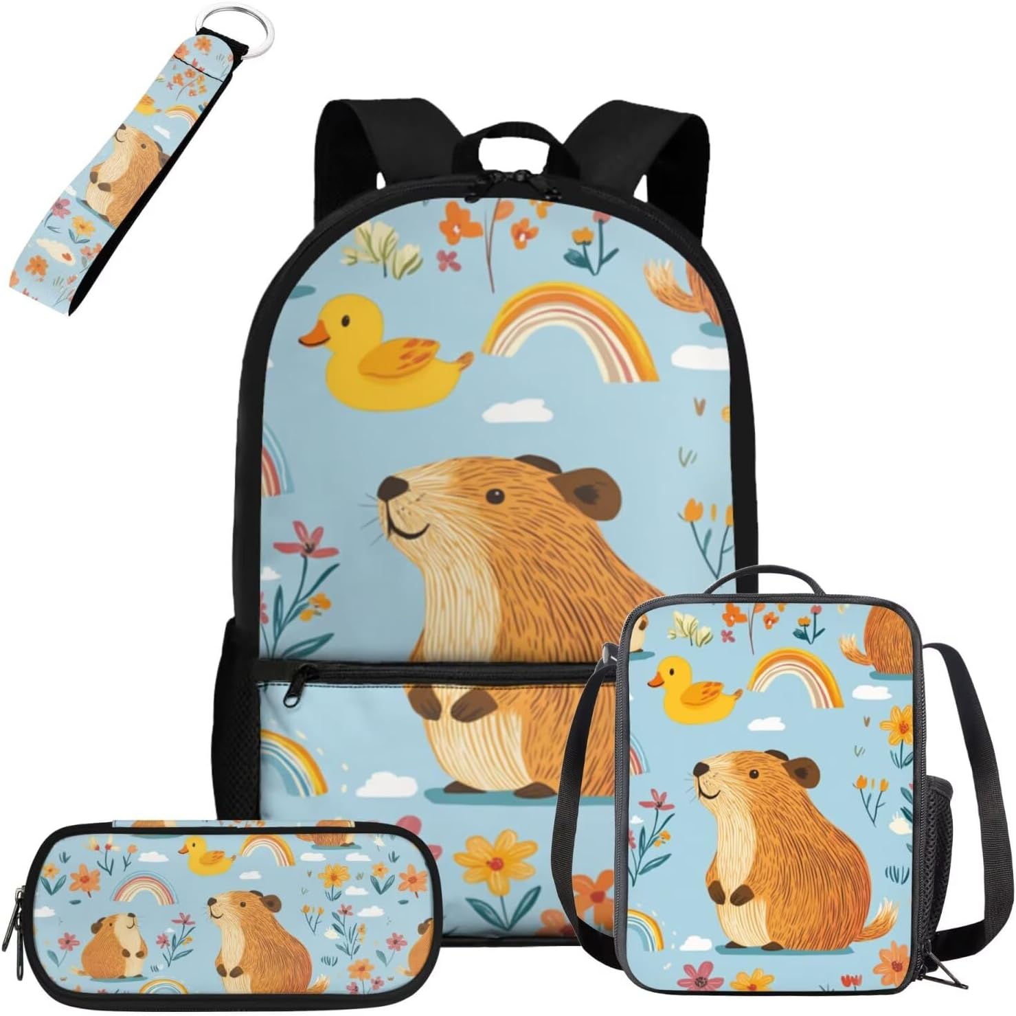 - 4-in-1 Backpack Set for Back to School: Looking for a practical, lightweight, and stylish school bag set? This 4-in-1 Backpack Set is the ultimate solution for students, travelers, and anyone on the go! Featuring a 17-inch backpack, an insulated lunch bag, a versatile pencil case, and a cute keychain, this set is designed to meet all your needs—whether it’s for school, weekend outings, or outdoor activities