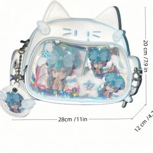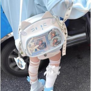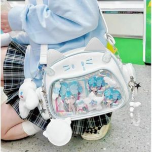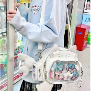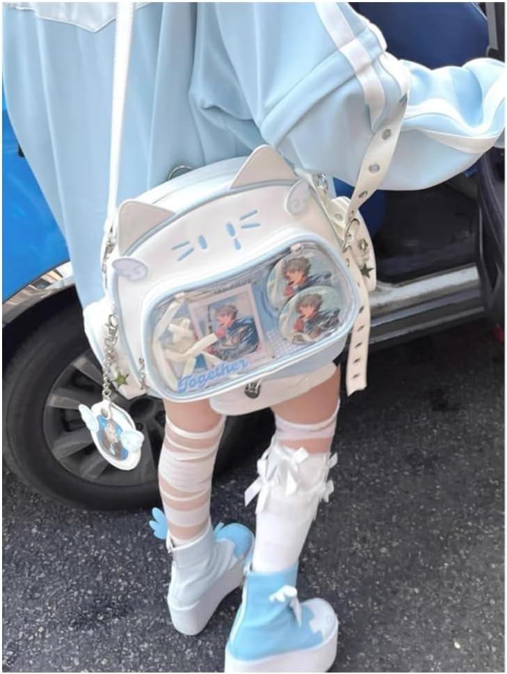Cute Cat Ita Bag Pin Display Backpack for School Preppy Backpack for Girls Y2k Aesthetic Single Shoulder Crossbody (White Bag)