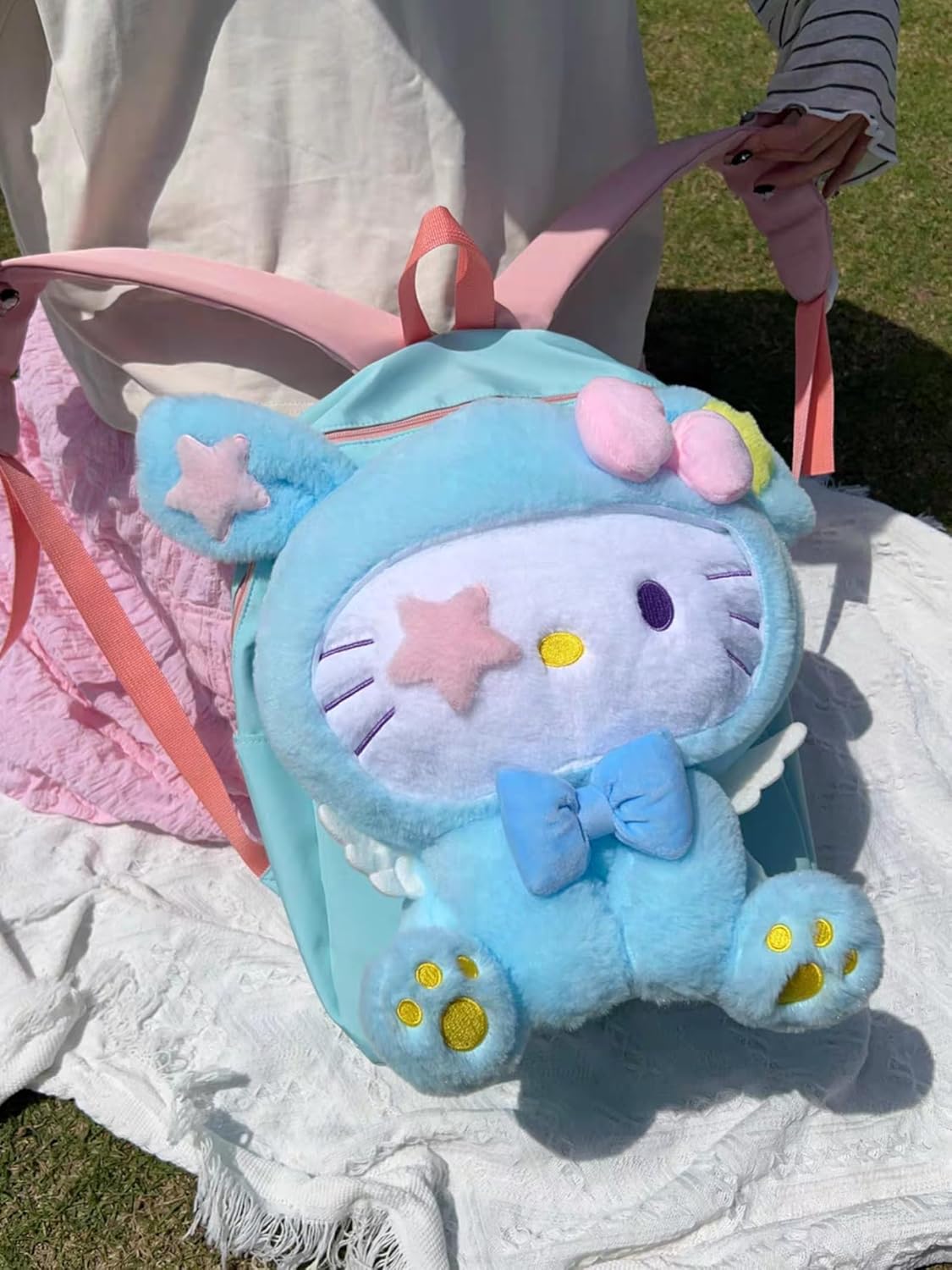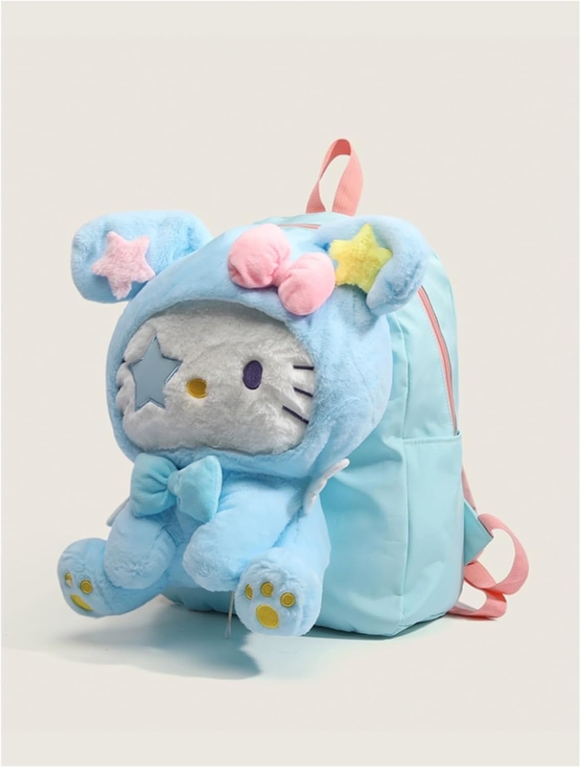 - Thoughtful Structural Details: Equipped with pink shoulder straps (matching the bow accents) for comfortable carrying. The Kitty 3D form and star/bow decorations enhance the cute aesthetic while offering functional storage.