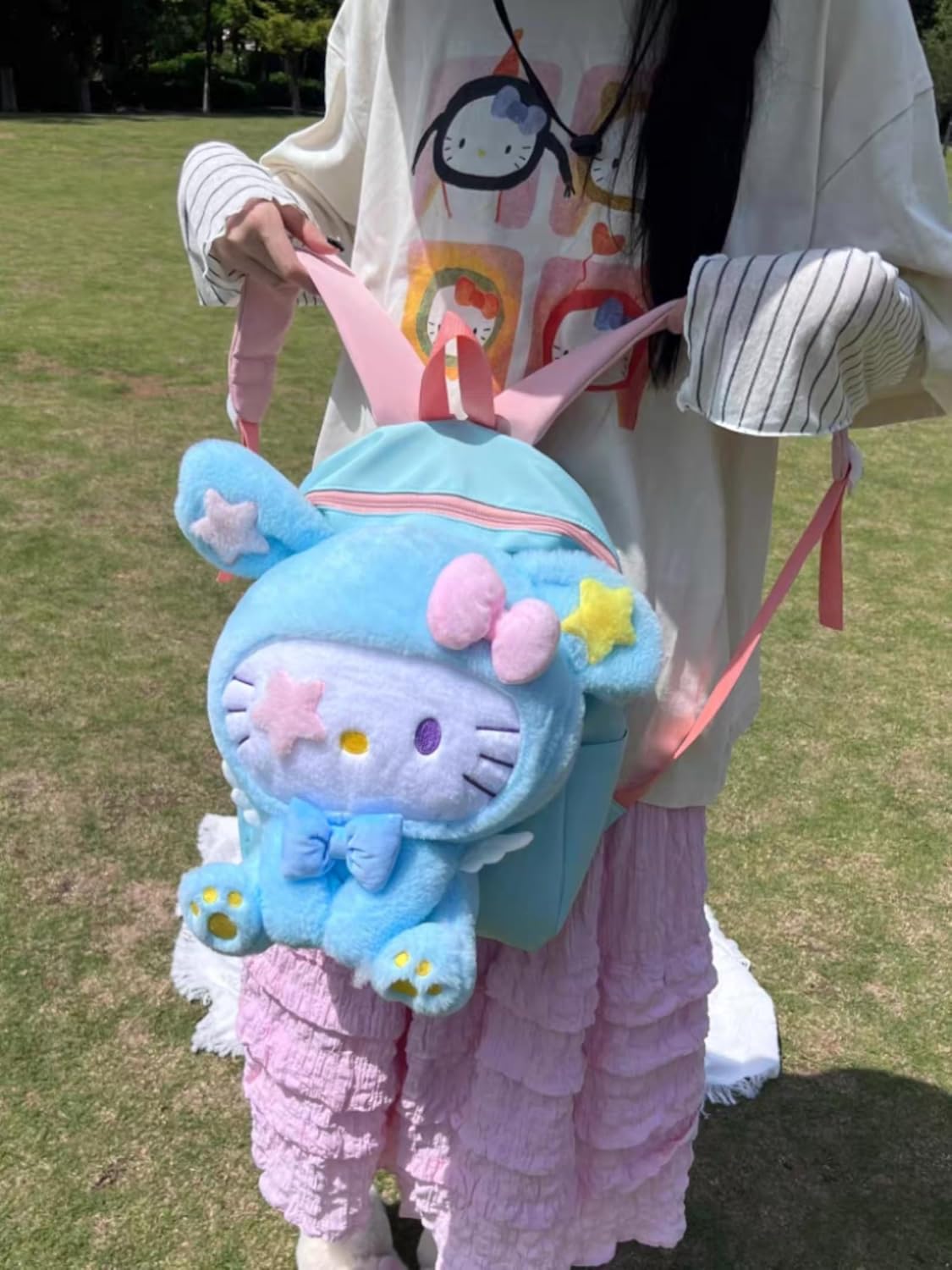 Comfort & Practicality: Pink shoulder straps (matching the bow accents) ensure a comfortable fit for all body types—even during long commutes. The plush Kitty form adds whimsy without compromising storage space.