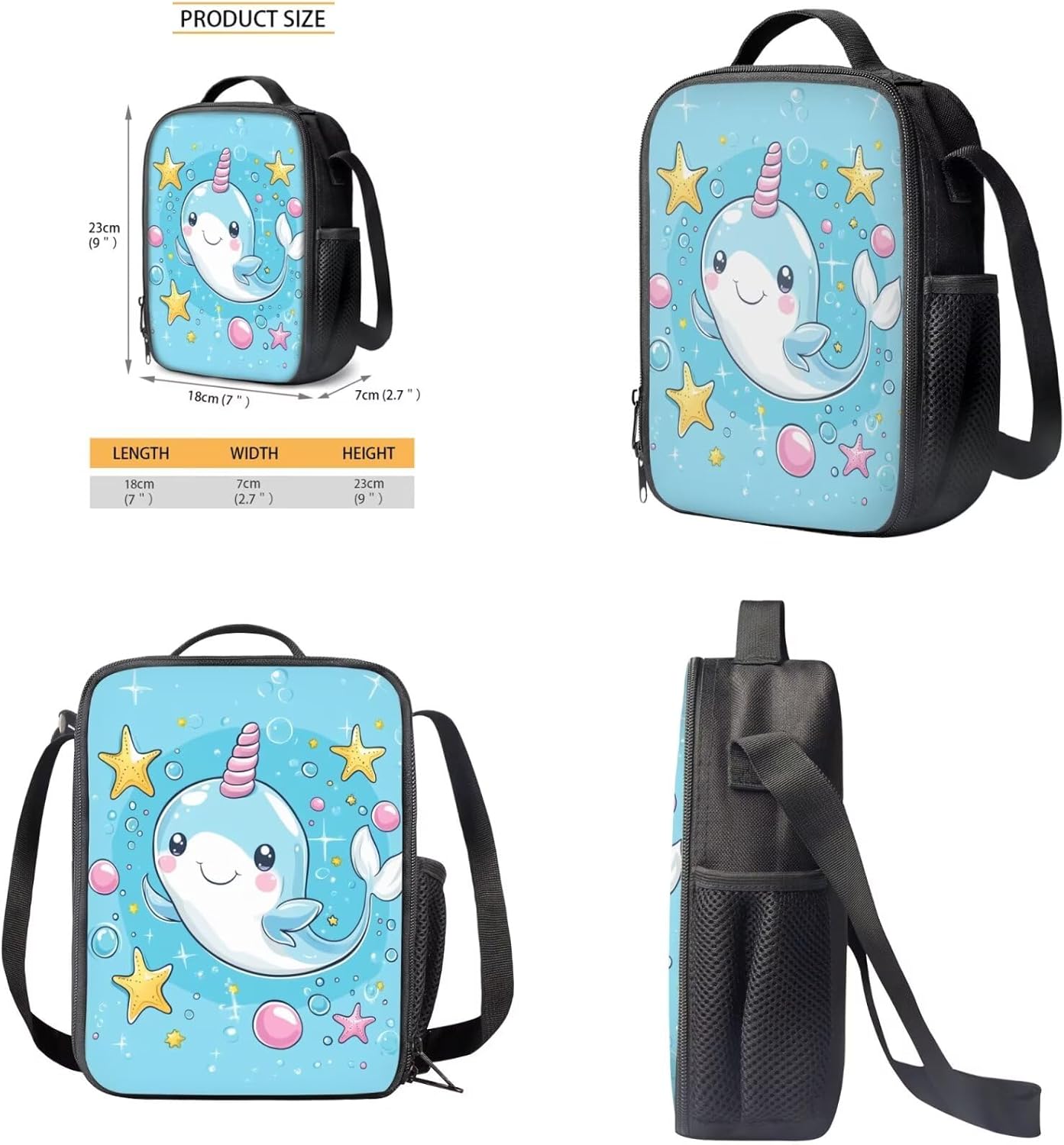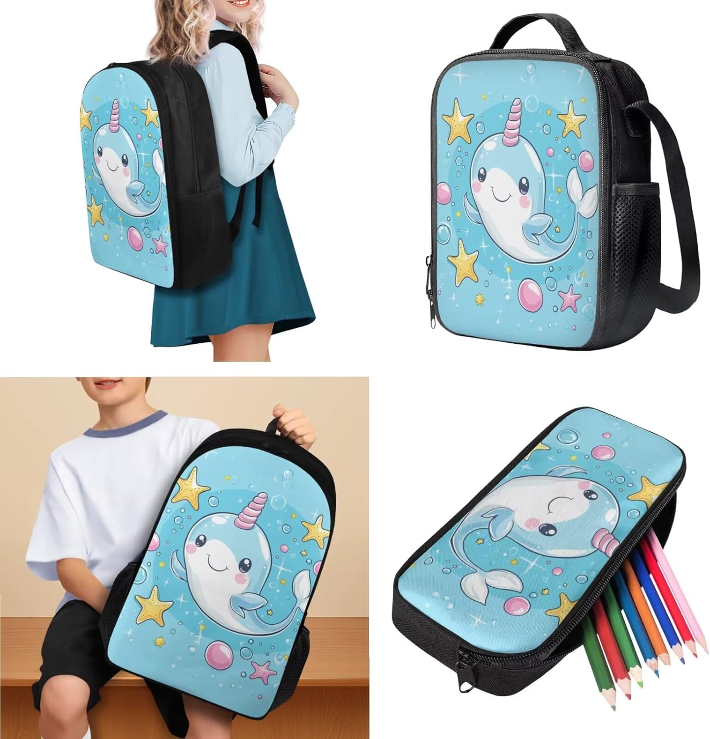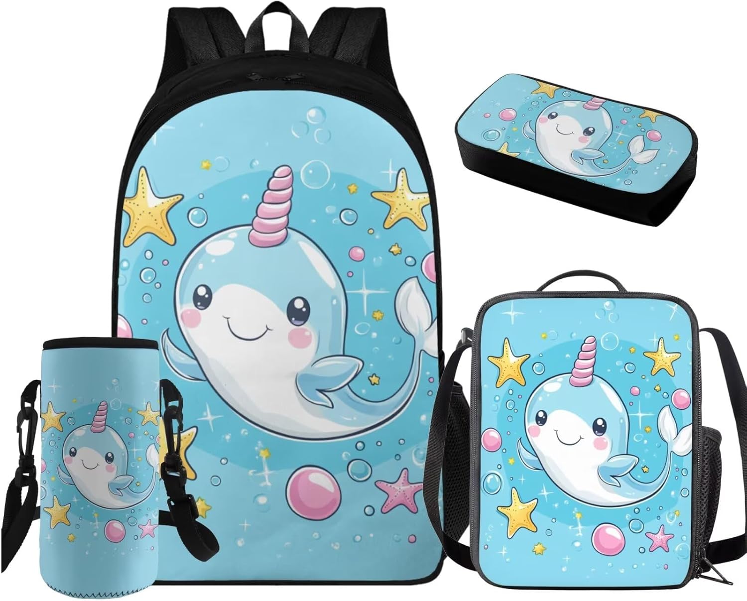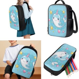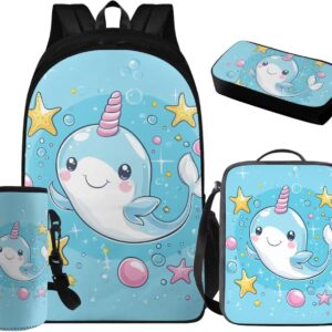doginthehole Cute Whale Backpack for School Girls Kawaii Girls School Bag with Lunch Bag 4pcs Large Capacity Girls Bookbag Ages 8-10 for Elementary School Kids Casual Travel Book Bags