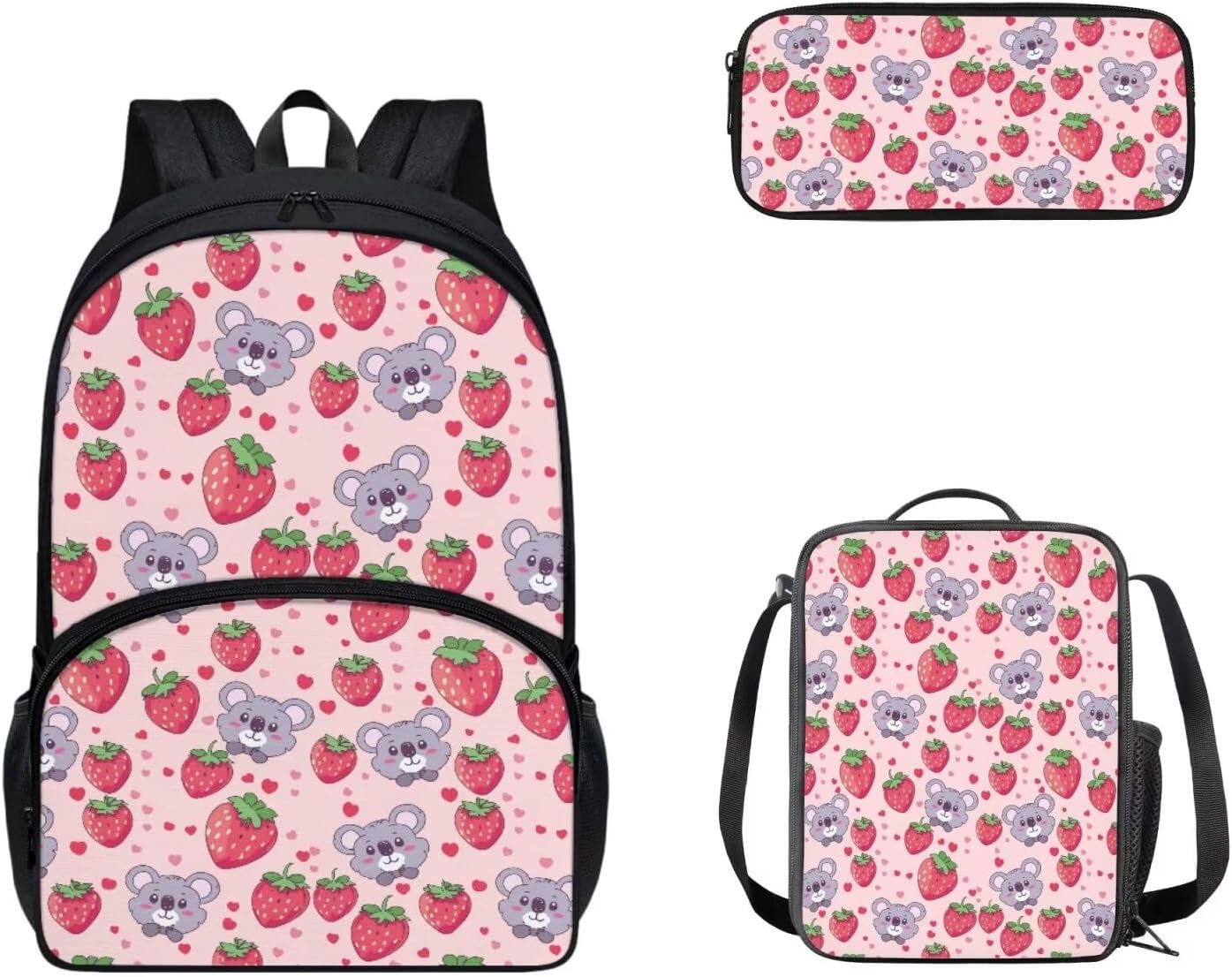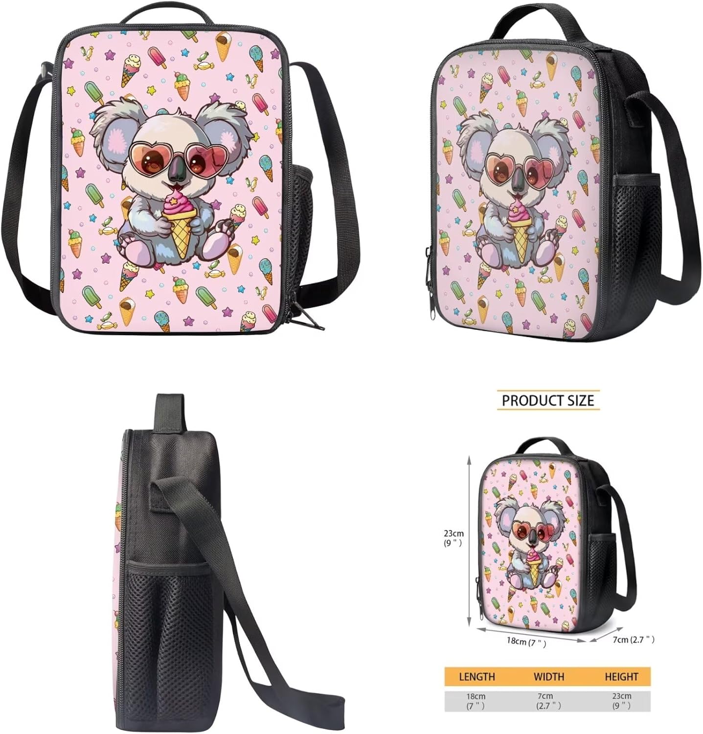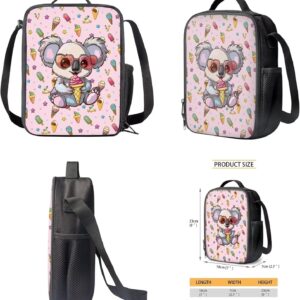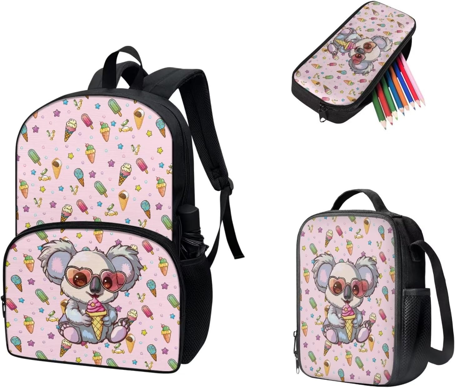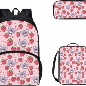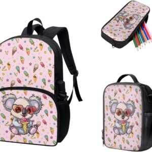 doginthehole Koala School Backpack for Kids Girls Kawaii Bookbag with Lunch Box and Pencil Bag 3 in 1 Teens Elementary Middle School Casual Rucksack Outdoor Daypack