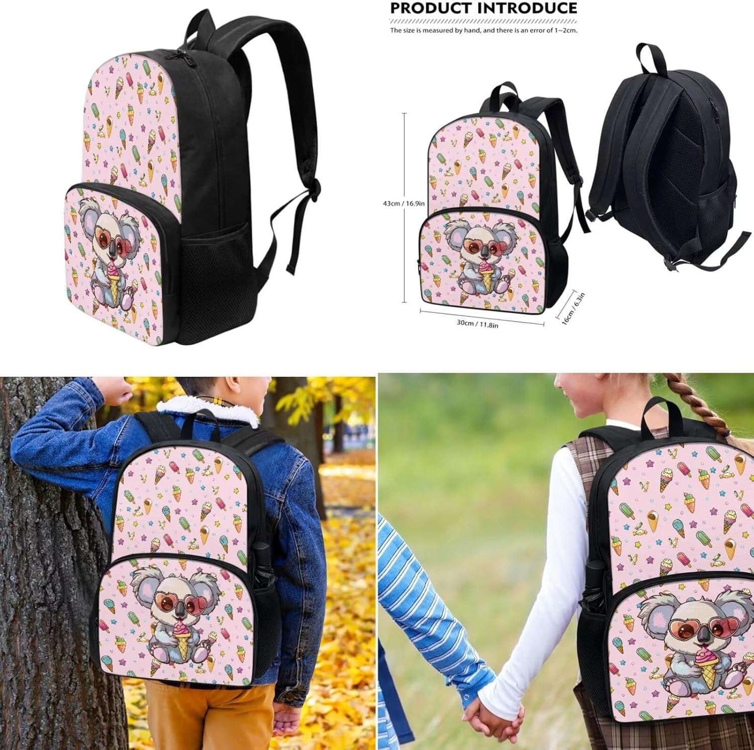 doginthehole Koala School Backpack for Kids Girls Kawaii Bookbag with Lunch Box and Pencil Bag 3 in 1 Teens Elementary Middle School Casual Rucksack Outdoor Daypack quantity