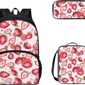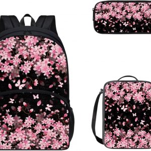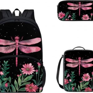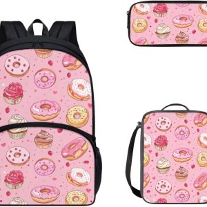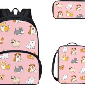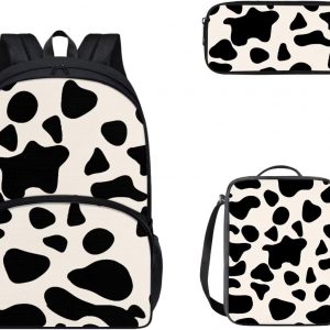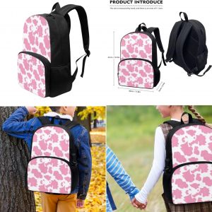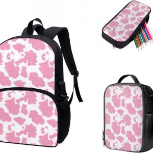 doginthehole Pink Cow Backpack for Girls Kids Cute School Bookbag with Lunch Box and Pencil Pouch Kawaii Schoolbag Students Satchel Daypack Rucksack for Preschool Kindergarten Middle High School