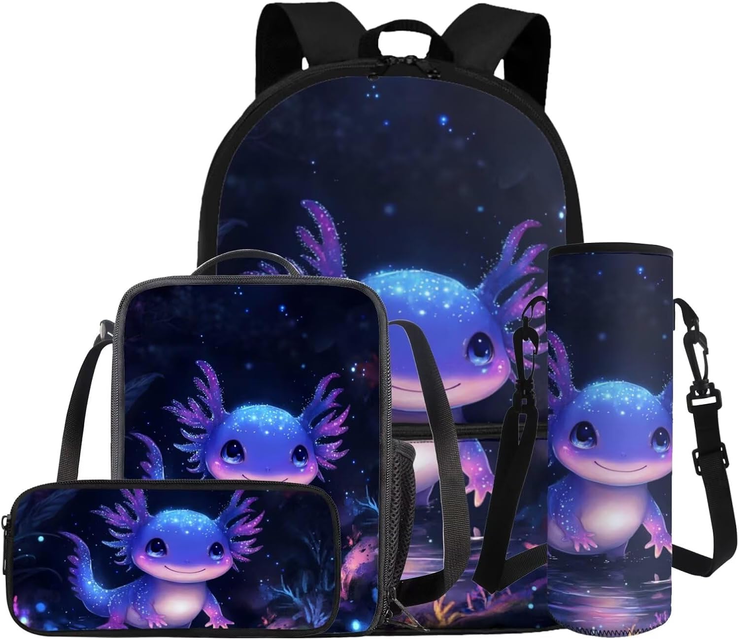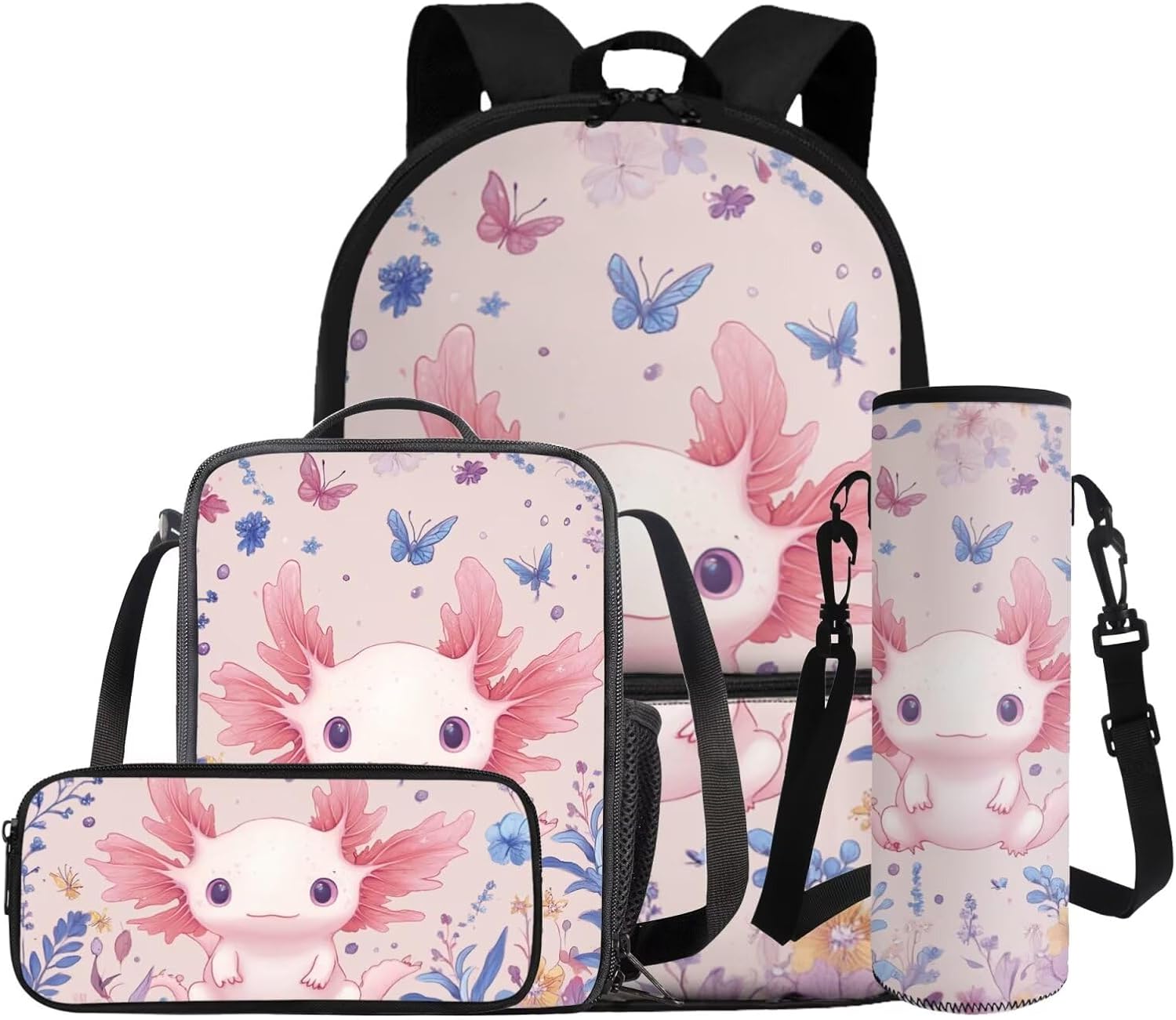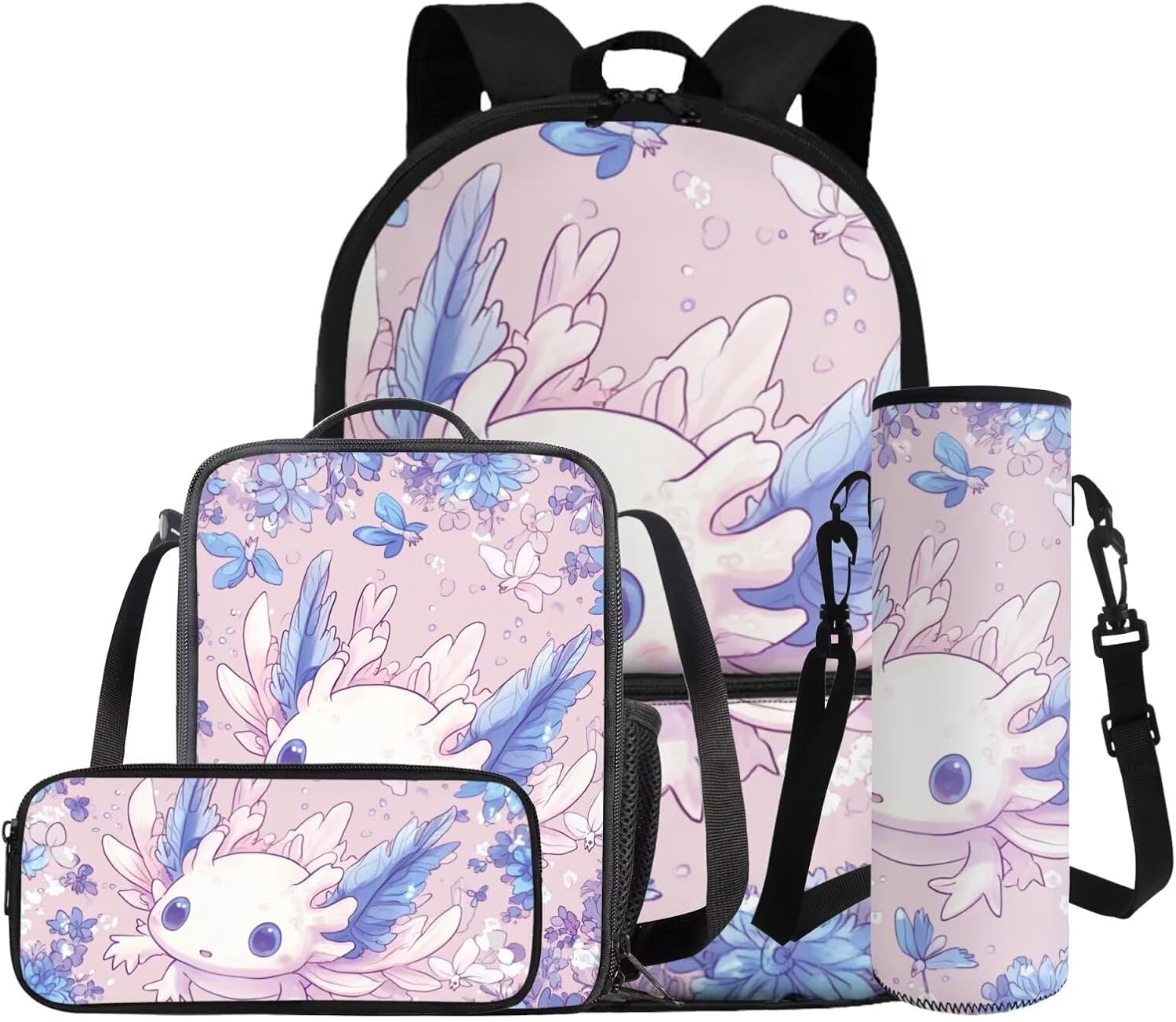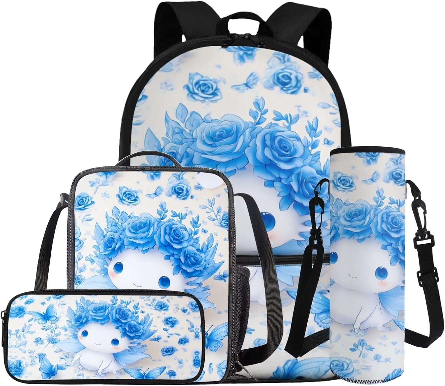 –1 Backpack + 1 Lunch bag + 1 Pencil Case + 1 Water Bottle Sleeve