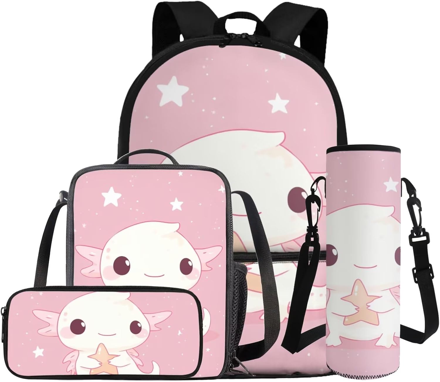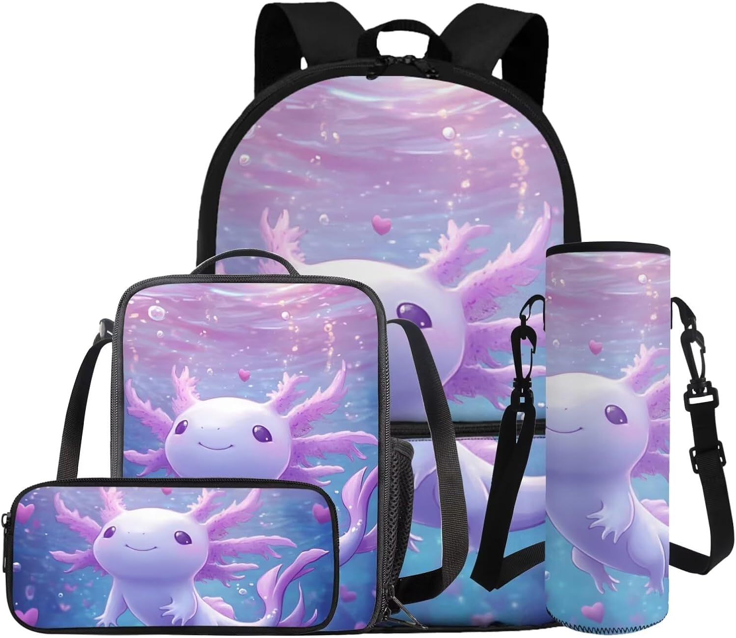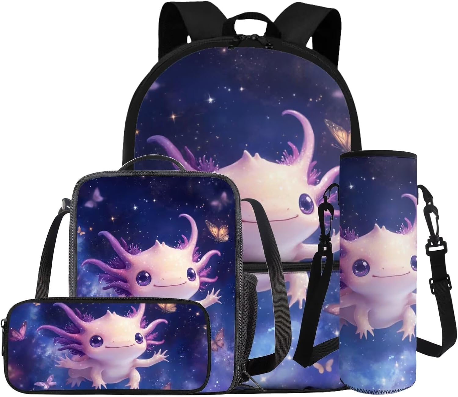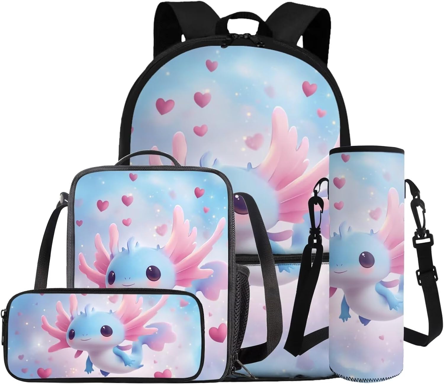–1 Backpack + 1 Lunch bag + 1 Pencil Case + 1 Water Bottle Sleeve
