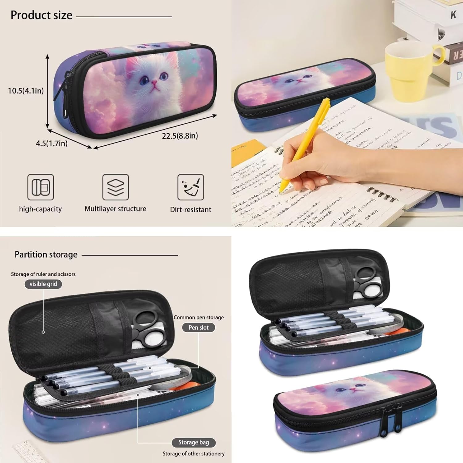 - 【Pencil Case】This pencil case boasts a spacious design with a single compartment for effortless access to pens, pencils, and other stationery. Fitted with dual zippers, it provides secure closure for your items. Inside, you'll find 4 dedicated slots for writing instruments and a visible grid pocket for additional storage. Its dimensions of 8.8×1.7×4.1 inches