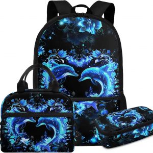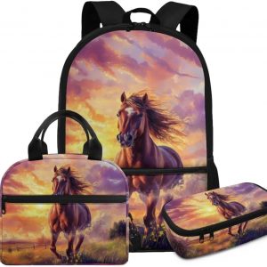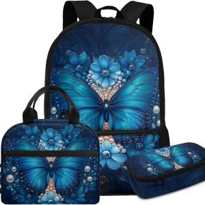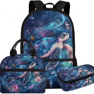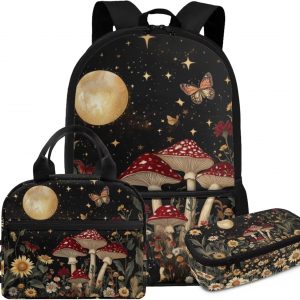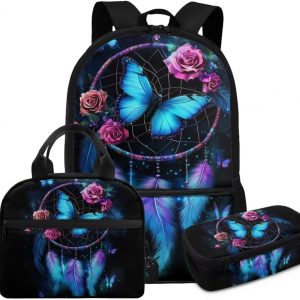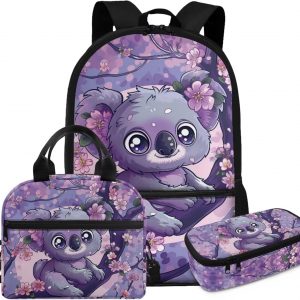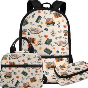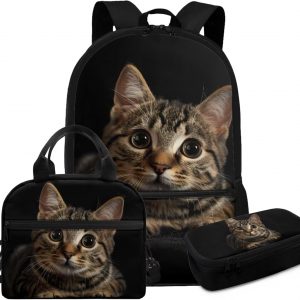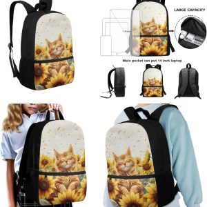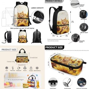 Glorowreny Cat Backpack for School Set of 3 Kawaii Sunflower Girls Bookbag Ages 6-8 with Lunch Box Portable Practical Insulated Lunch Bag Kids Girls Ideal for Daily Use