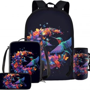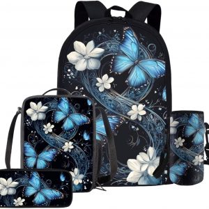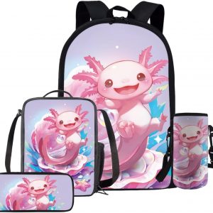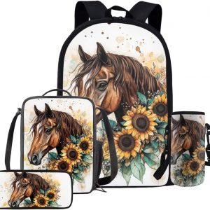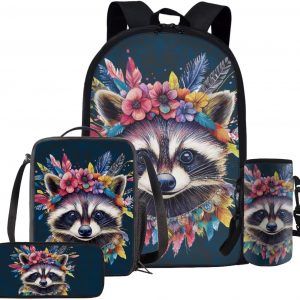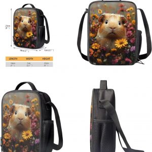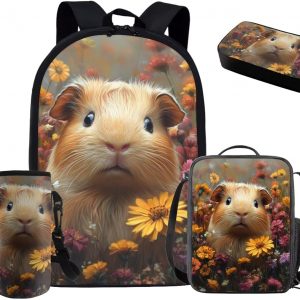 Glorowreny Cavy Girls Backpack with Lunch Box 8-10 Kawaii Animal Cute Bookbag for Teen Girls Preppy Set of 4 17 Inch Daisy Floral Lunchbag with Shoulder Strap Kids for Camping