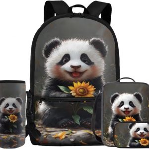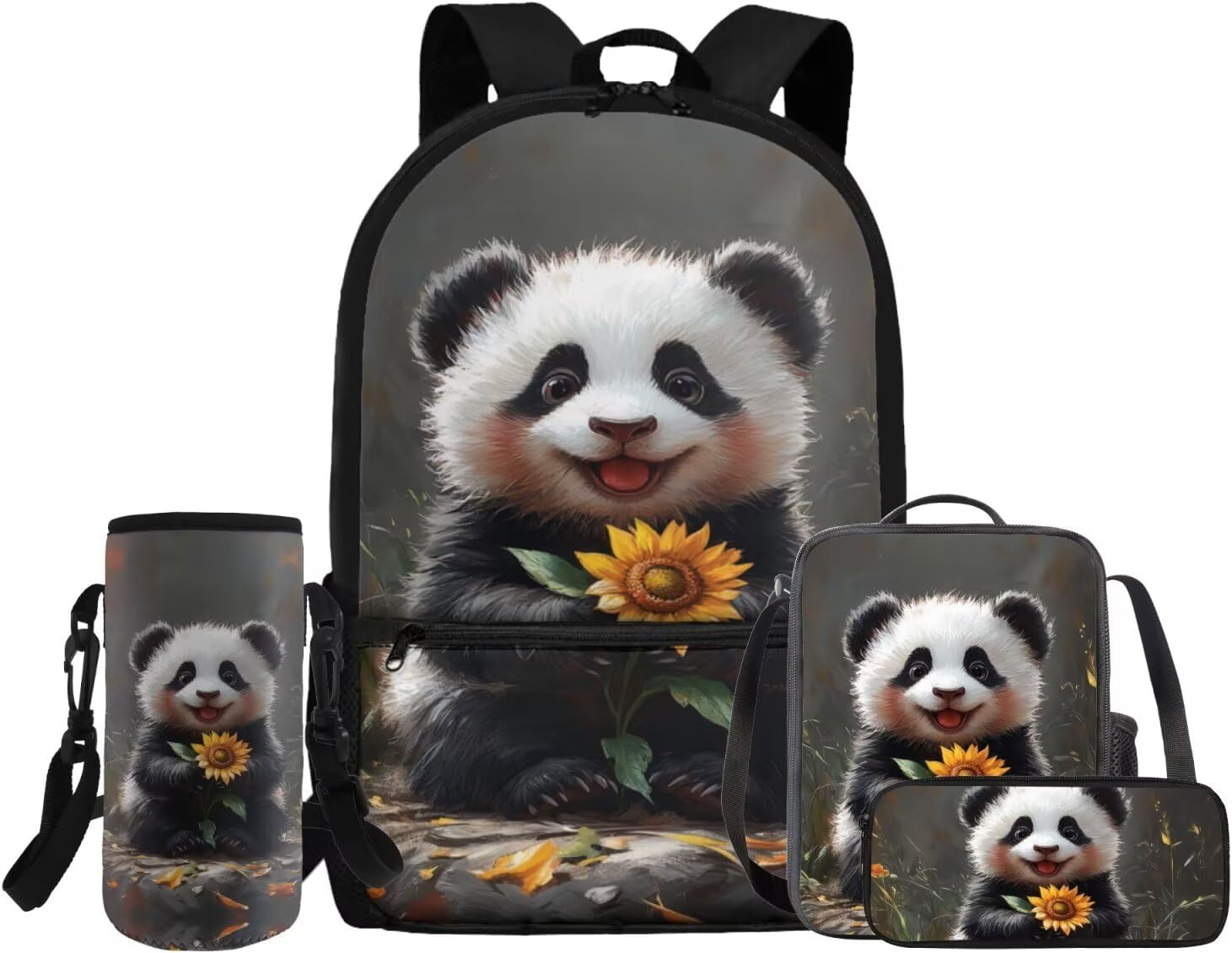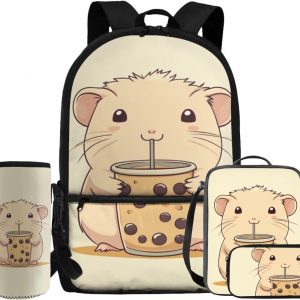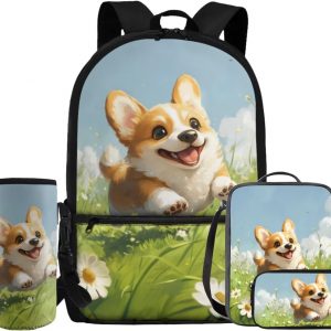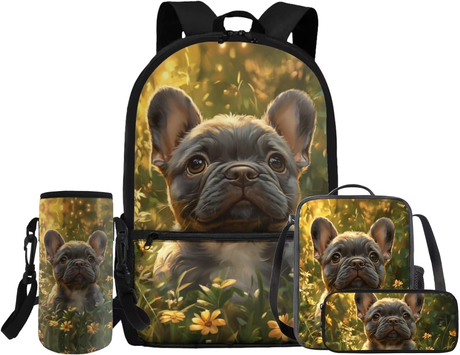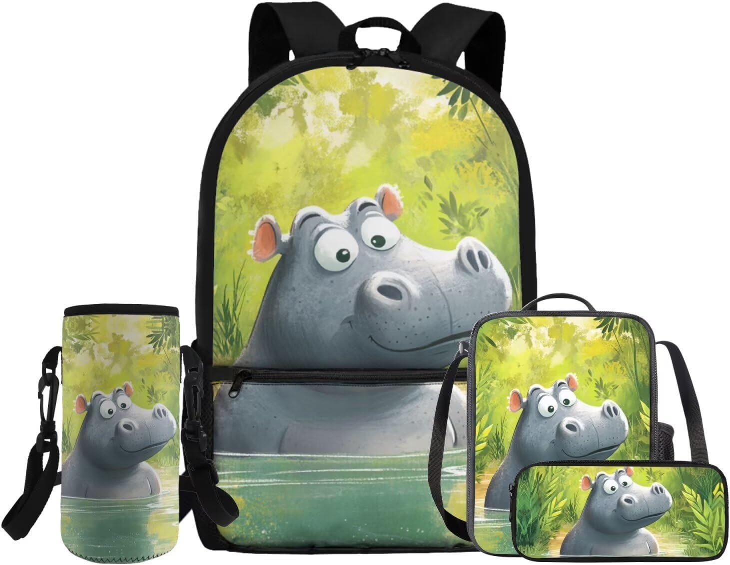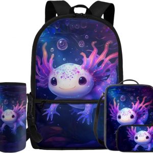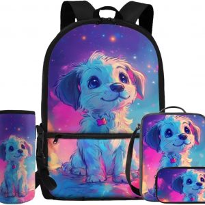 Glorowreny Dolphin Girls Backpack with Lunch Bag Kawaii Kids Lunch Bags for Girls Small Lightweight Water Bottle Sleeves with Strap Set of 4 Classic 17 Inch School Knapsack Book Bags for School