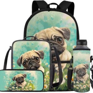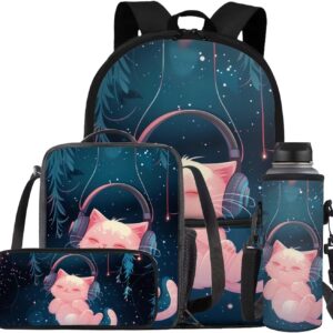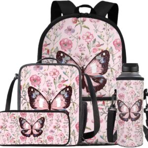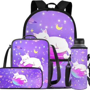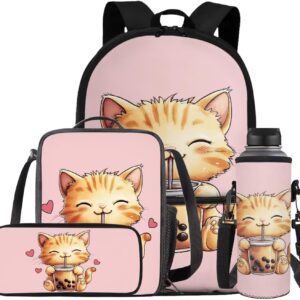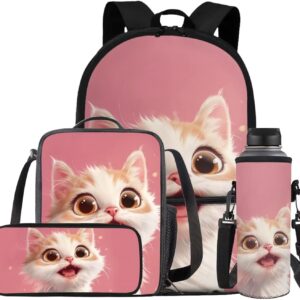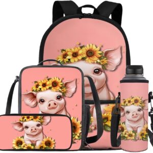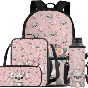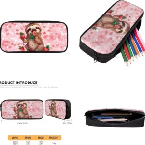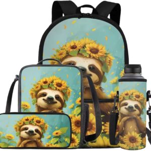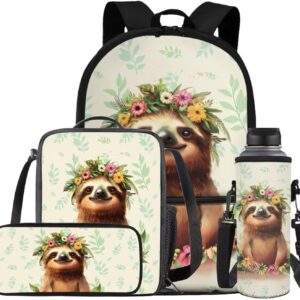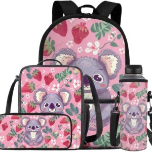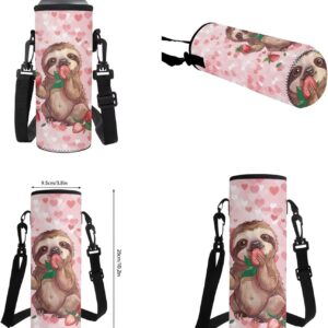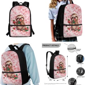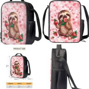 Glorowreny Sloth Backpacks for Girls Kawaii Strawberry Bookbag with Heart Print Insulated Lunch Bag for Kids Pink Set of 4 Lightweight Water Bottle Holder with Strap Casual Travel Daypack