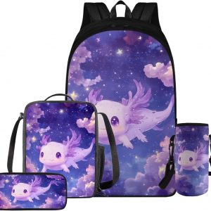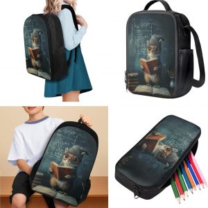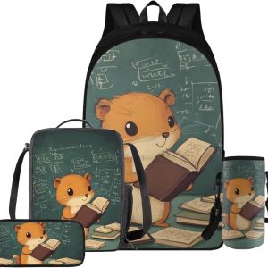 Glorowreny Squirrel Backpacks for Girls Personalized Kawaii Insulated Lunch Bag for Kids 4 in 1 Lightweight Pencil Case17 Inch Large Capacity School Knapsack for Students