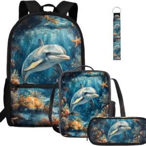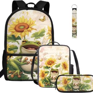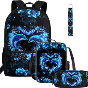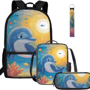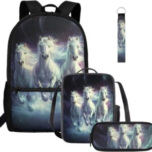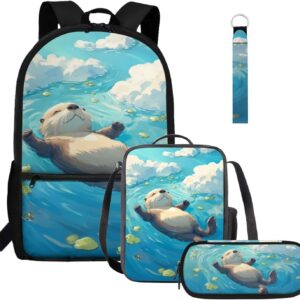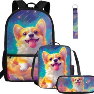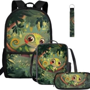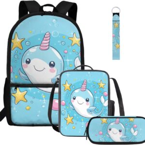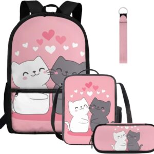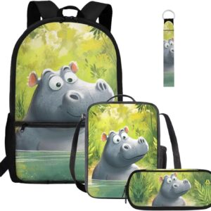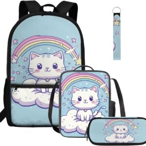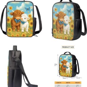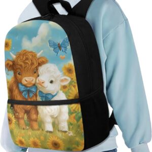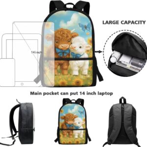 Gomyblomy Highland Cow Lamb Bookbag for Girls 6-8 8-10 Kawaii Kids Boys Backpack with Lunch Box Keychain Pencil Case Cute School Bag Set of 4 Pcs for Kindergarten Elementary Students Rucksack