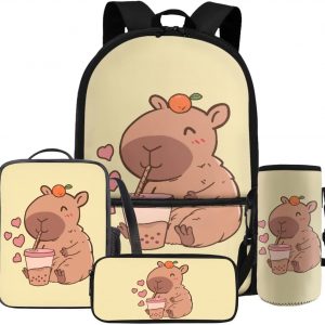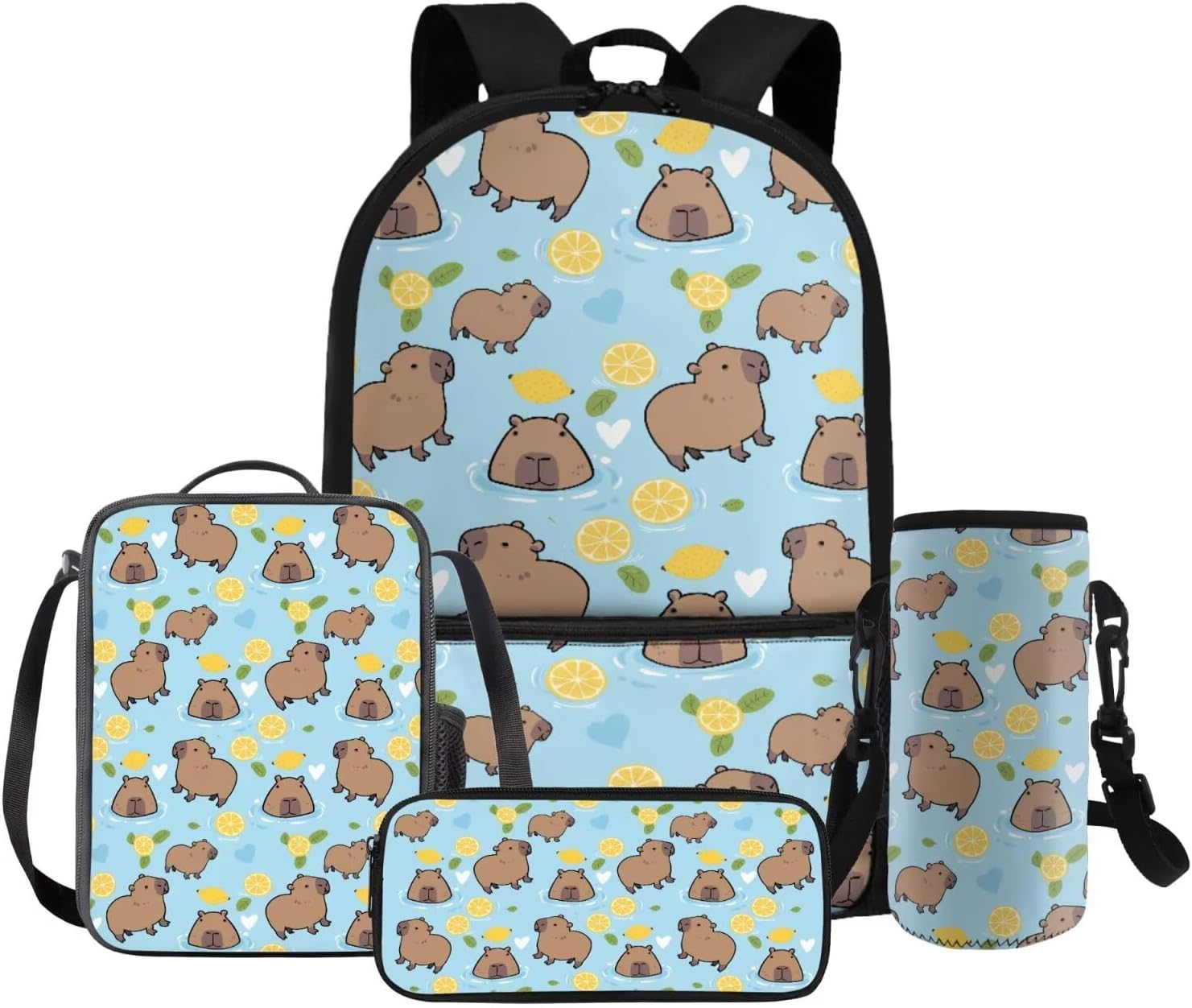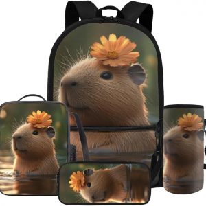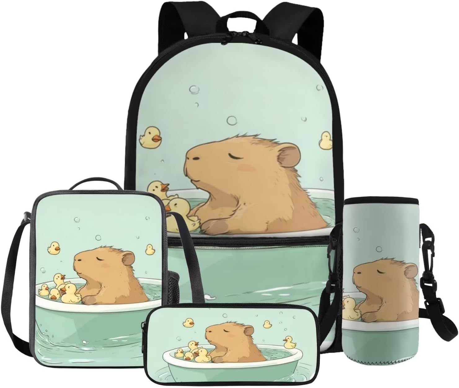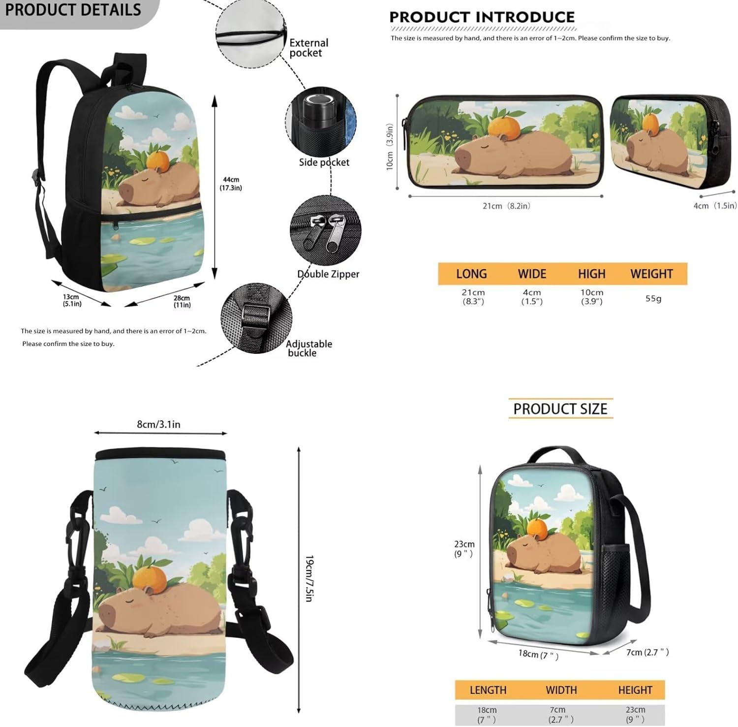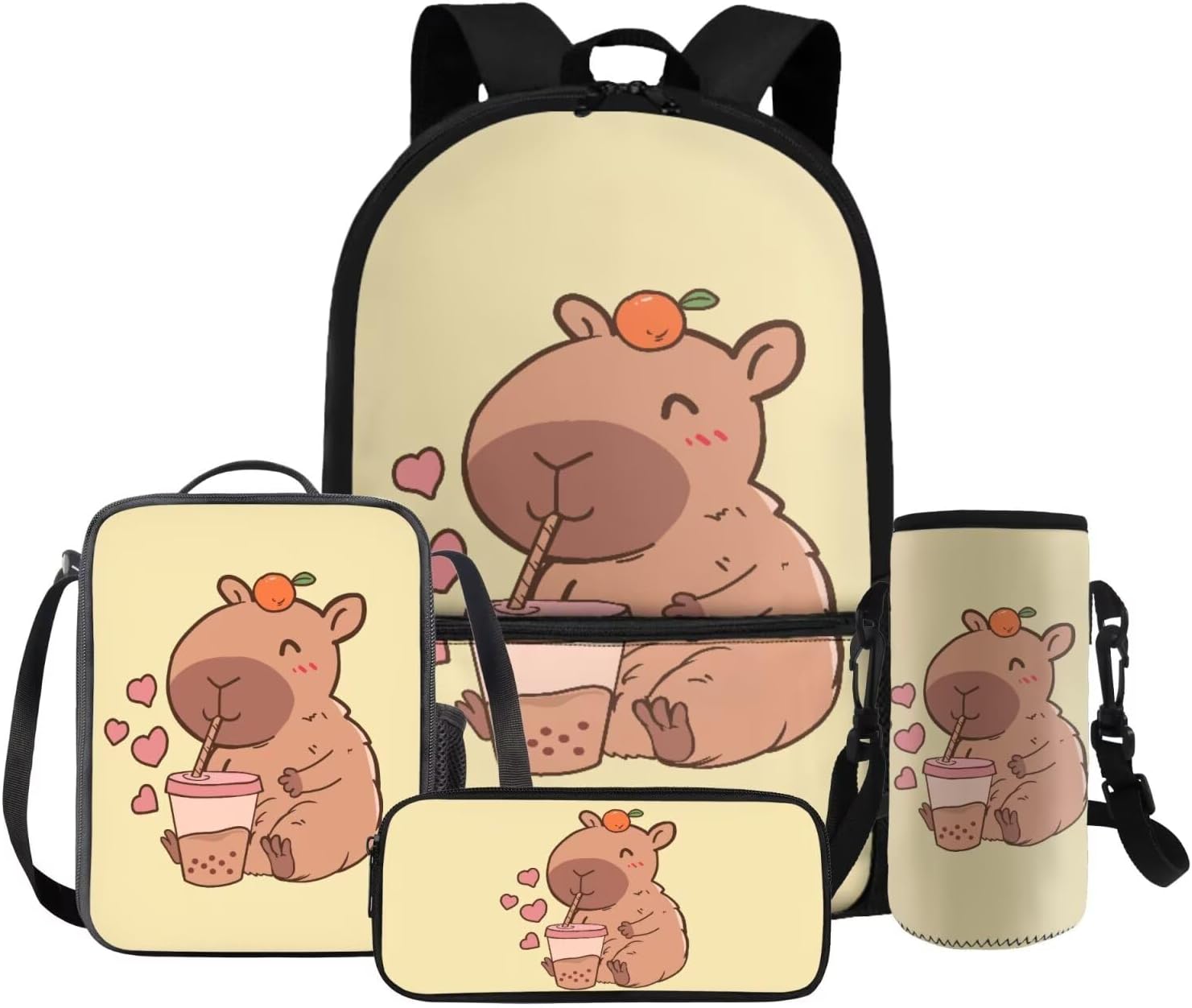 Gomyblomy Kawaii Capybara Backpack for Girls 6-8 8-10 Cute Kids School Bag with Lunch Box Pencil Case Water Bottle Sleeve Lightweight Girls Bookbag for Elementary Kindergarten Satchel