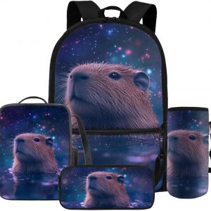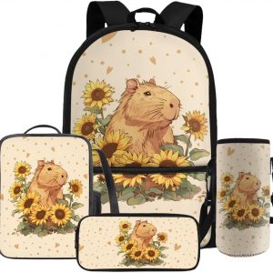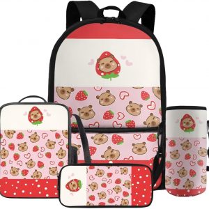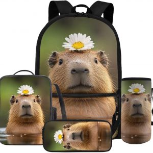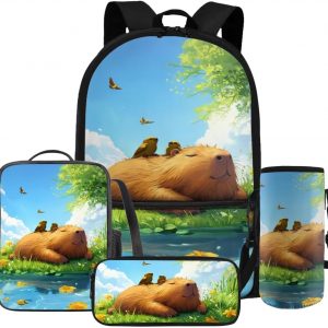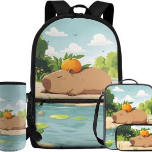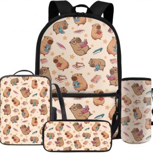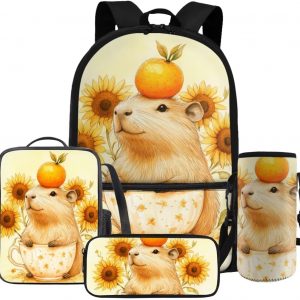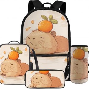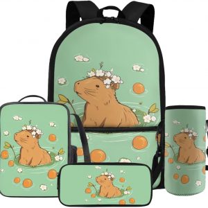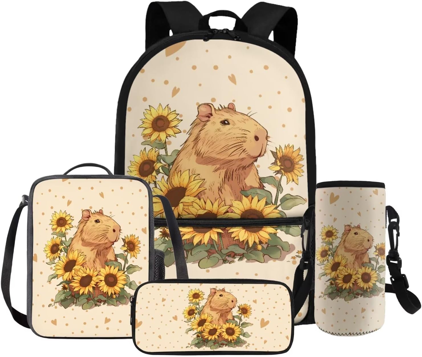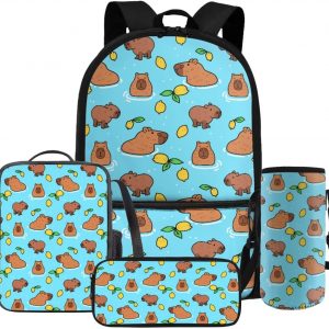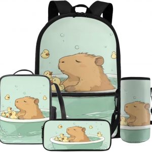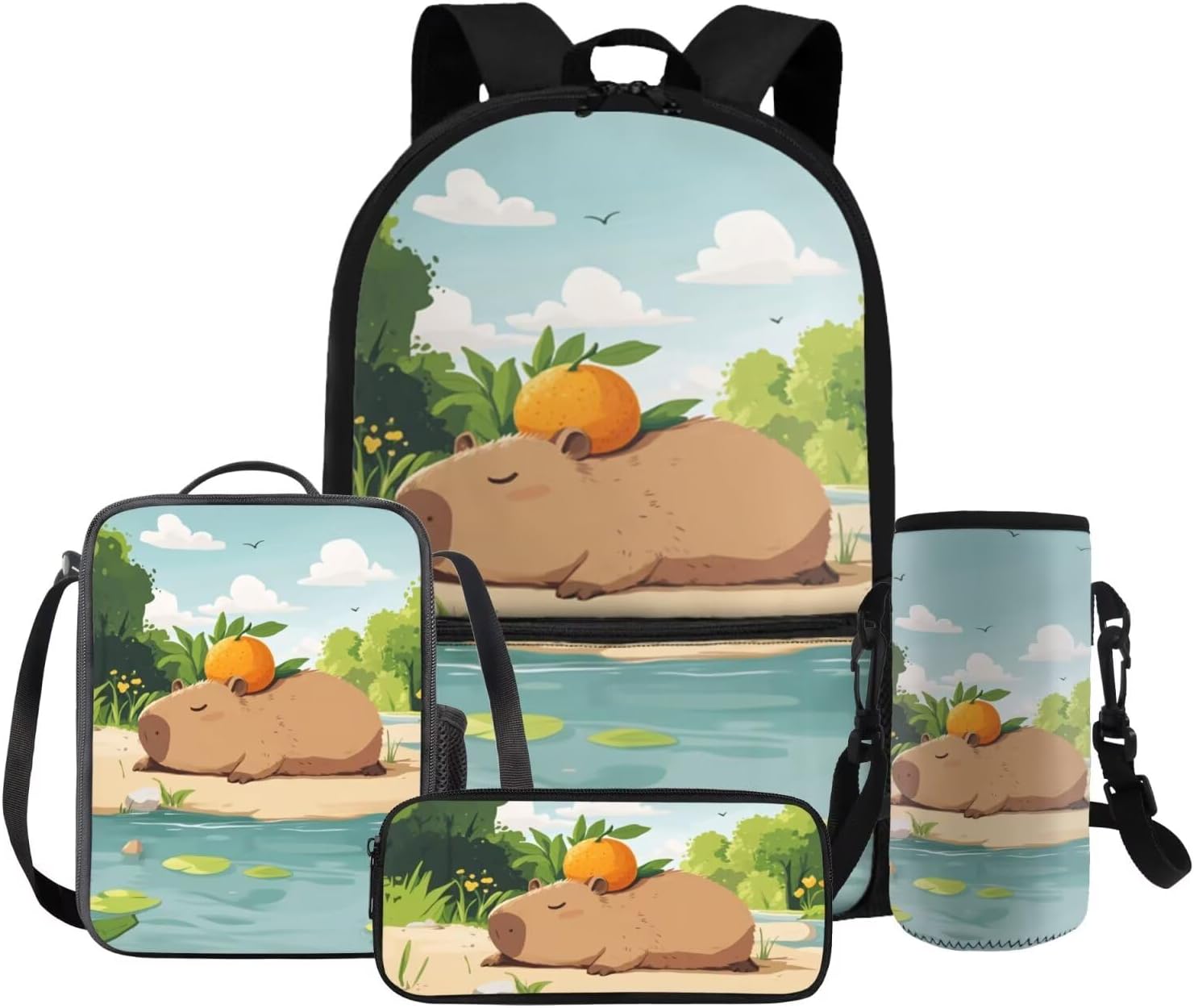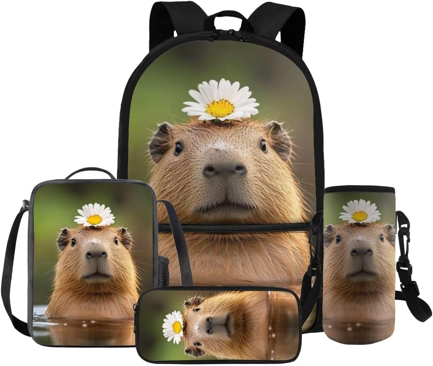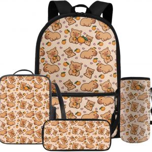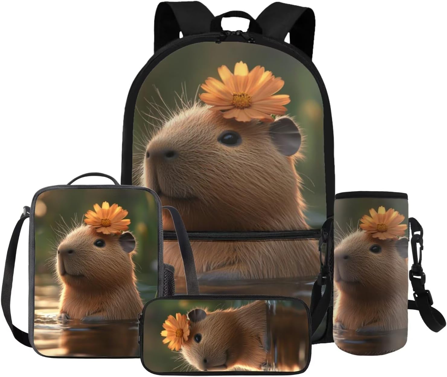 Gomyblomy Kawaii Capybara Backpack for Girls 6-8 8-10 Cute Kids School Bag with Lunch Box Pencil Case Water Bottle Sleeve Lightweight Girls Bookbag for Elementary Kindergarten Satchel