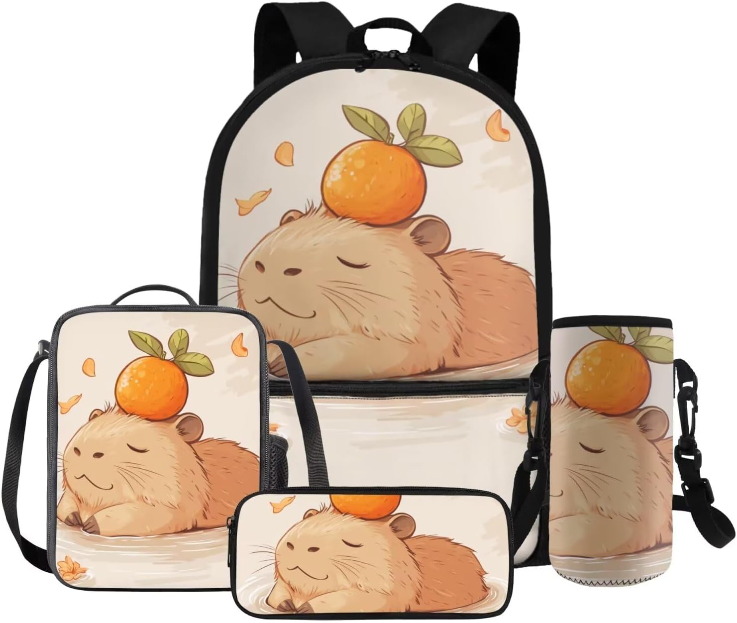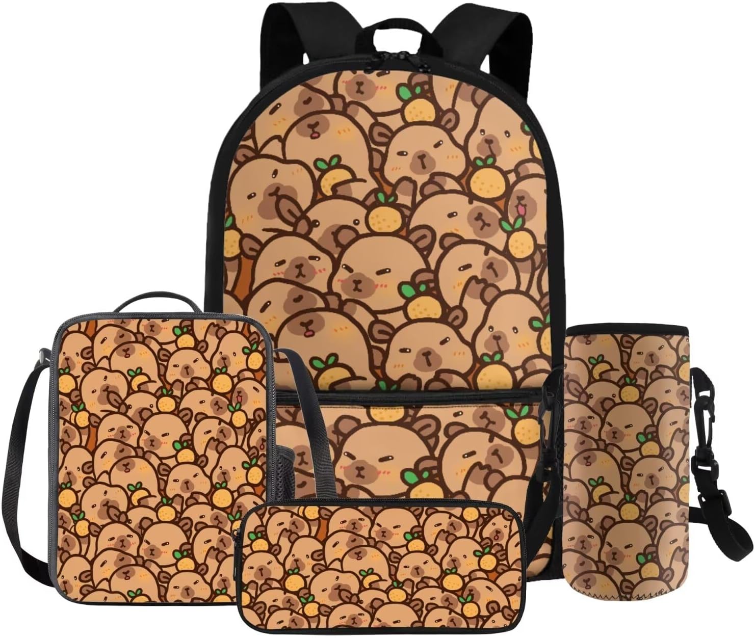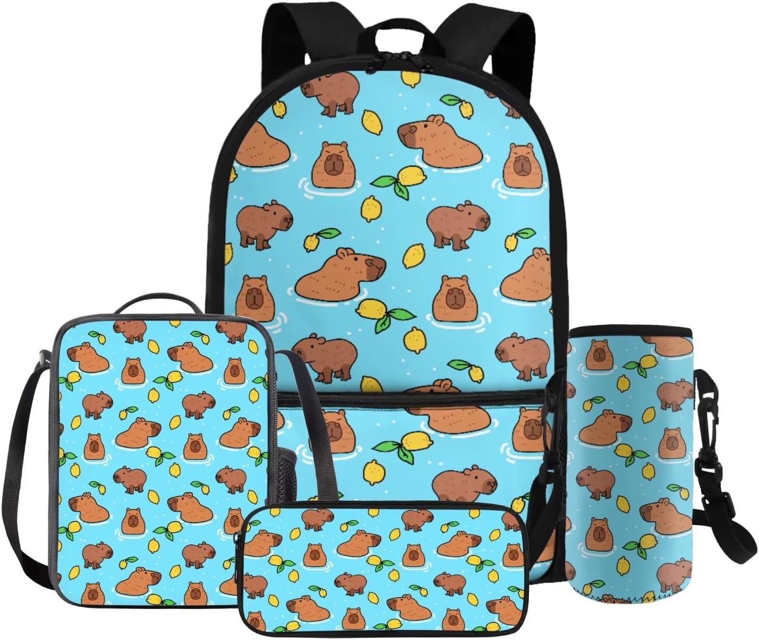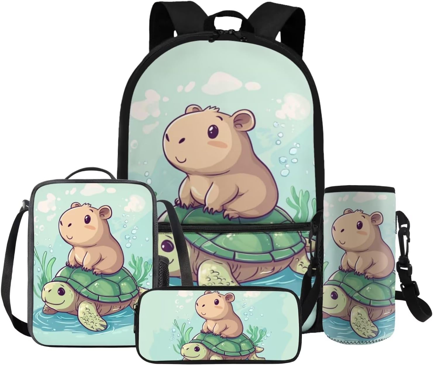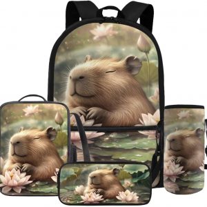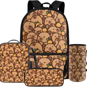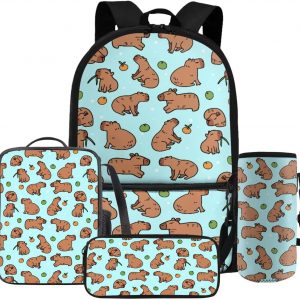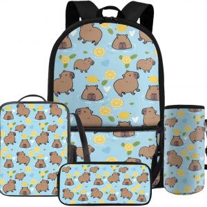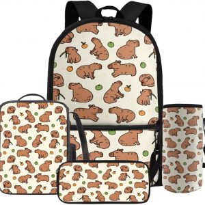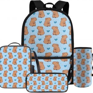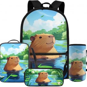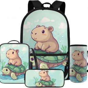 Gomyblomy Kawaii Capybara Backpack for Girls 6-8 8-10 Cute Kids School Bag with Lunch Box Pencil Case Water Bottle Sleeve Lightweight Girls Bookbag for Elementary Kindergarten Satchel