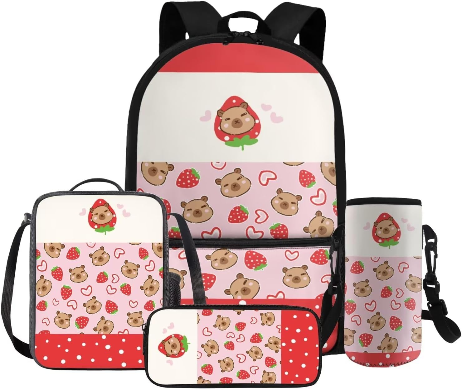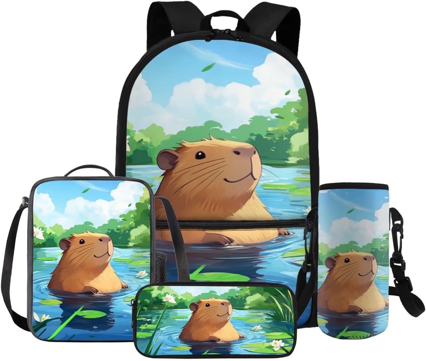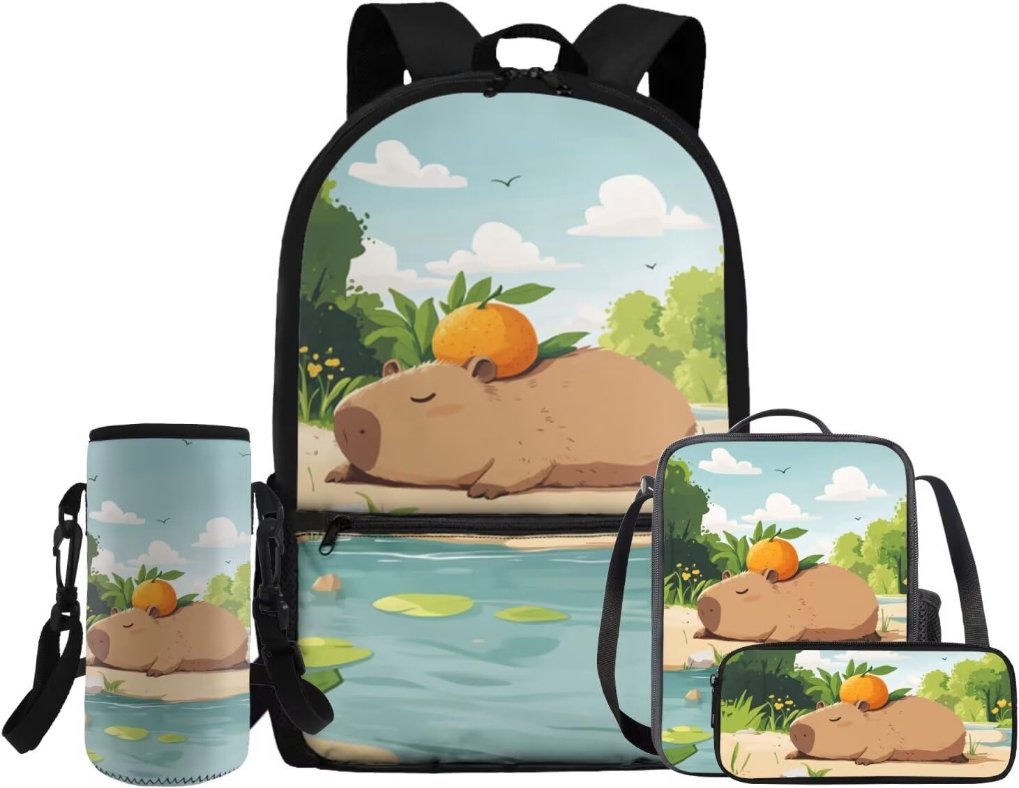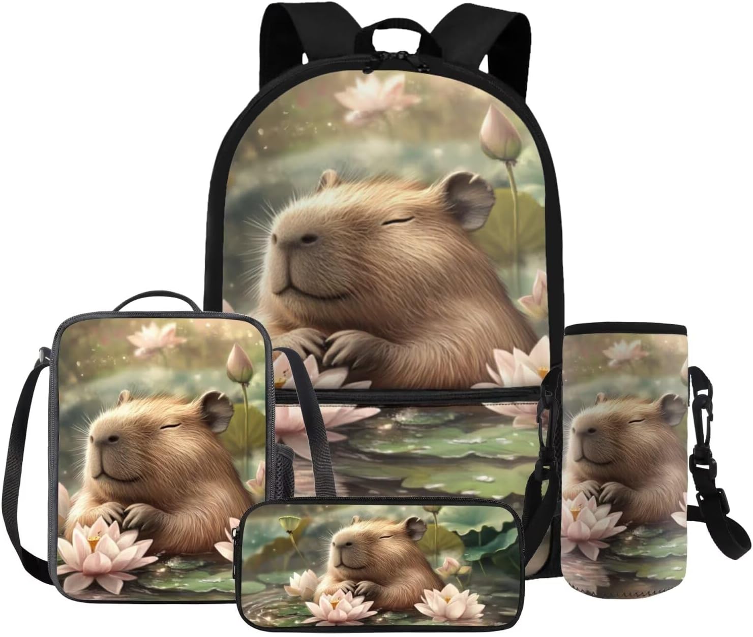 Gomyblomy Kawaii Capybara Backpack for Girls 6-8 8-10 Cute Kids School Bag with Lunch Box Pencil Case Water Bottle Sleeve Lightweight Girls Bookbag for Elementary Kindergarten Satchel