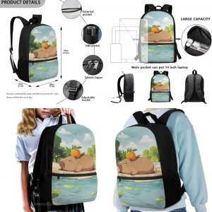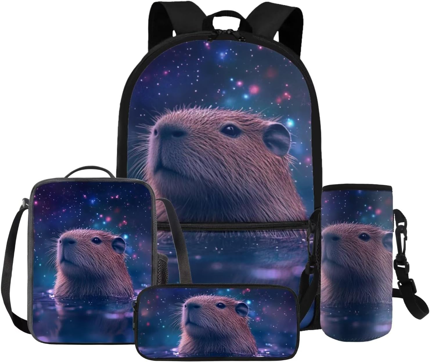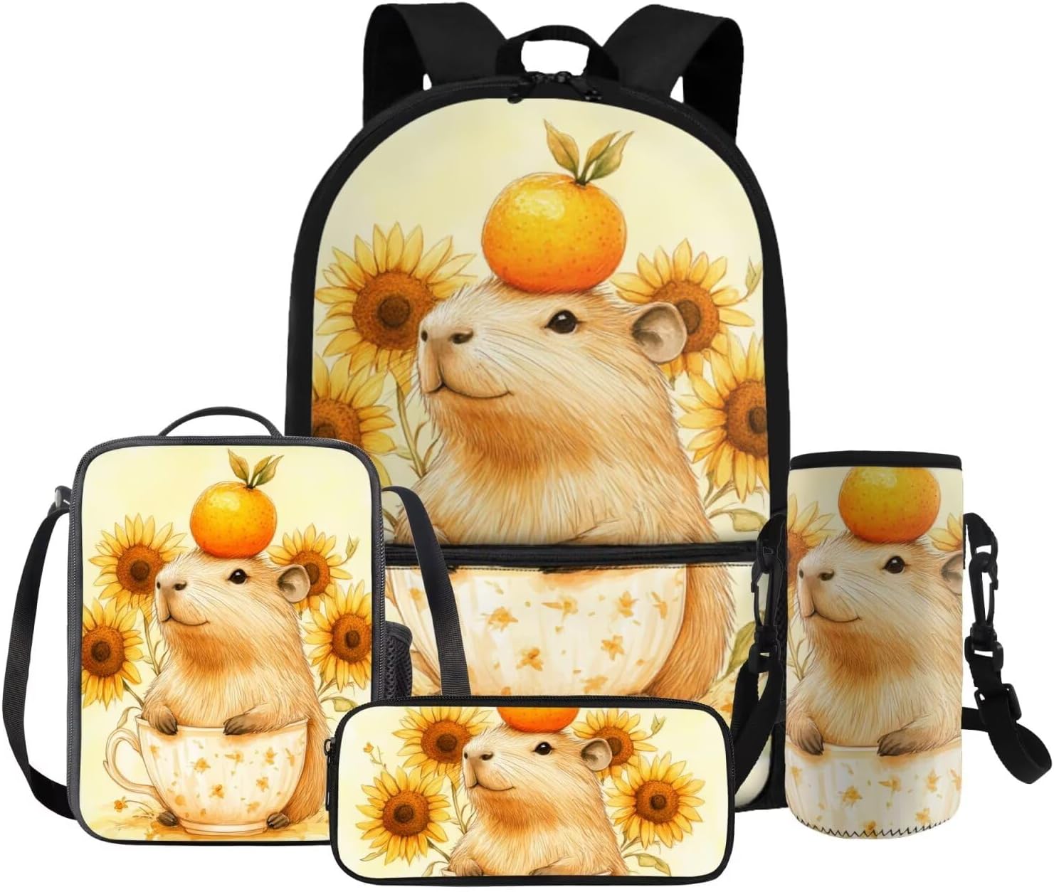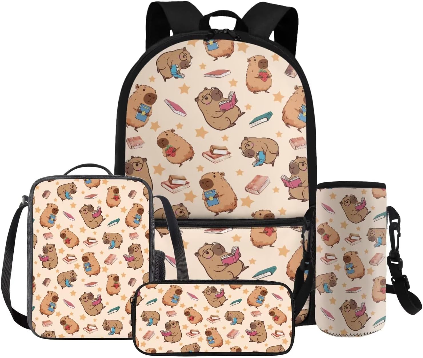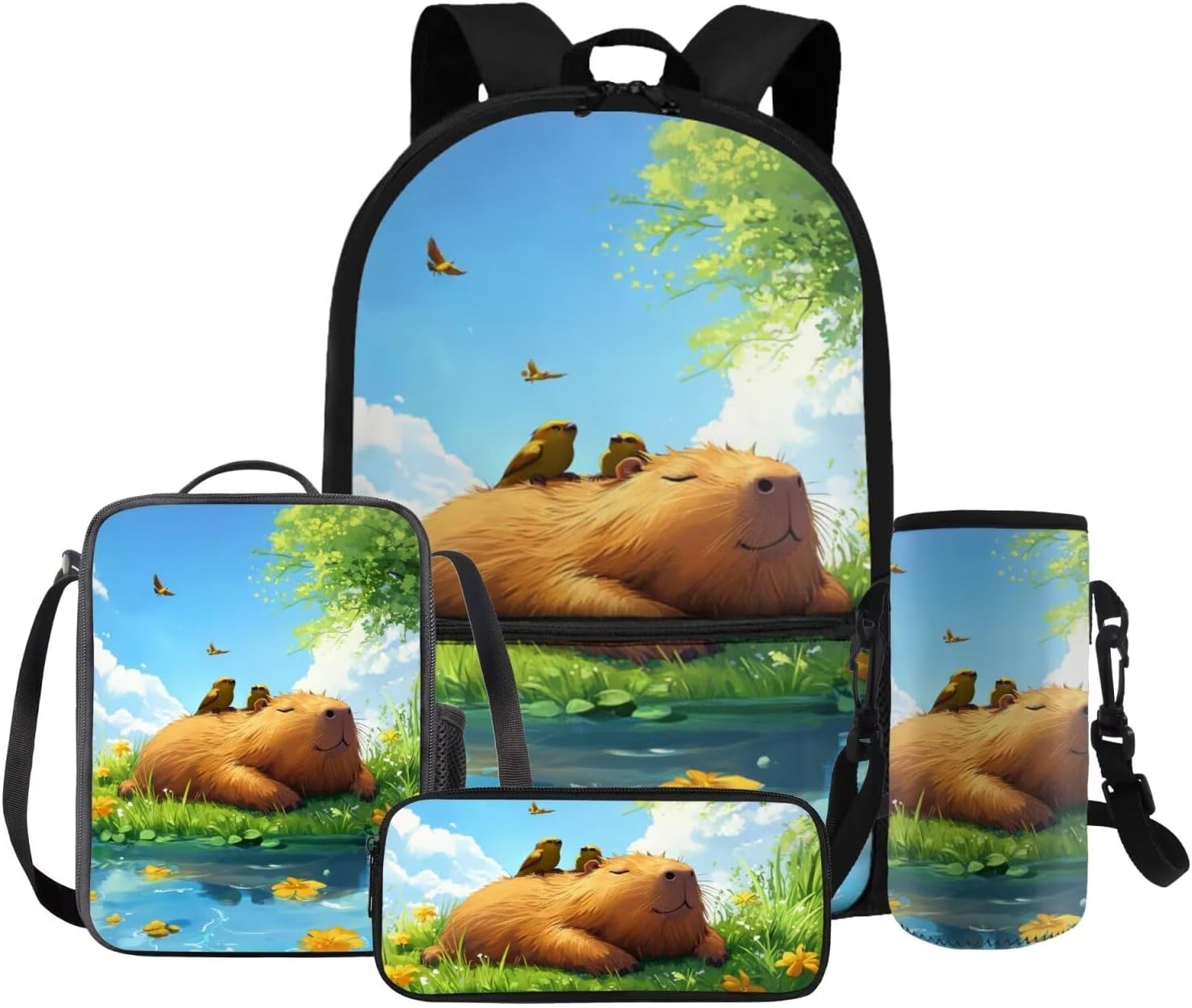 Gomyblomy Kawaii Capybara Backpack for Girls 6-8 8-10 Cute Kids School Bag with Lunch Box Pencil Case Water Bottle Sleeve Lightweight Girls Bookbag for Elementary Kindergarten Satchel