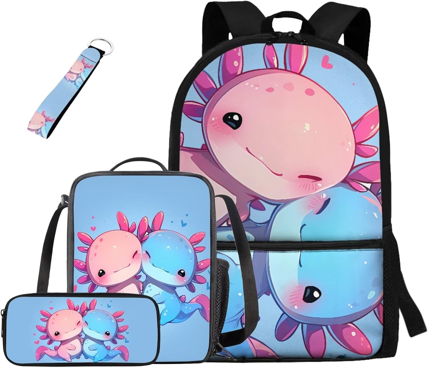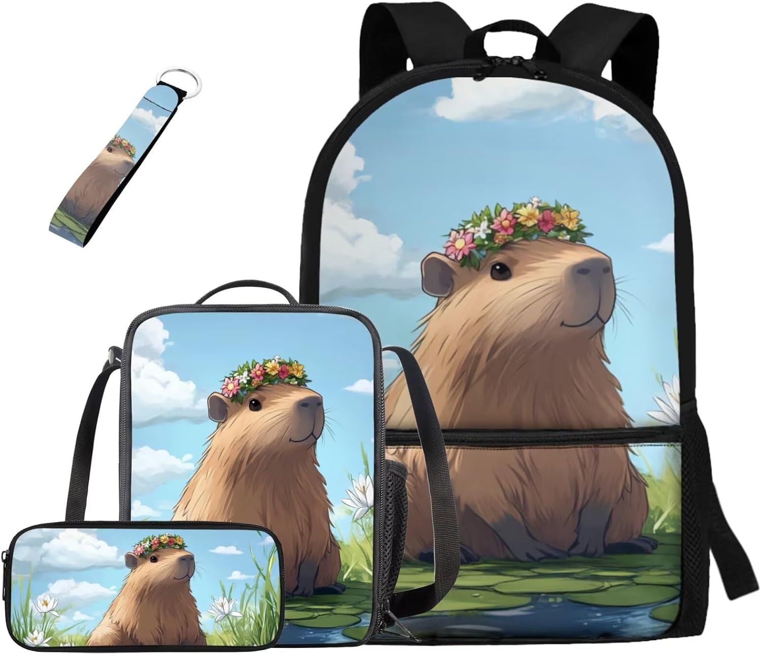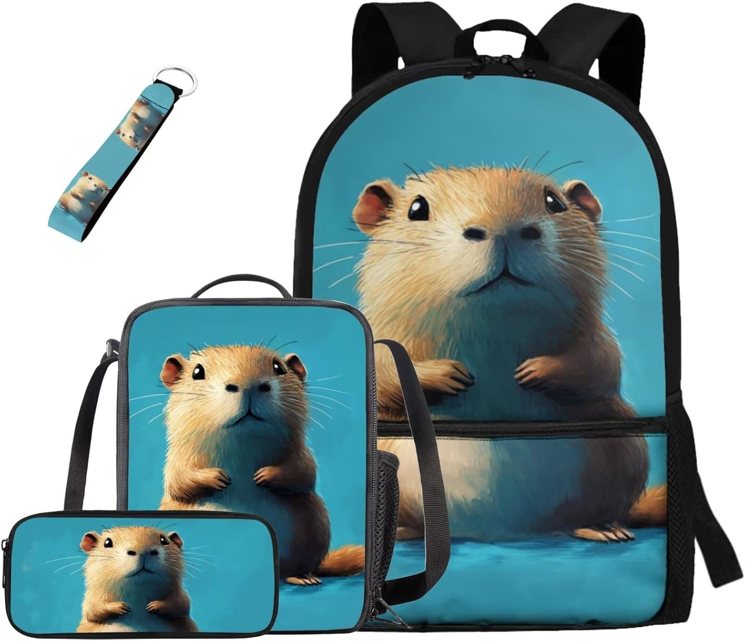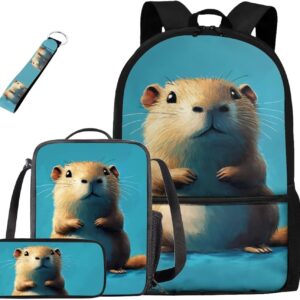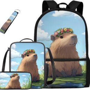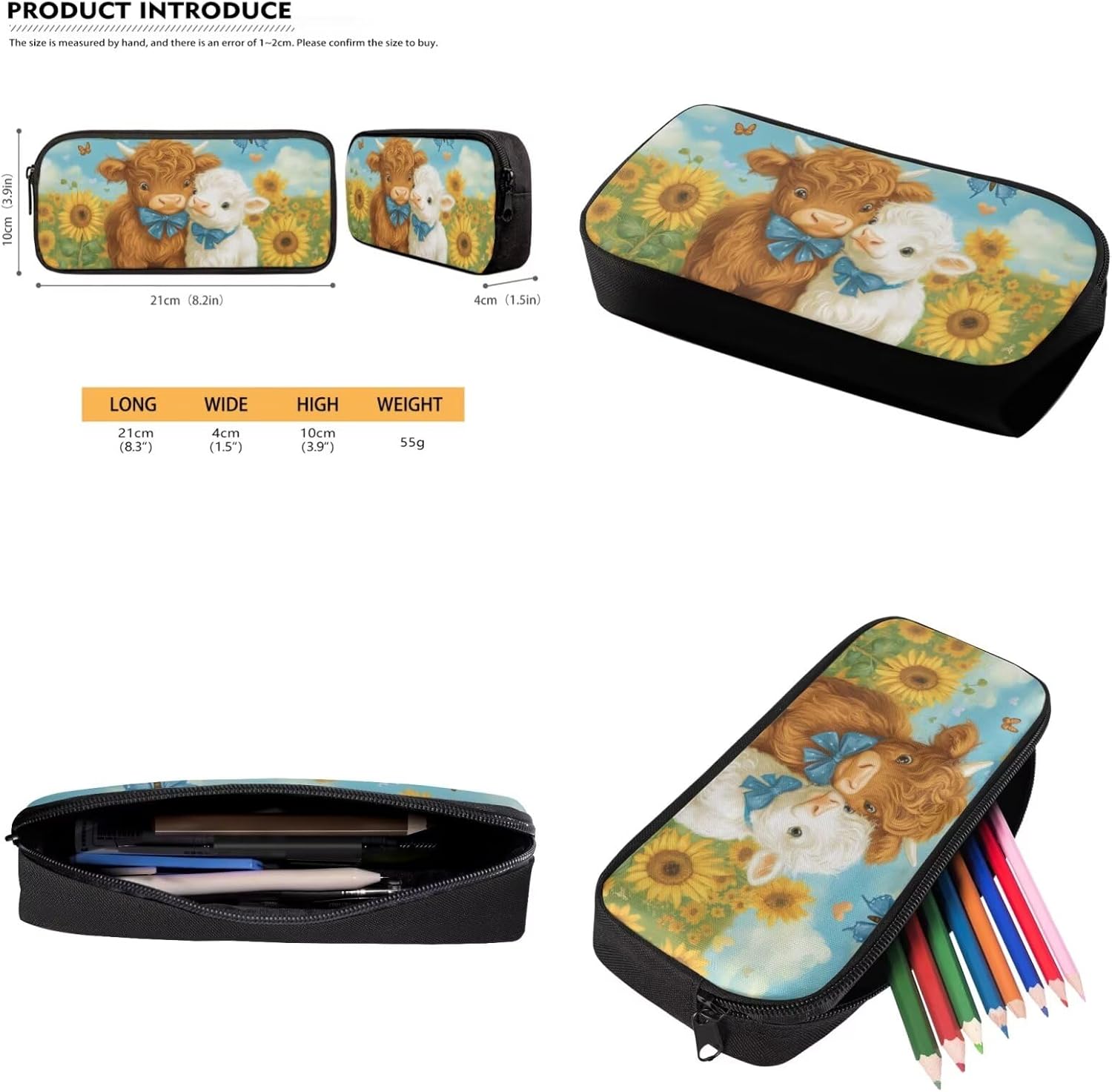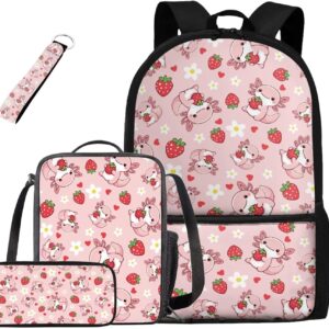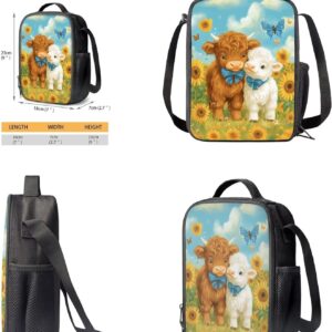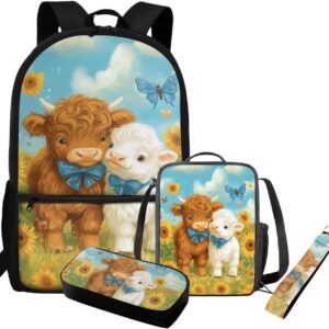 Gomyblomy Lamb Highland Cow Backpack for Girls 6-8 Kawaii Kids Bookbag with Lunch Box 4 Pcs Lightweight Girls School Bag Set for Elementary Kindergarten Back Pack Back to School Gifts