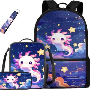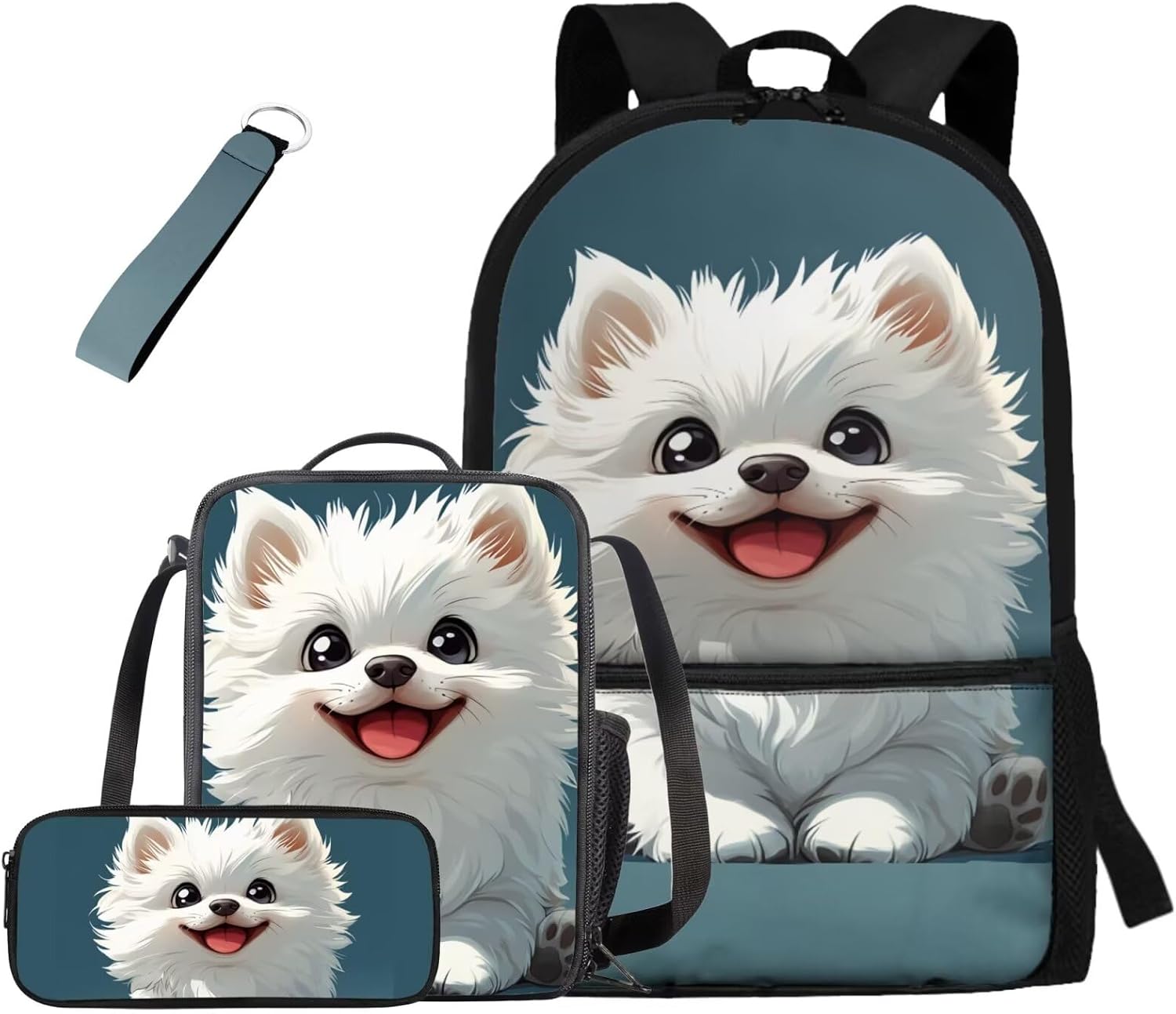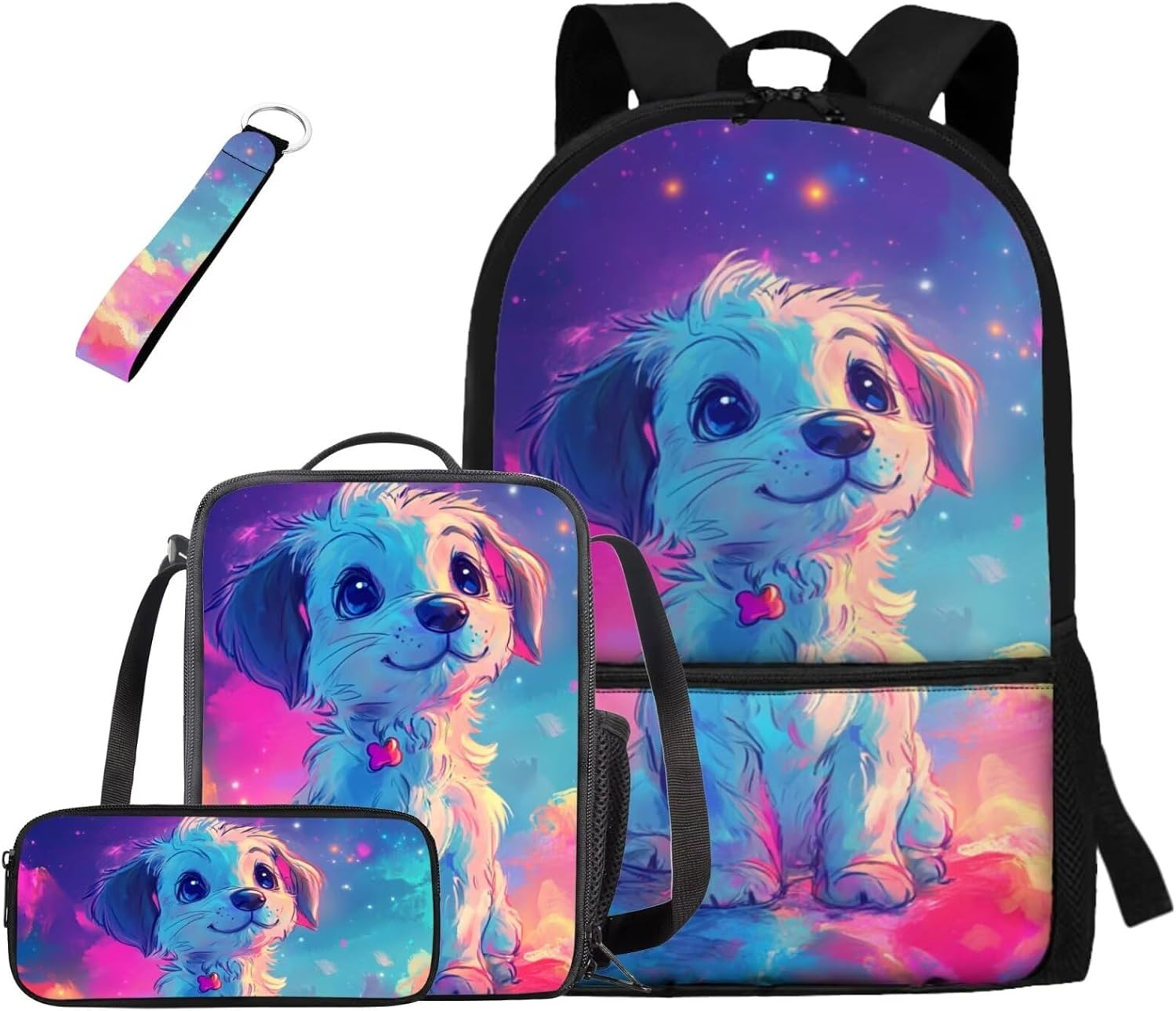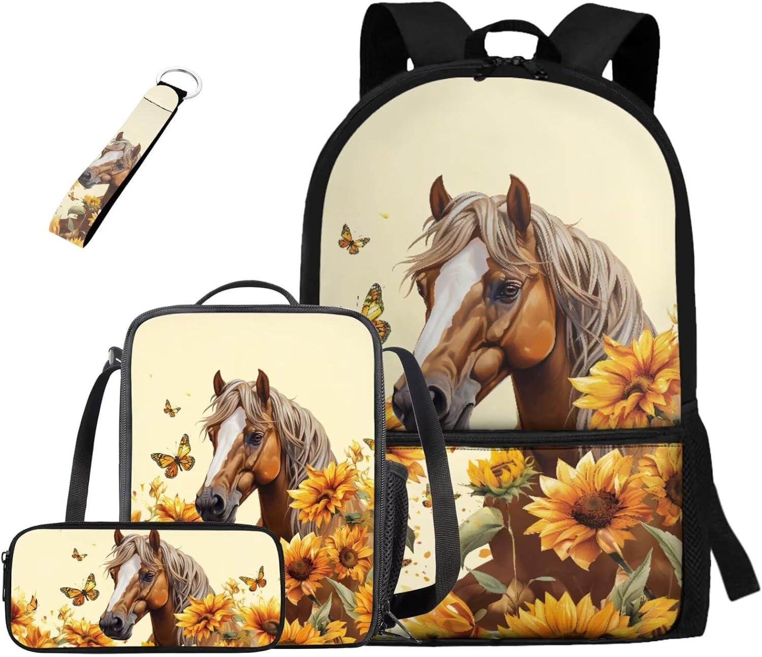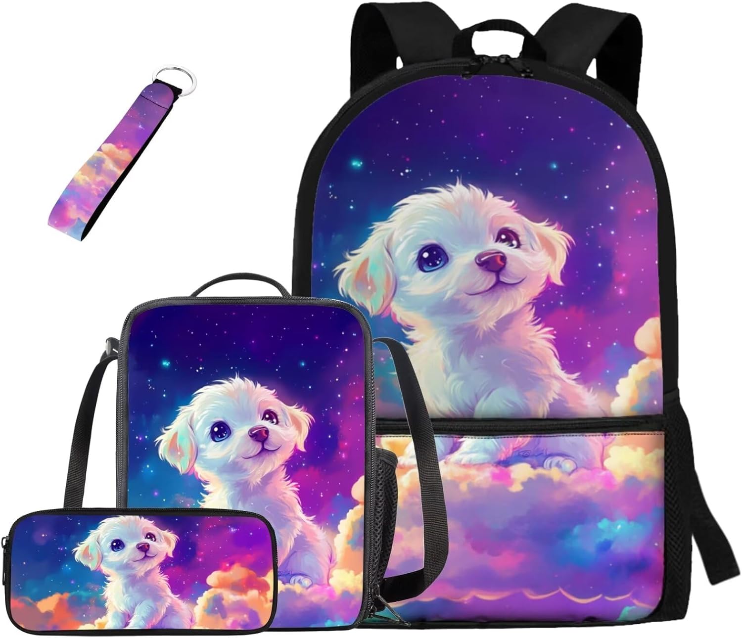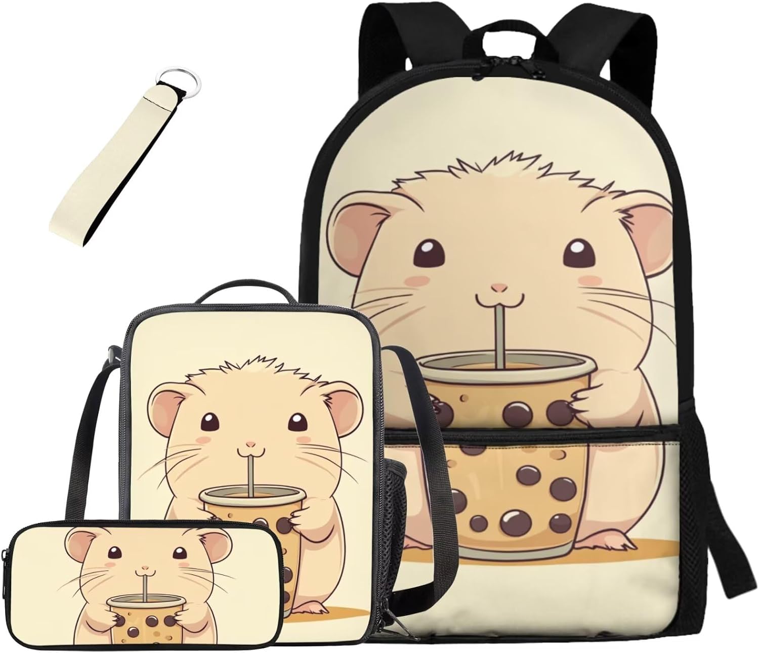 Gomyblomy Lamb Highland Cow Backpack for Girls 6-8 Kawaii Kids Bookbag with Lunch Box 4 Pcs Lightweight Girls School Bag Set for Elementary Kindergarten Back Pack Back to School Gifts