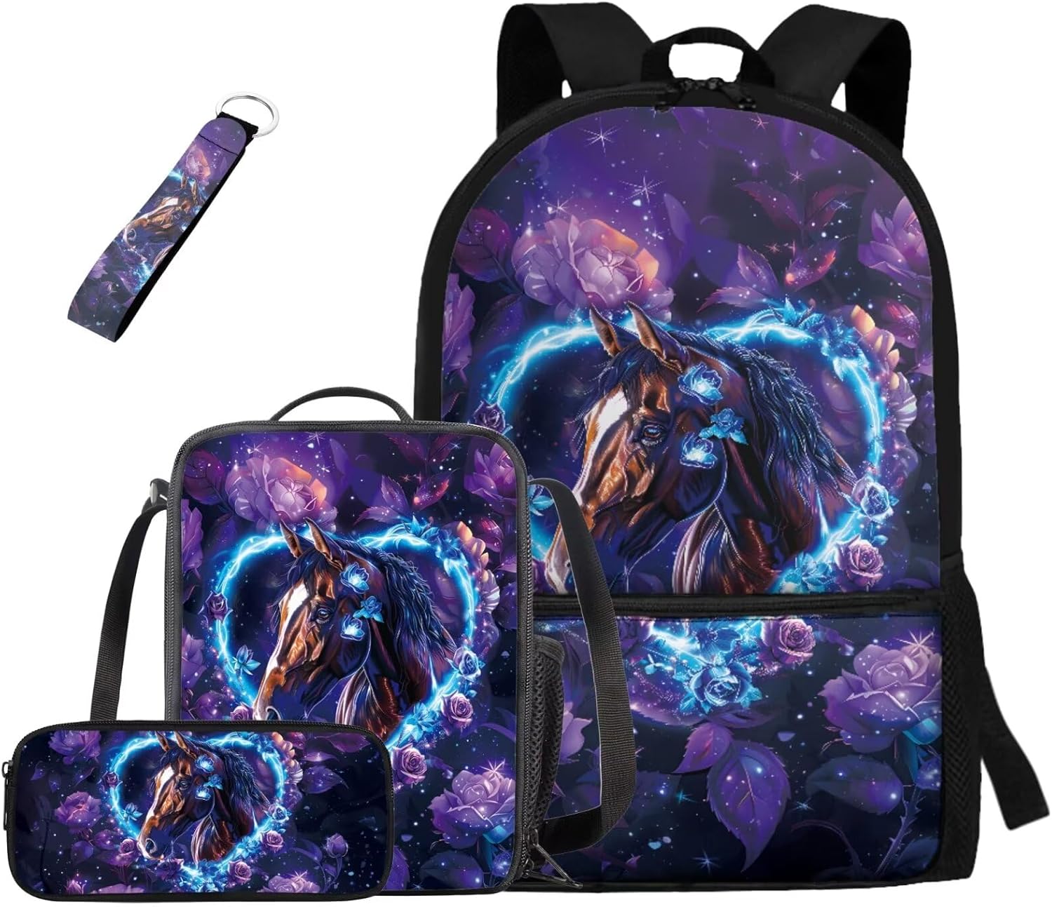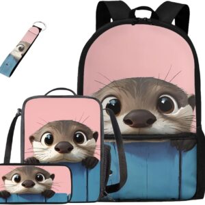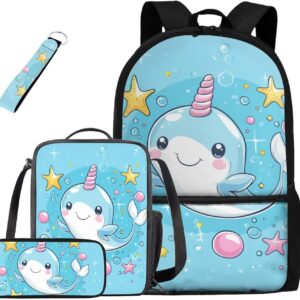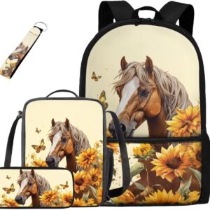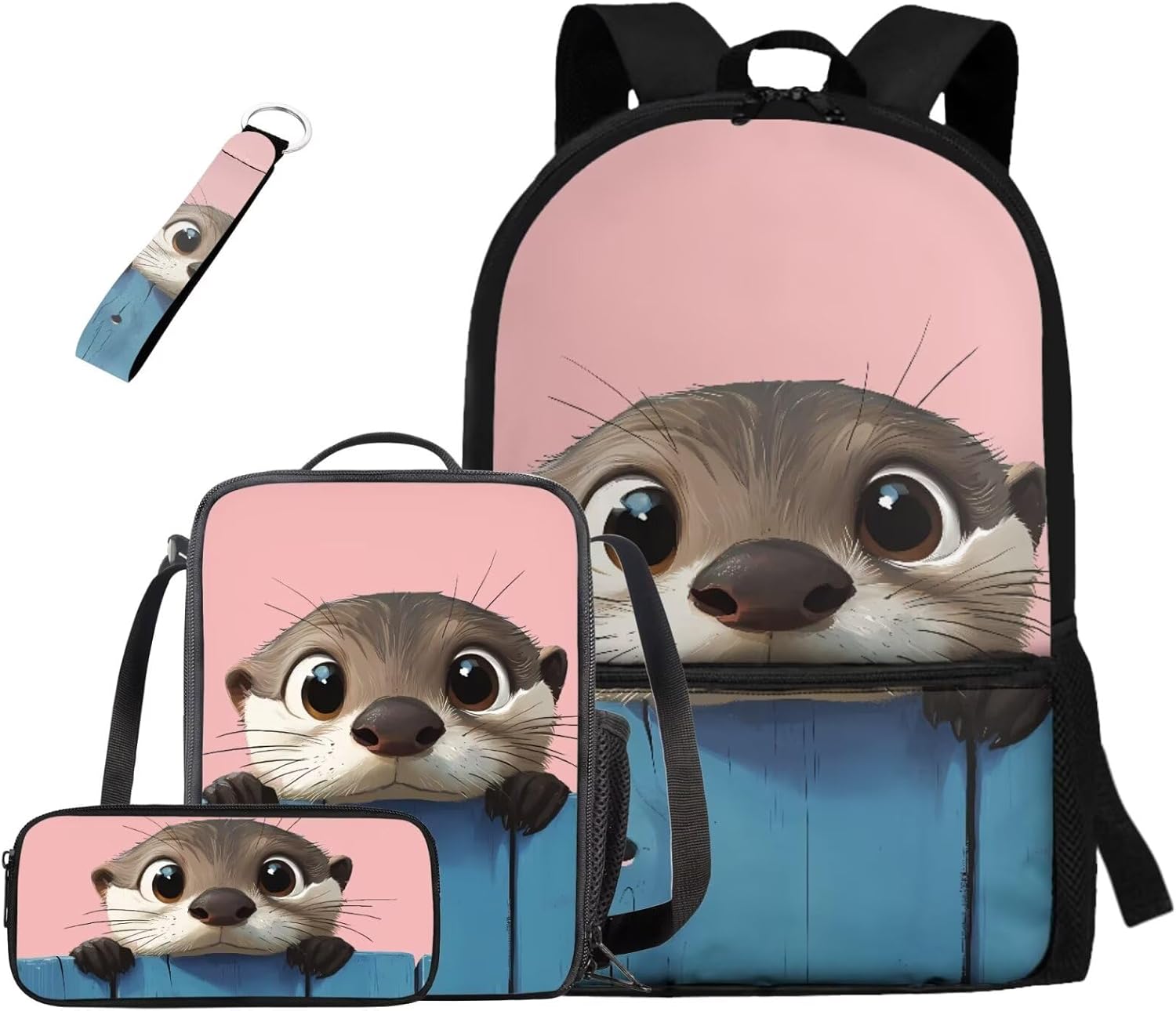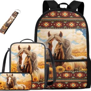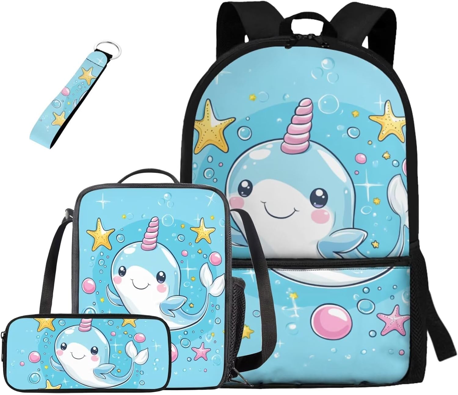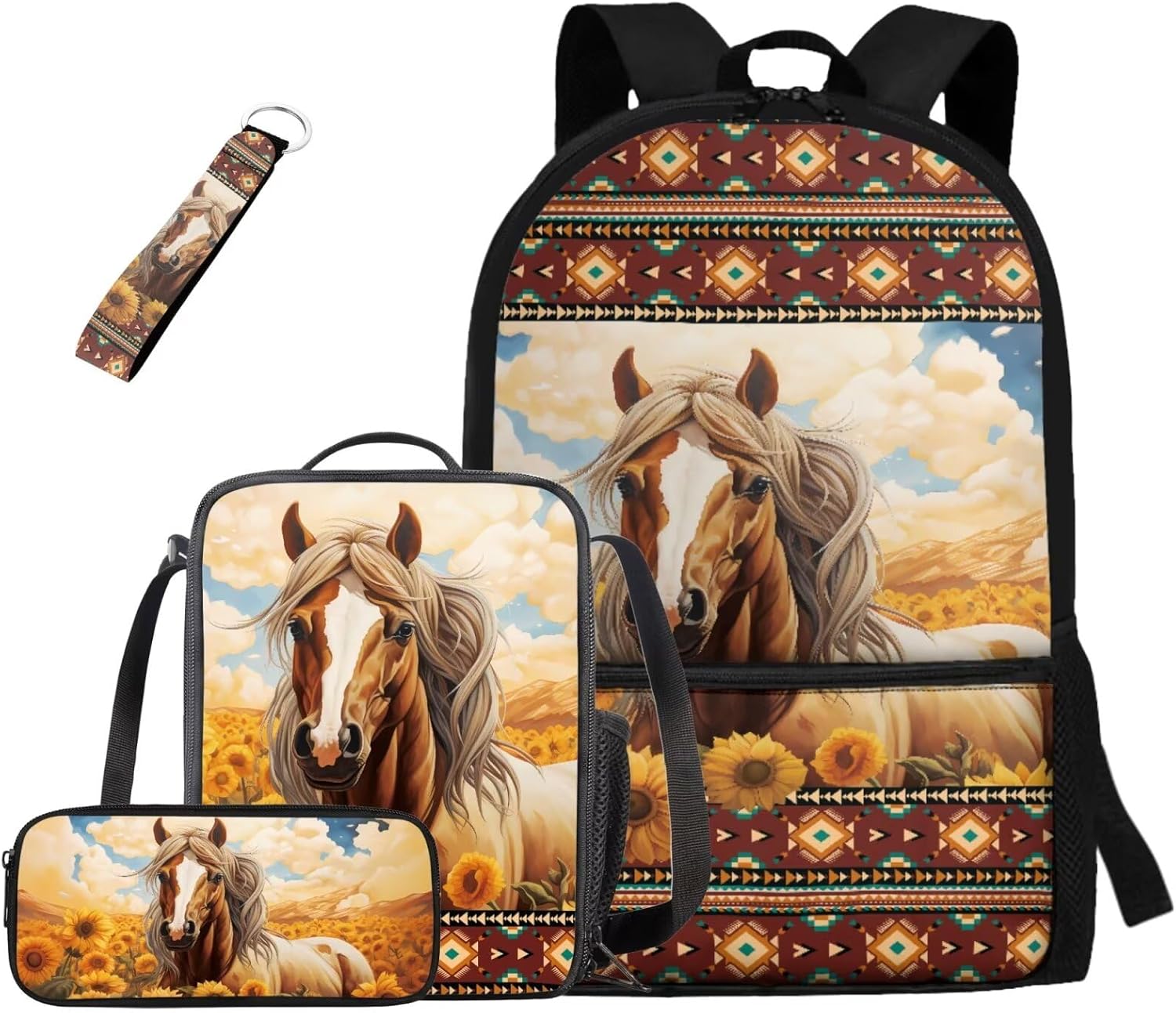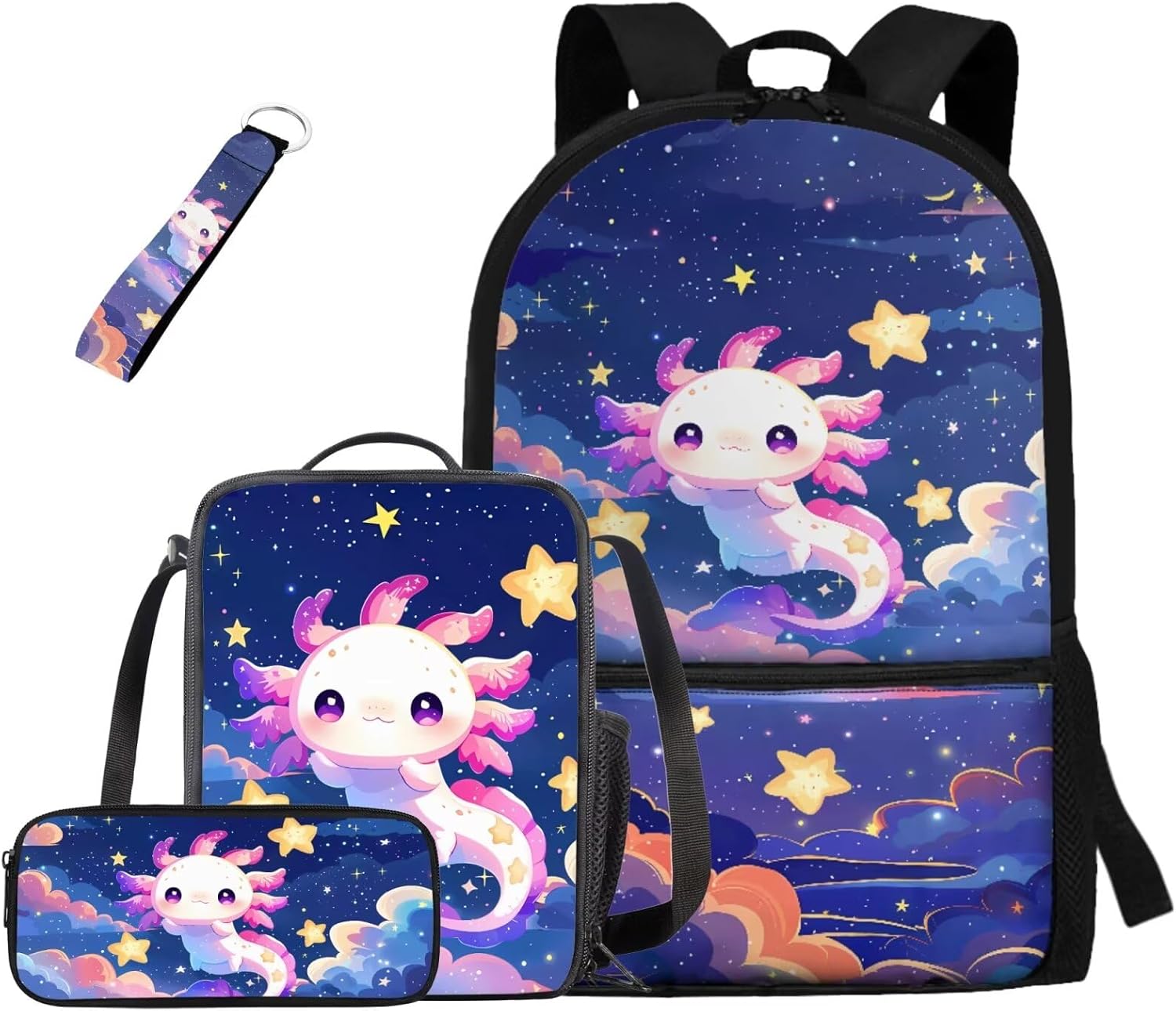 Gomyblomy Lamb Highland Cow Backpack for Girls 6-8 Kawaii Kids Bookbag with Lunch Box 4 Pcs Lightweight Girls School Bag Set for Elementary Kindergarten Back Pack Back to School Gifts