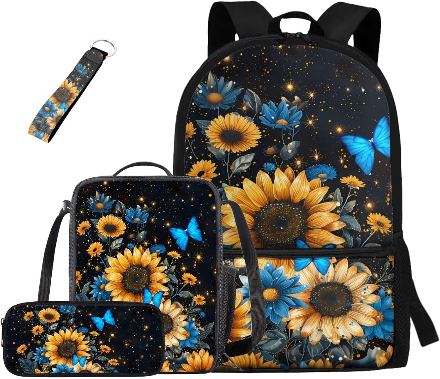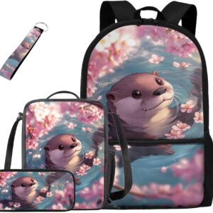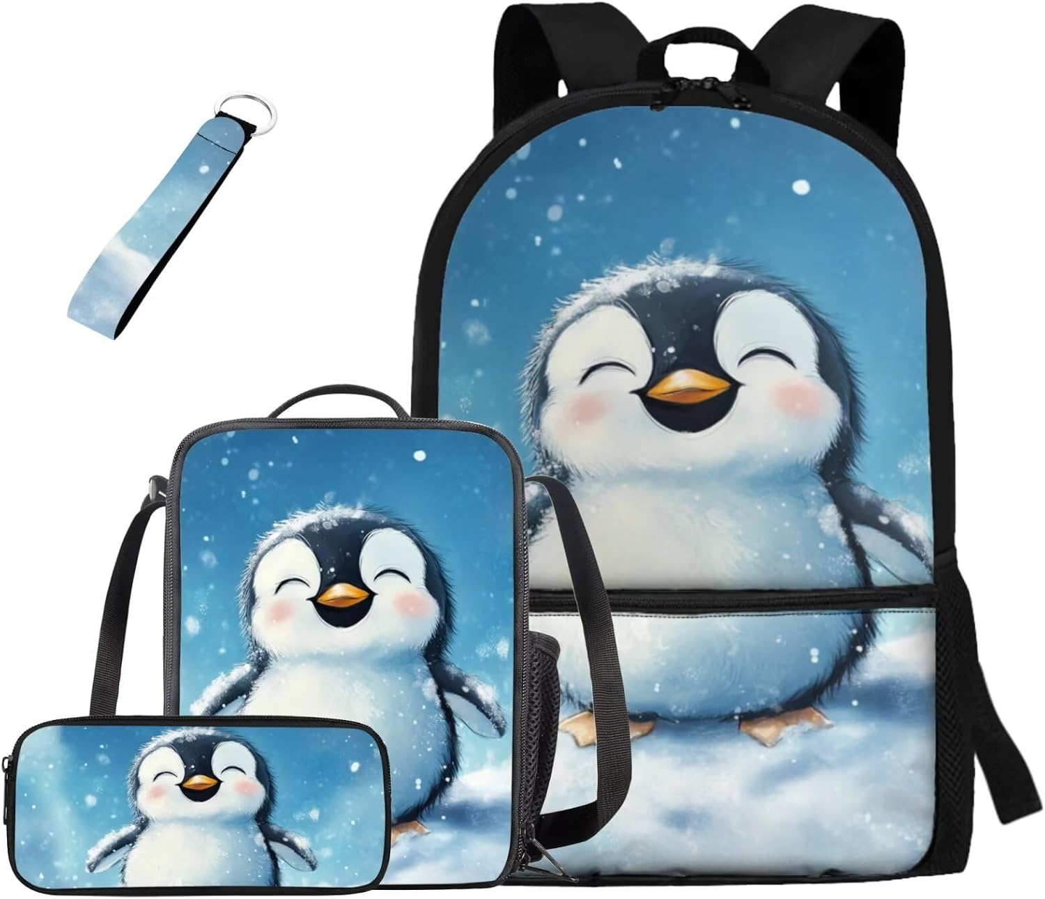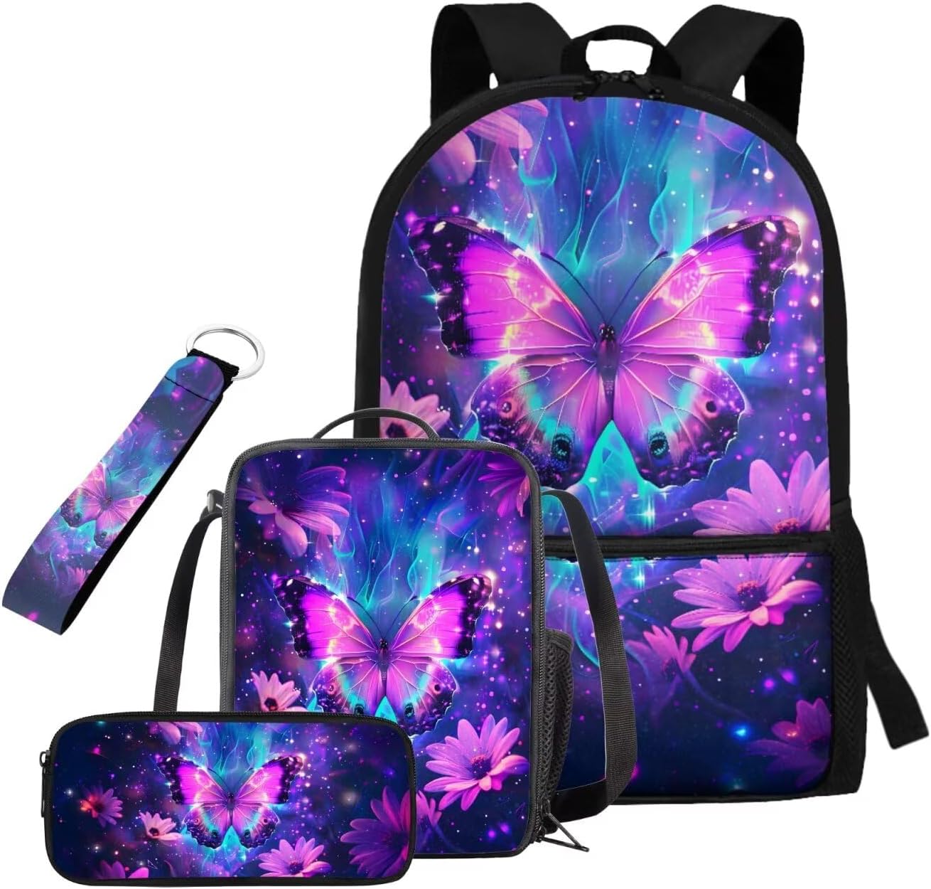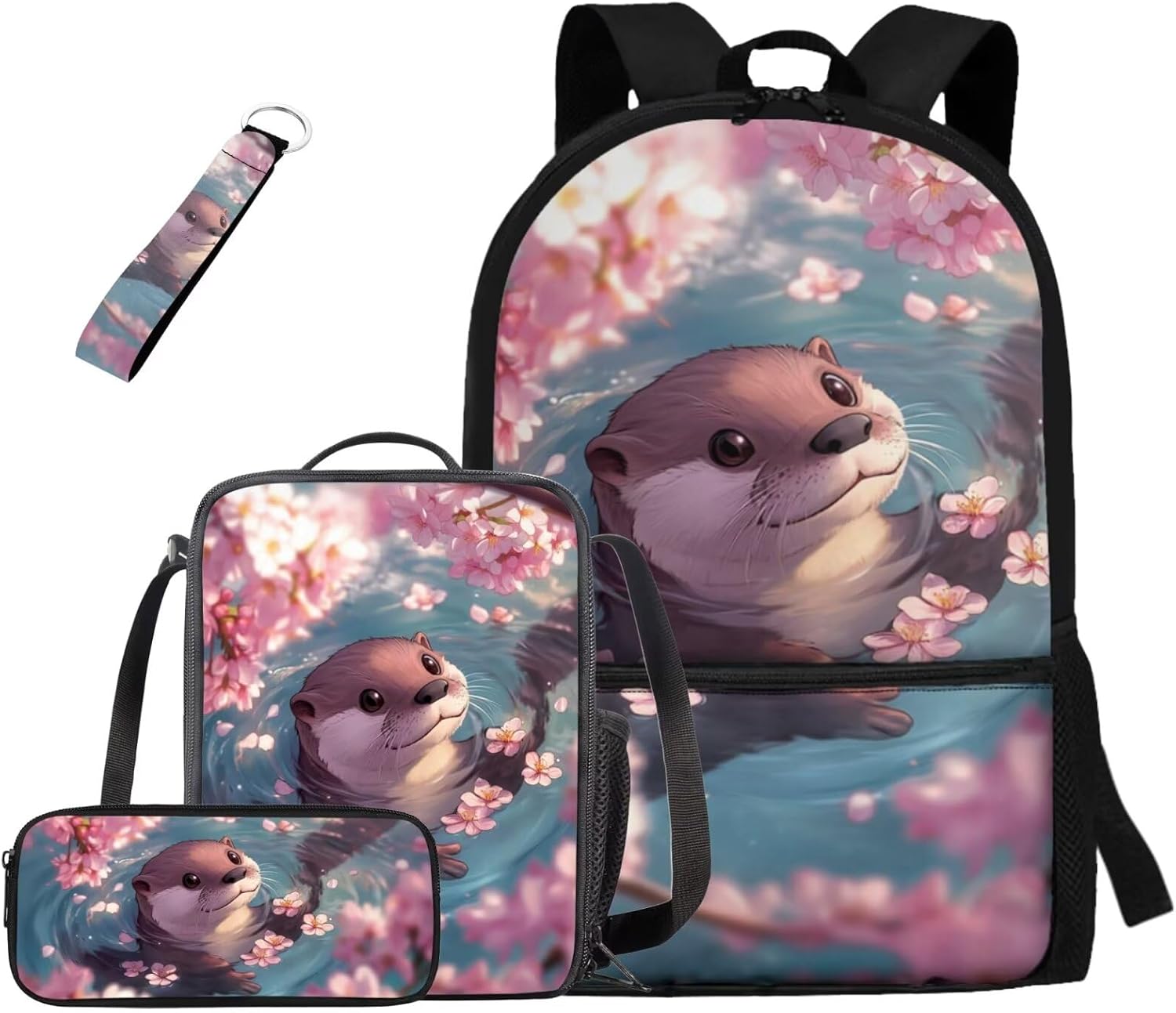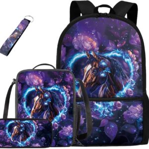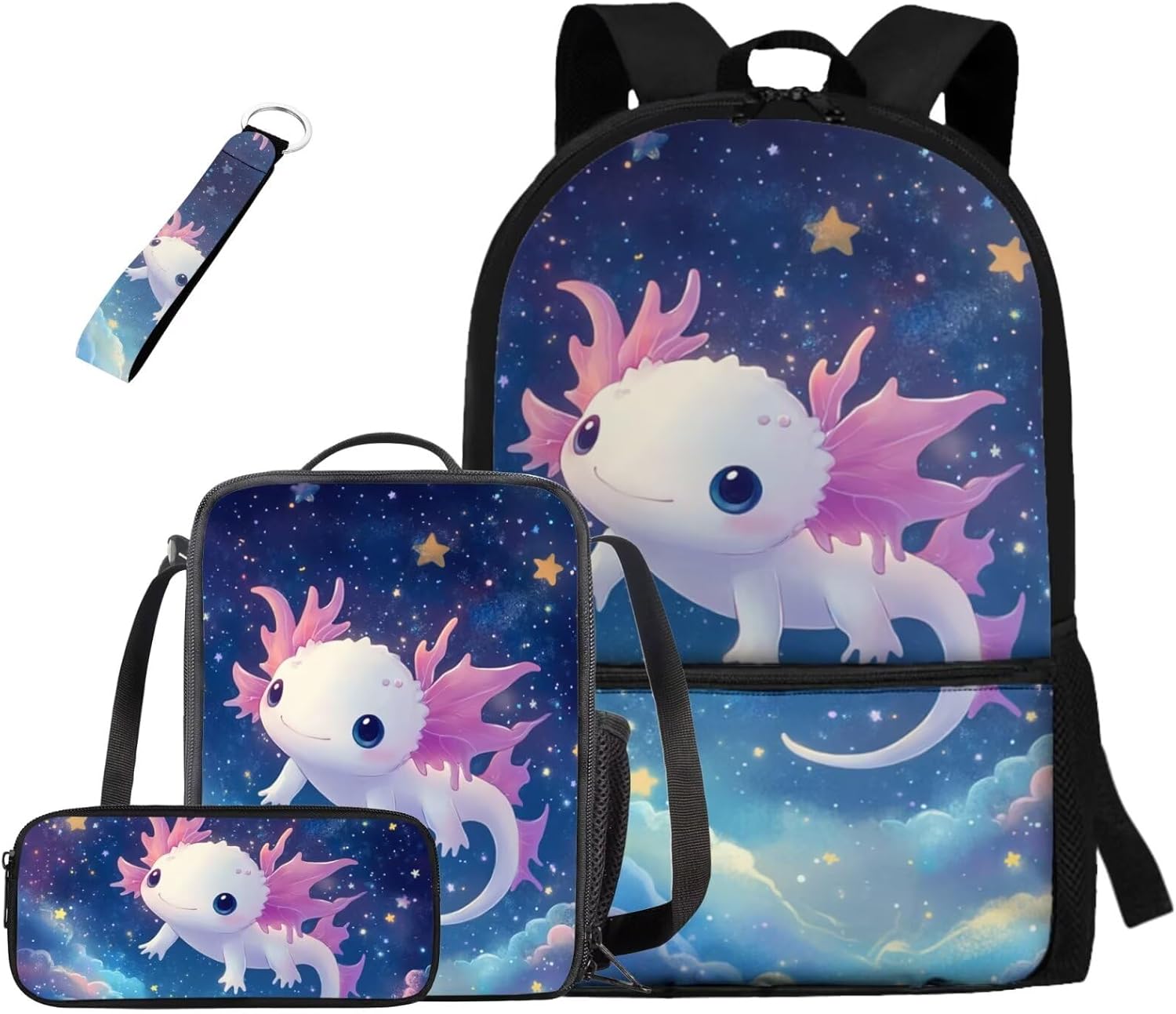 Gomyblomy Lamb Highland Cow Backpack for Girls 6-8 Kawaii Kids Bookbag with Lunch Box 4 Pcs Lightweight Girls School Bag Set for Elementary Kindergarten Back Pack Back to School Gifts