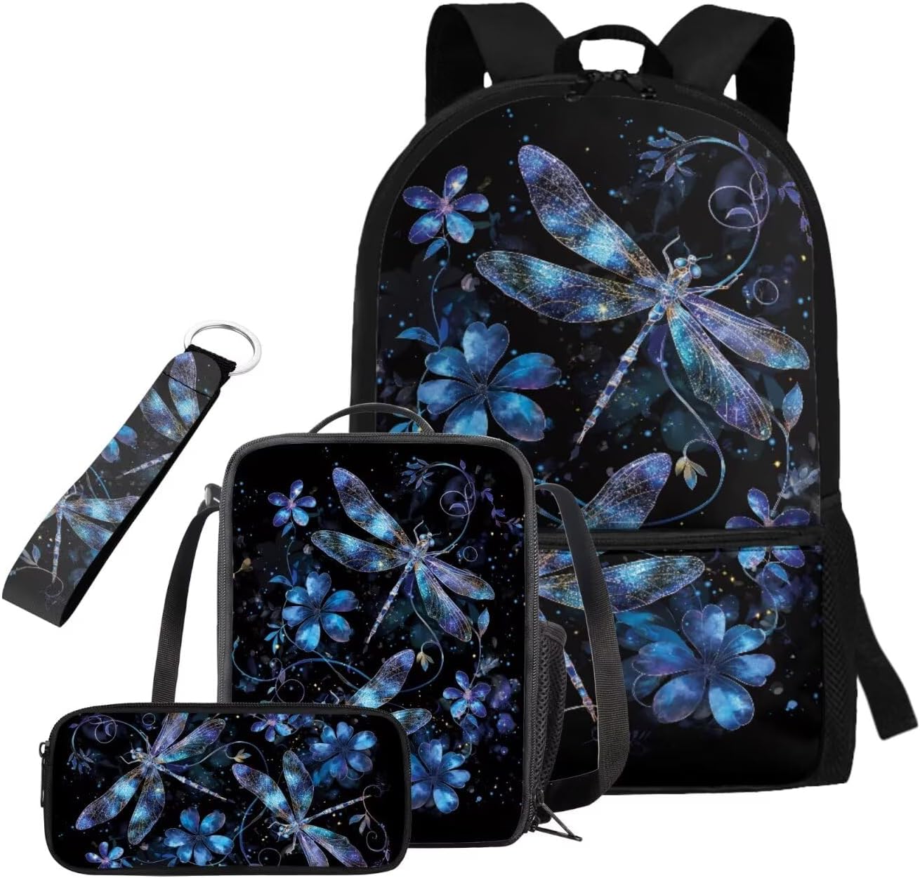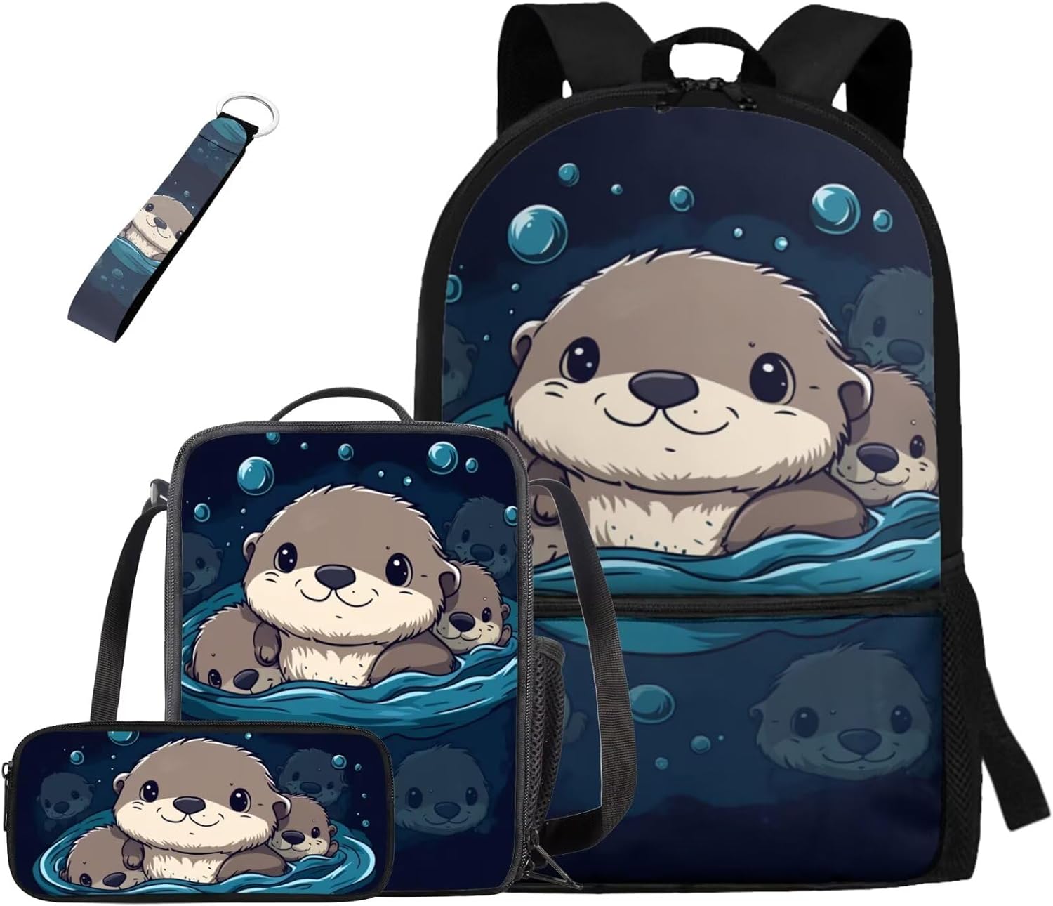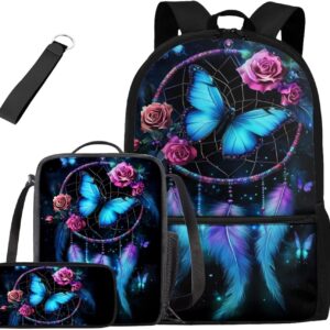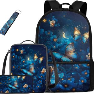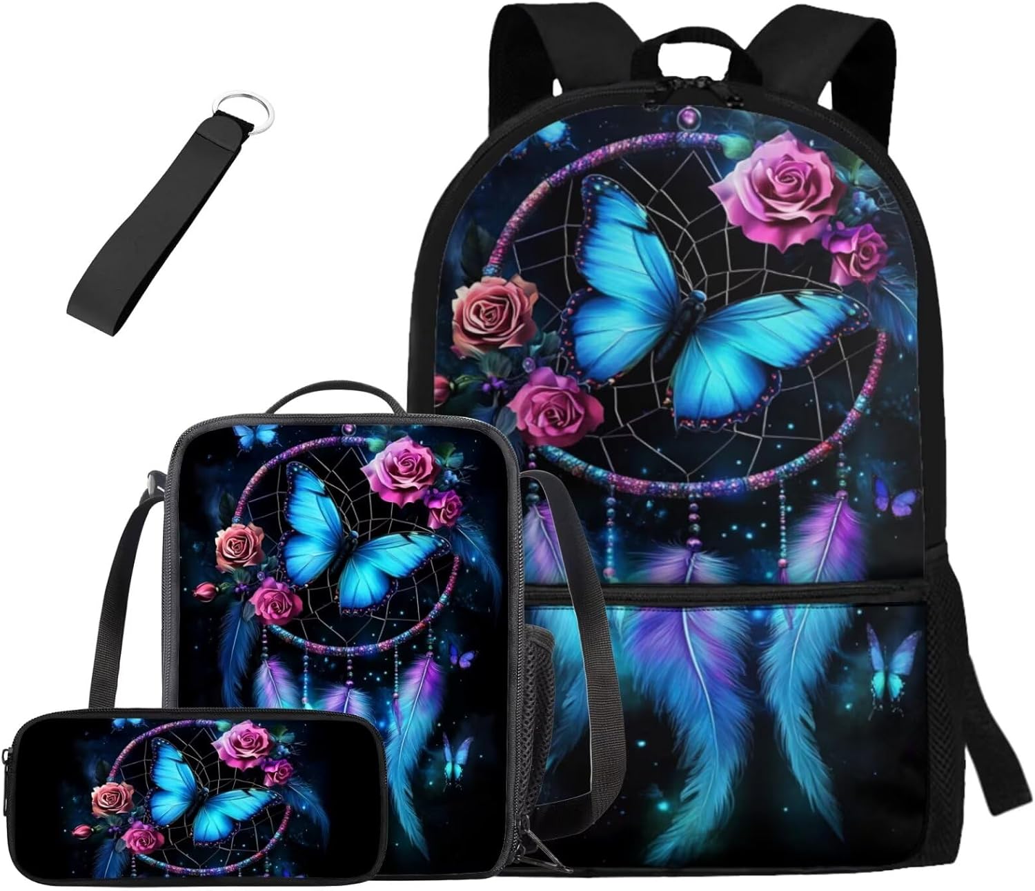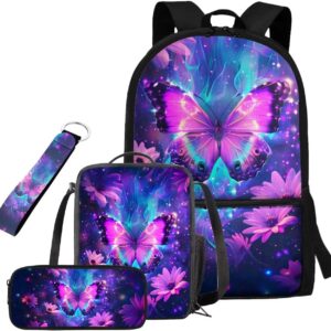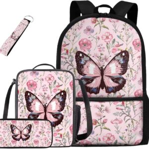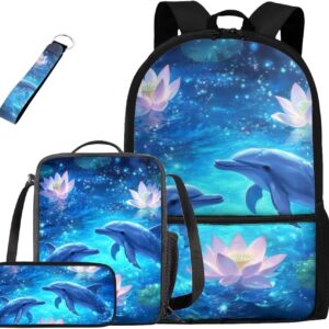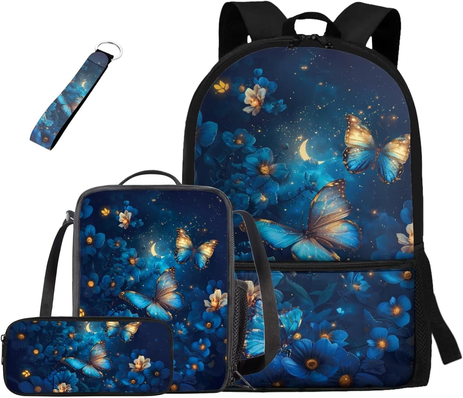 Gomyblomy Lamb Highland Cow Backpack for Girls 6-8 Kawaii Kids Bookbag with Lunch Box 4 Pcs Lightweight Girls School Bag Set for Elementary Kindergarten Back Pack Back to School Gifts