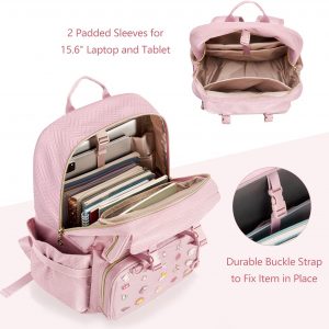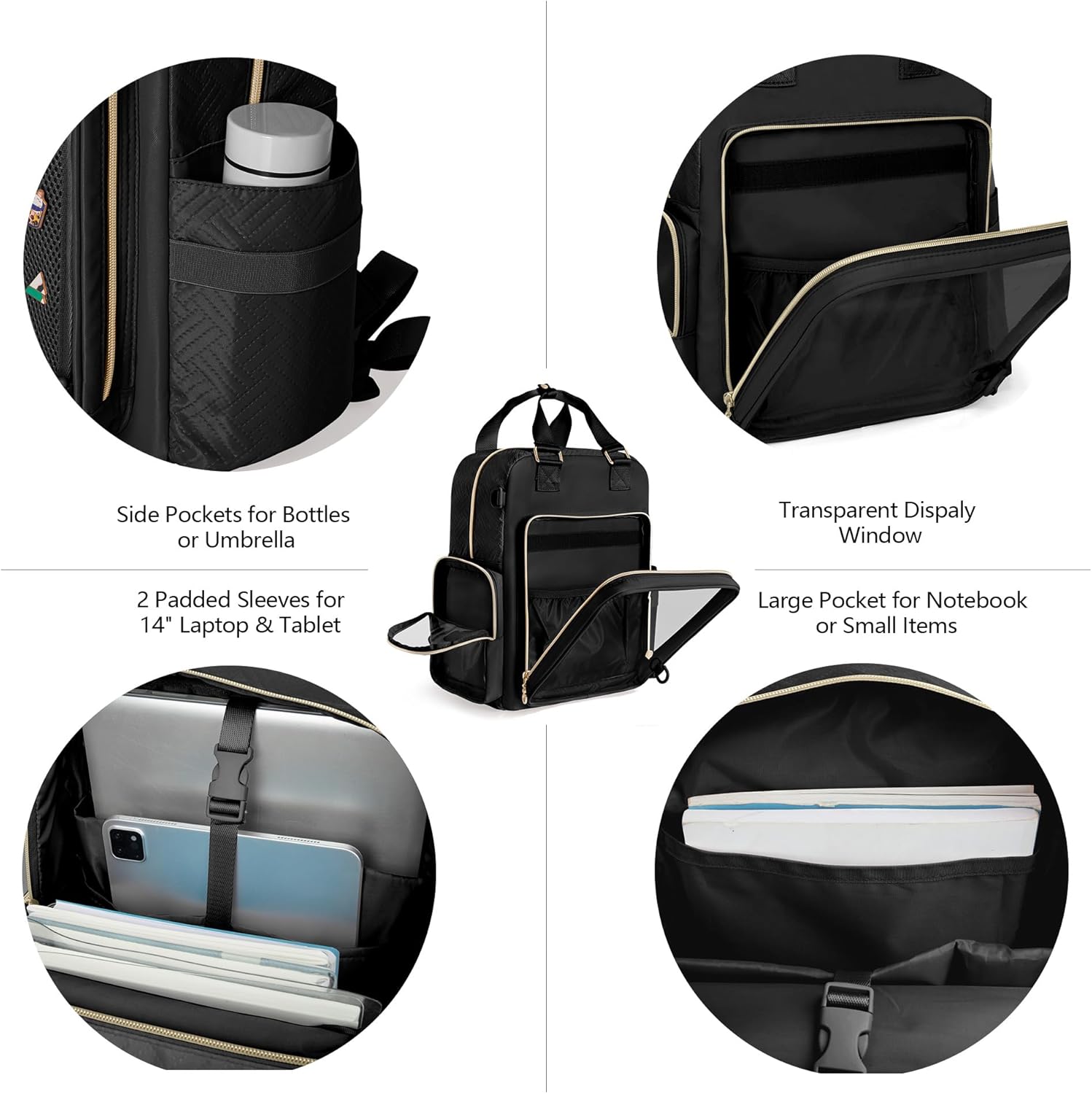 - LARGE CAPACITY: Main compartment has 2 padded sleeves that can fit a 14 inch laptop and a tablet, a deep pocket for magazines, and extra ample space for folders, books, purse, etc. A side pocket for carrying water bottle or umbrella. Back zipper pocket for keeping cell phone.