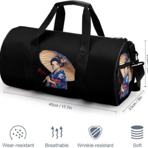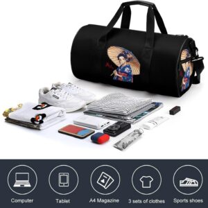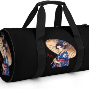 Japanese Kawaii Geisha Girl Gym Bag Lightweight Carry On Duffel Bag Athletic Sports Travel Bag Weekender Bag for Men Women