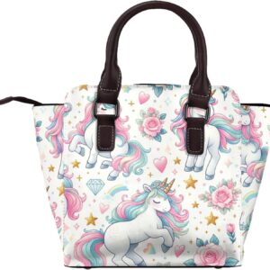 Kawaii-Horse-Twinkling-Stars Pu Leather Crossbody Studded Bag, Fashionable Shoulder Handbag With Detachable Shoulder Strap