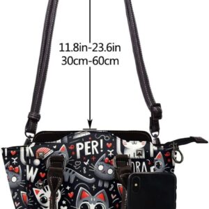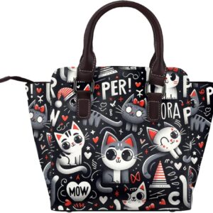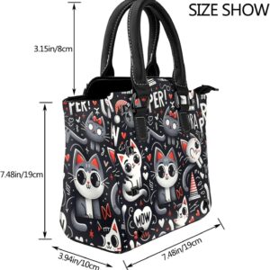 Kawaii-Kittens-Cats-Love Pu Leather Crossbody Studded Bag, Fashionable Shoulder Handbag With Detachable Shoulder Strap