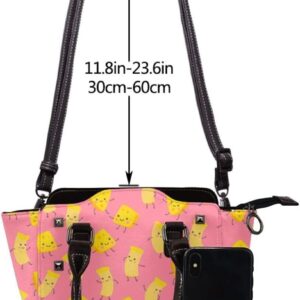 Kawaii Macaron Cheese Pu Leather Crossbody Studded Bag, Fashionable Shoulder Handbag With Detachable Shoulder Strap