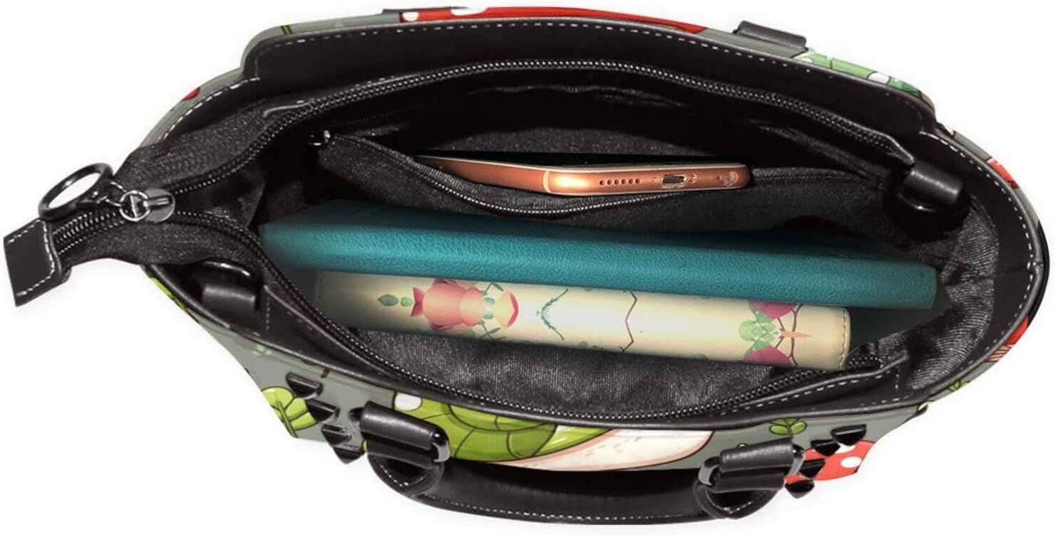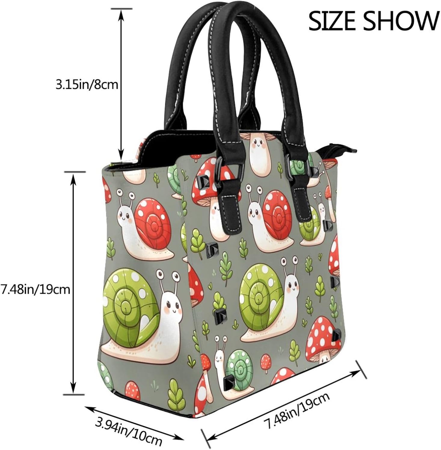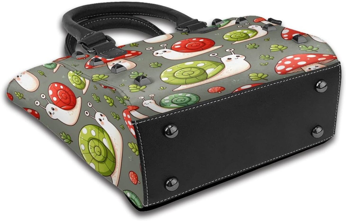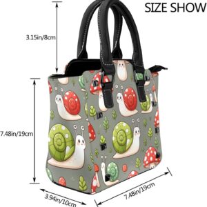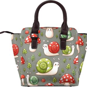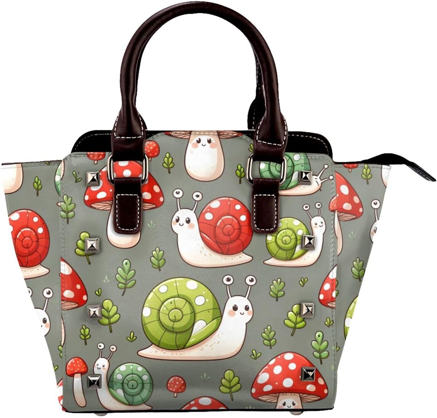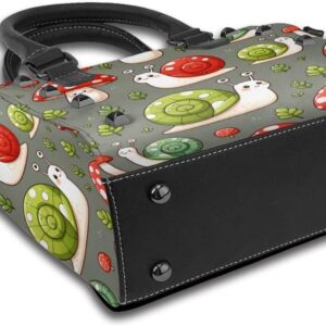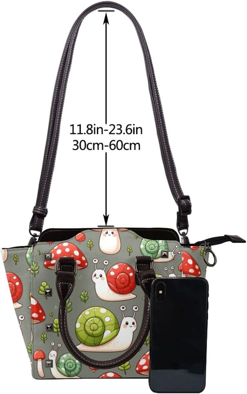 Kawaii-Snails-Mushrooms Pu Leather Crossbody Studded Bag, Fashionable Shoulder Handbag With Detachable Shoulder Strap