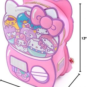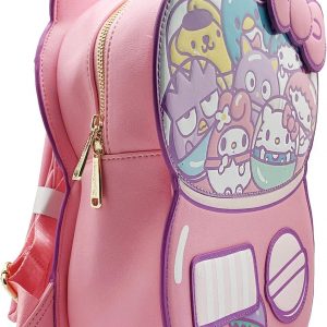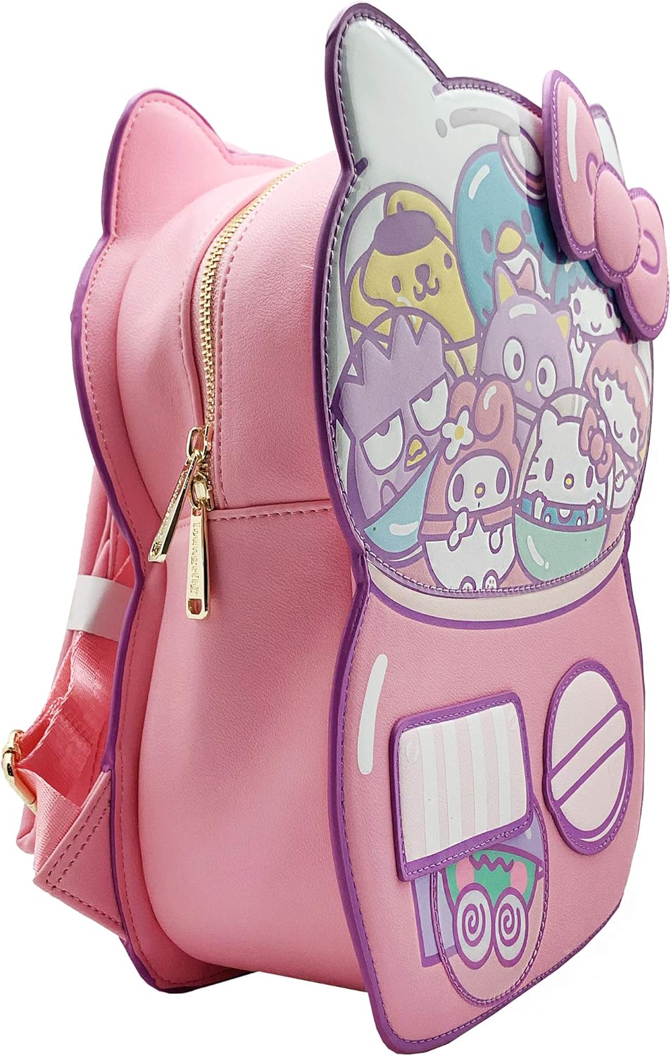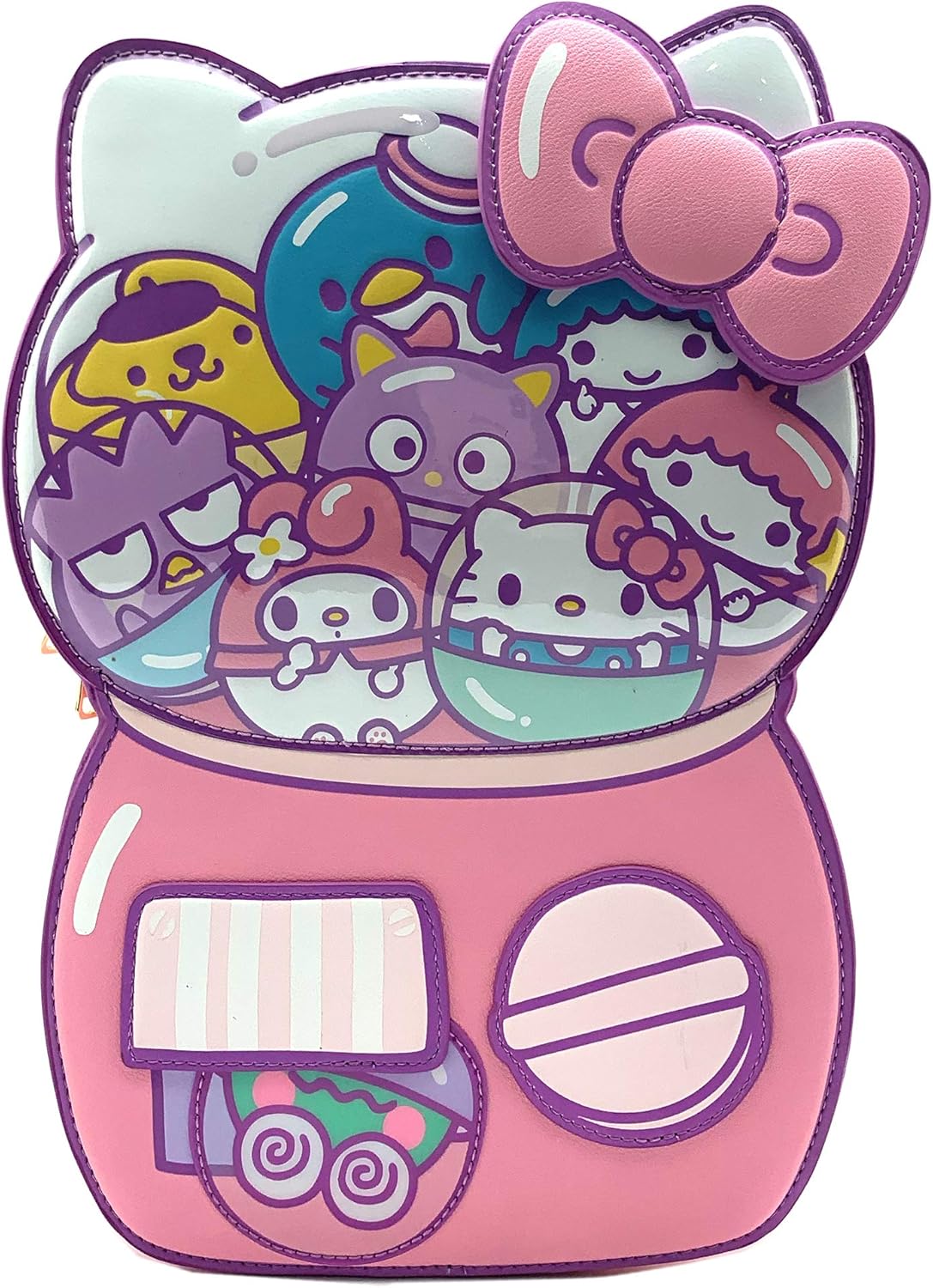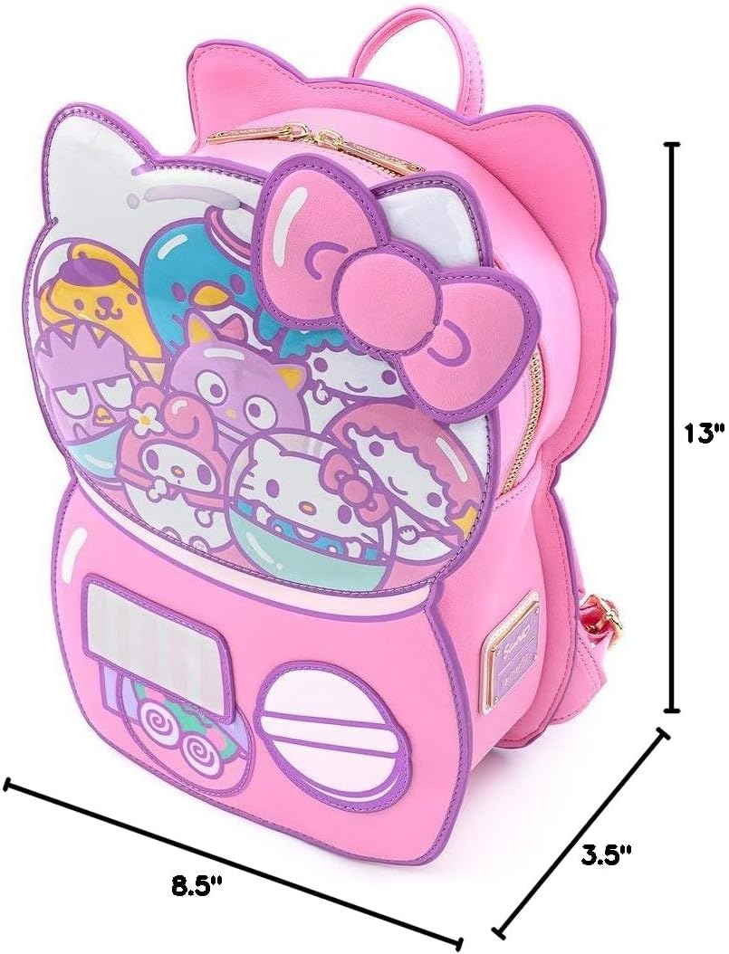 - This out-of-the-work super kawaii mini backpack features a full-on Hello Kitty gumball machine shaped backpack with all her favorite Sanrio friends as prizes on vegan leather base, top handle, adjustable dual padded shoulder straps, fully lined interior, and secure top zip closure. Who's your favorite prize?