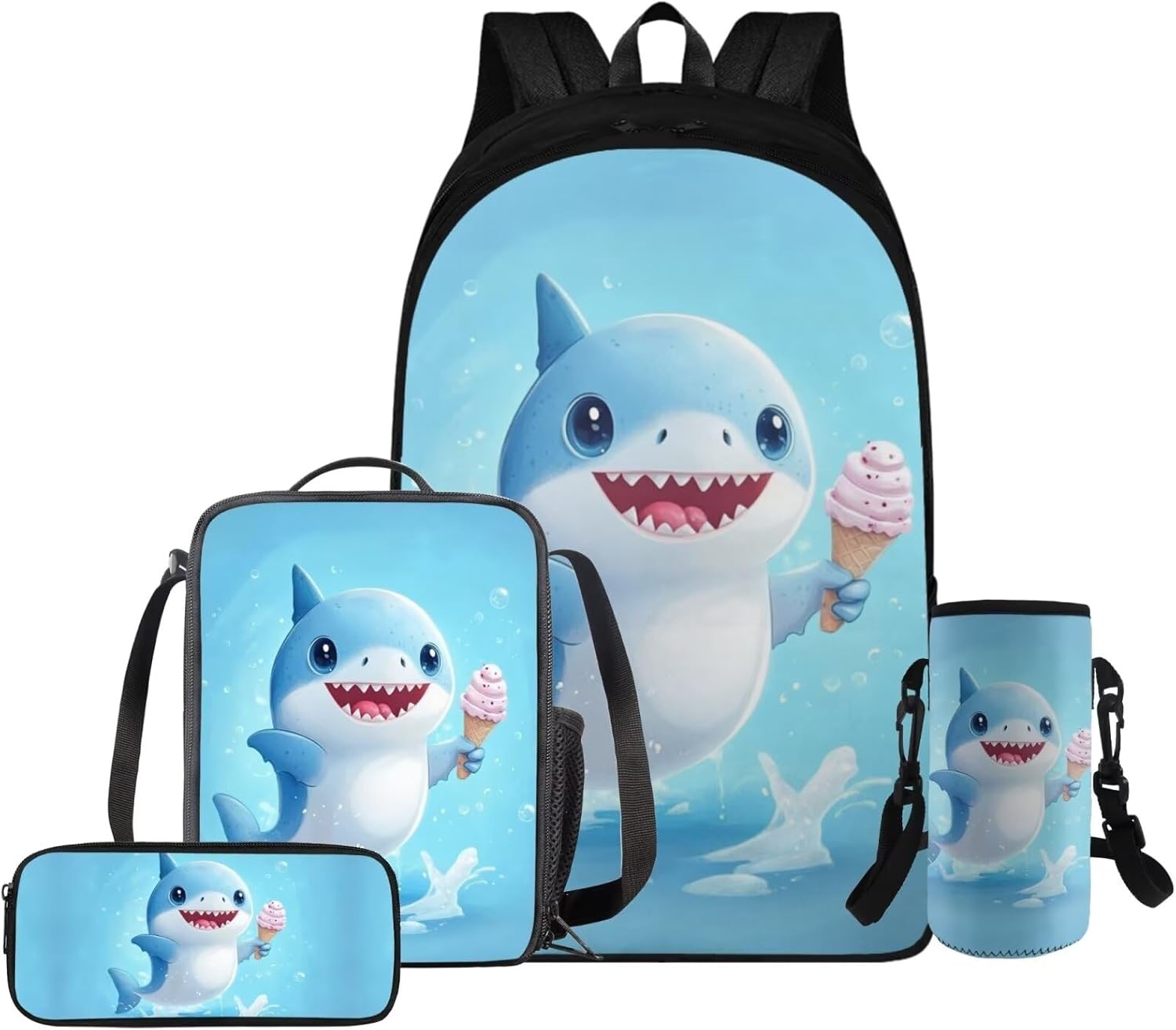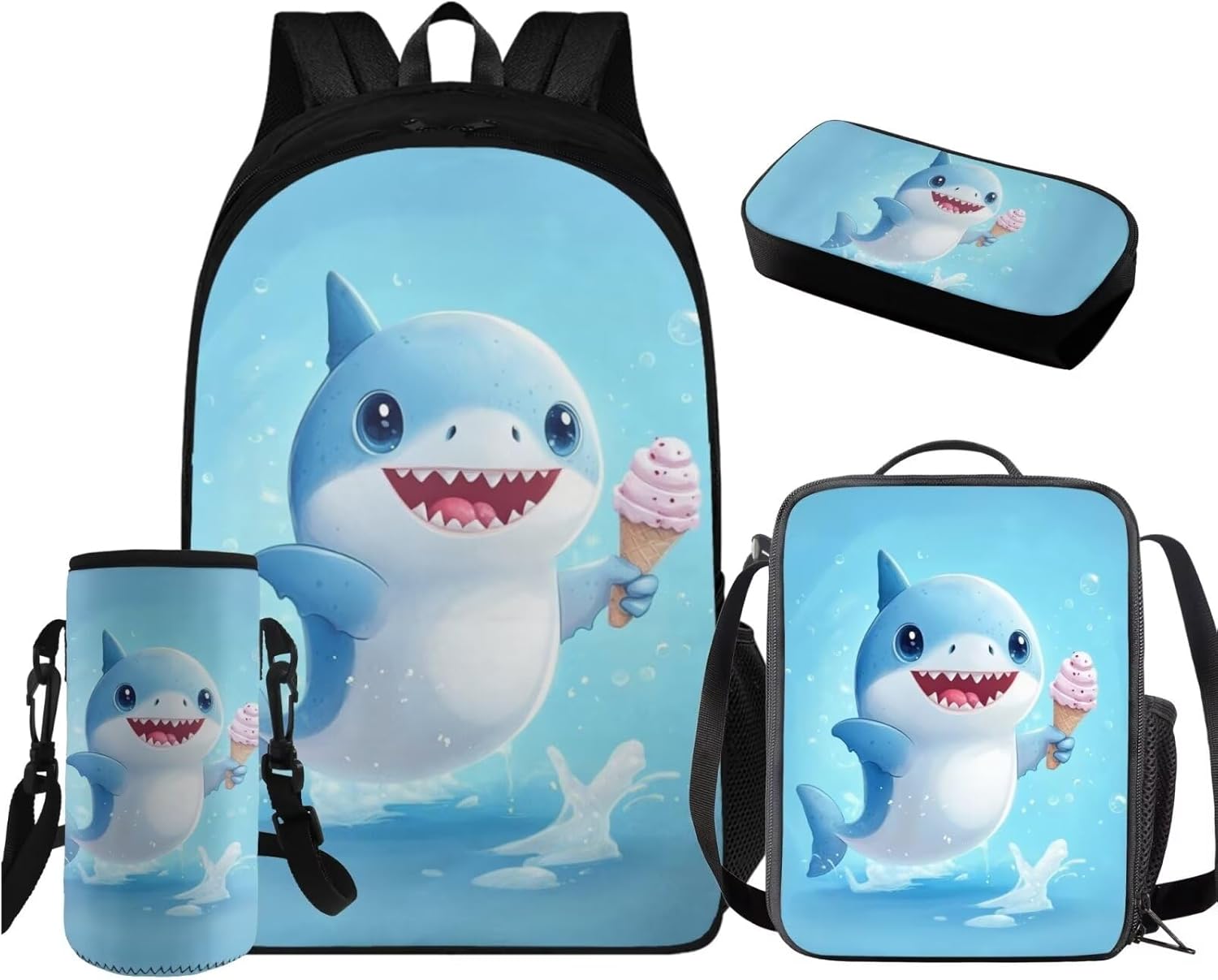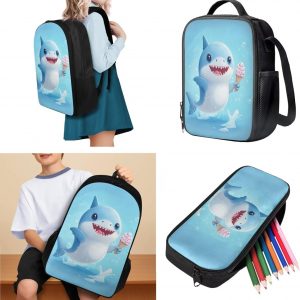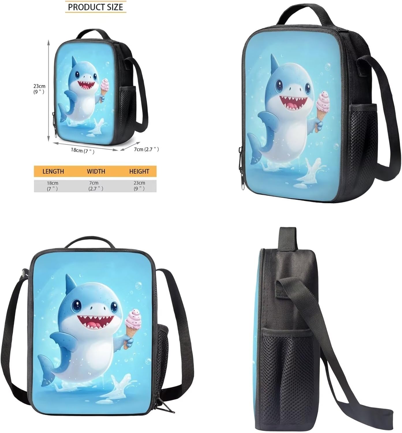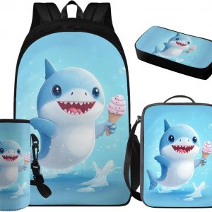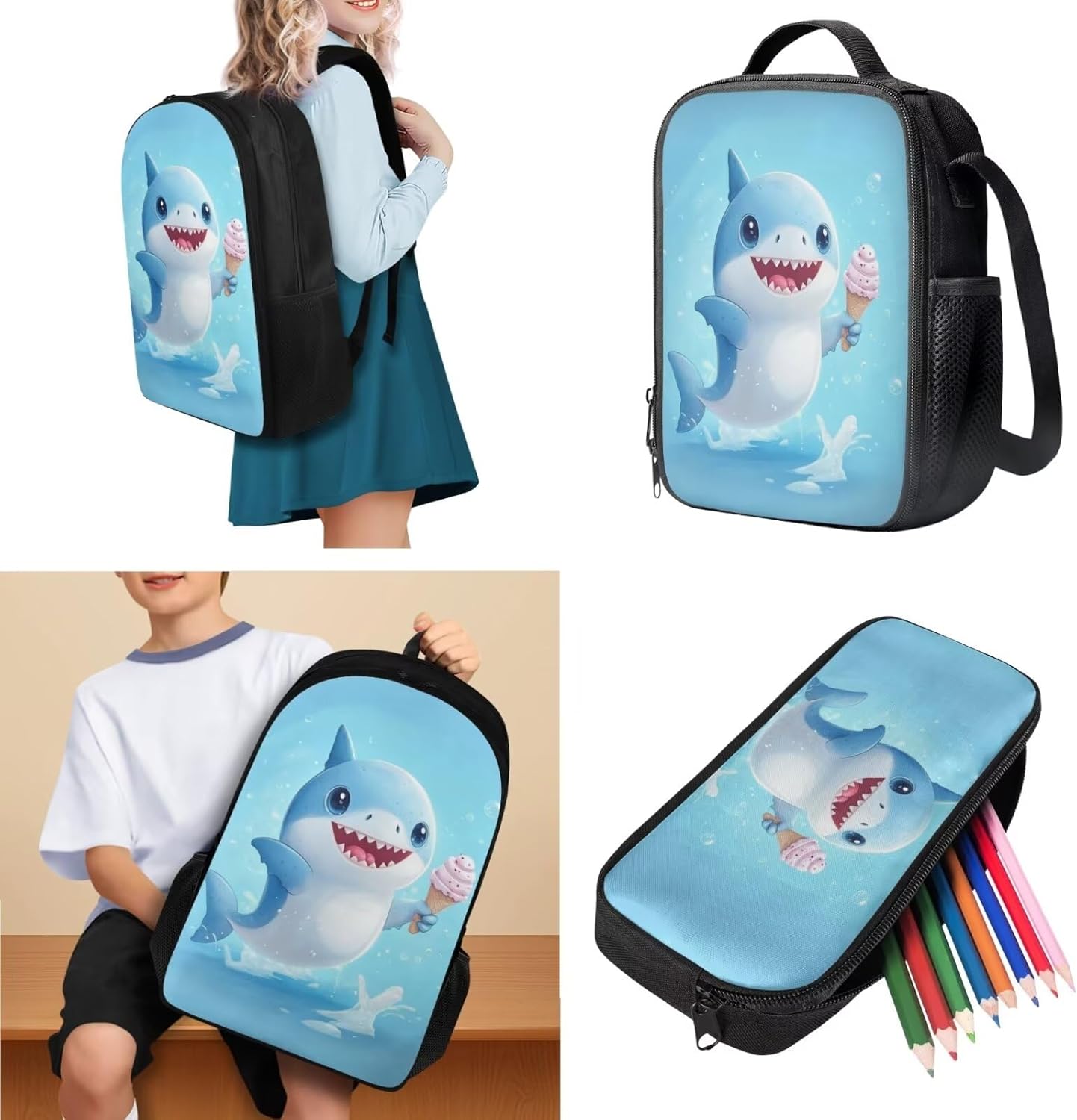 Rnyleeg Cartoon Shark Backpack for Kids 6-8 with Lunch Bag Kawaii School Backpack Set for Boys Girls Sky Blue Kids Bookbag for Elementary Students