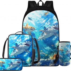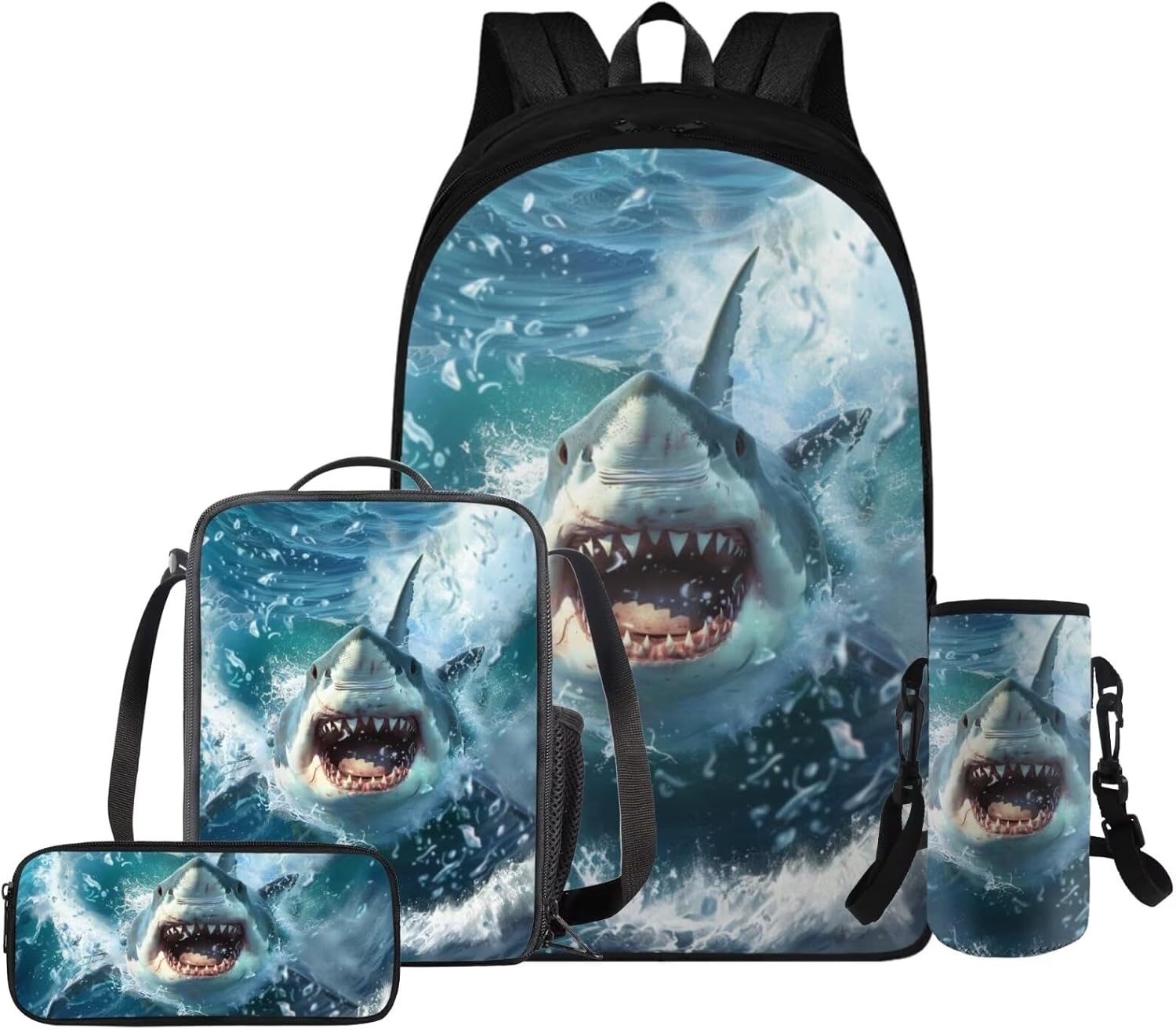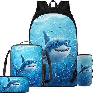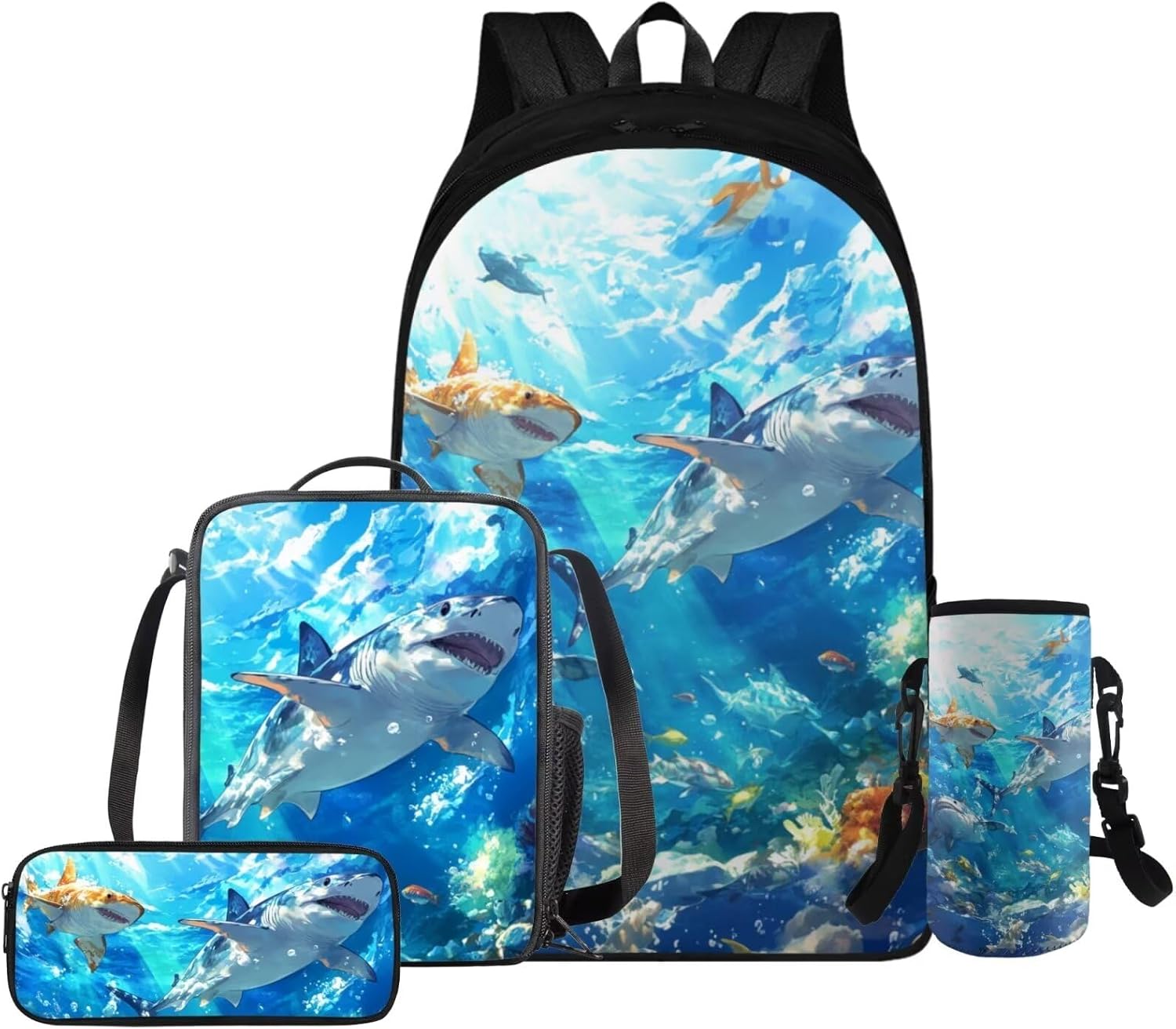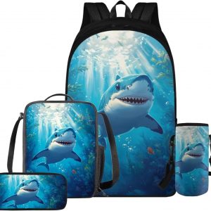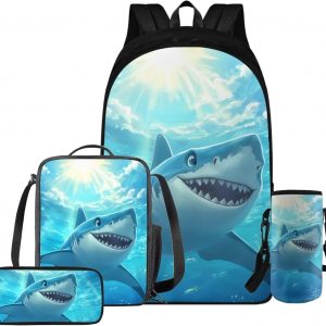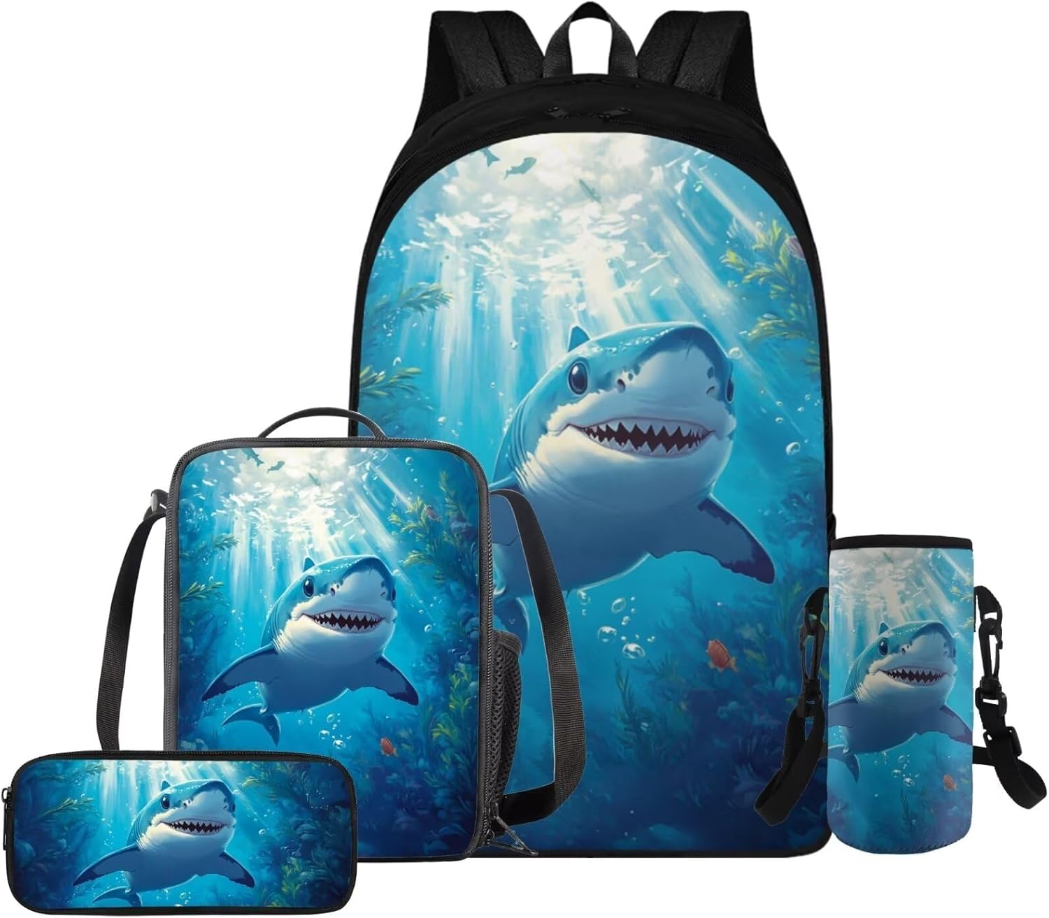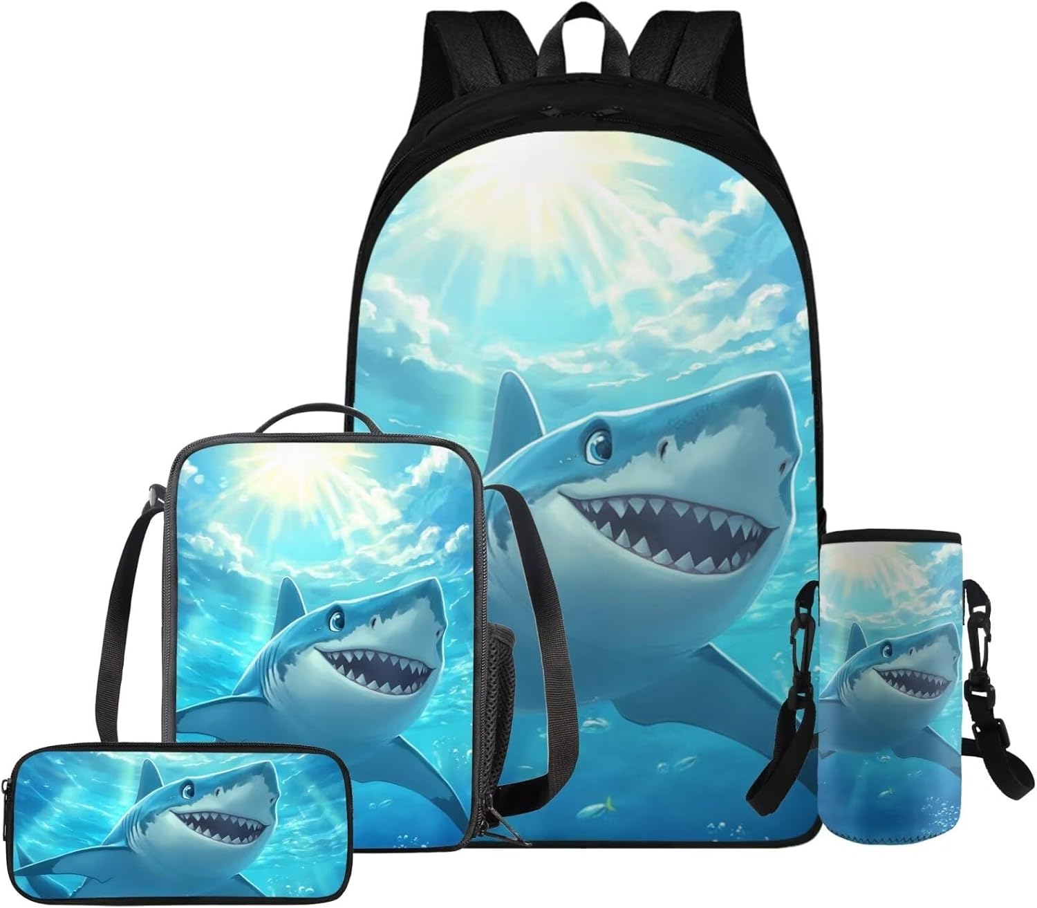 Rnyleeg Cartoon Shark Backpack for Kids 6-8 with Lunch Bag Kawaii School Backpack Set for Boys Girls Sky Blue Kids Bookbag for Elementary Students