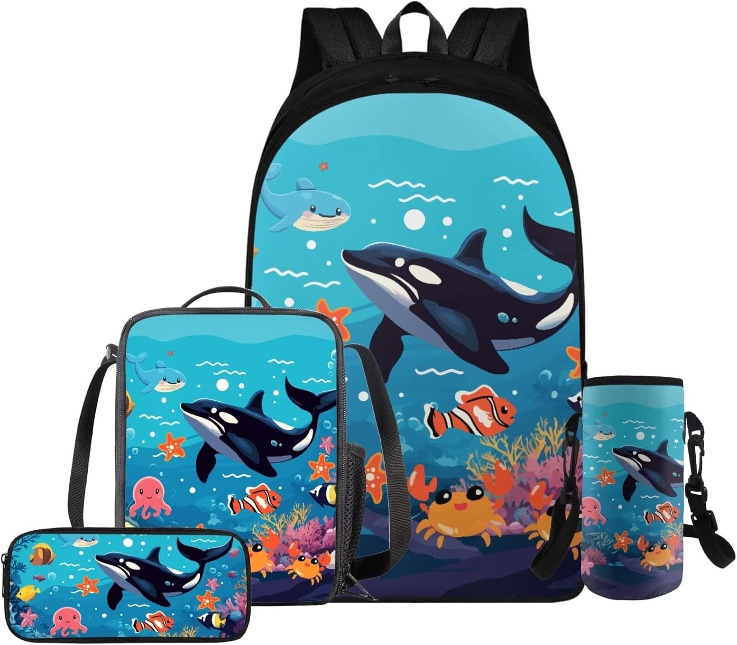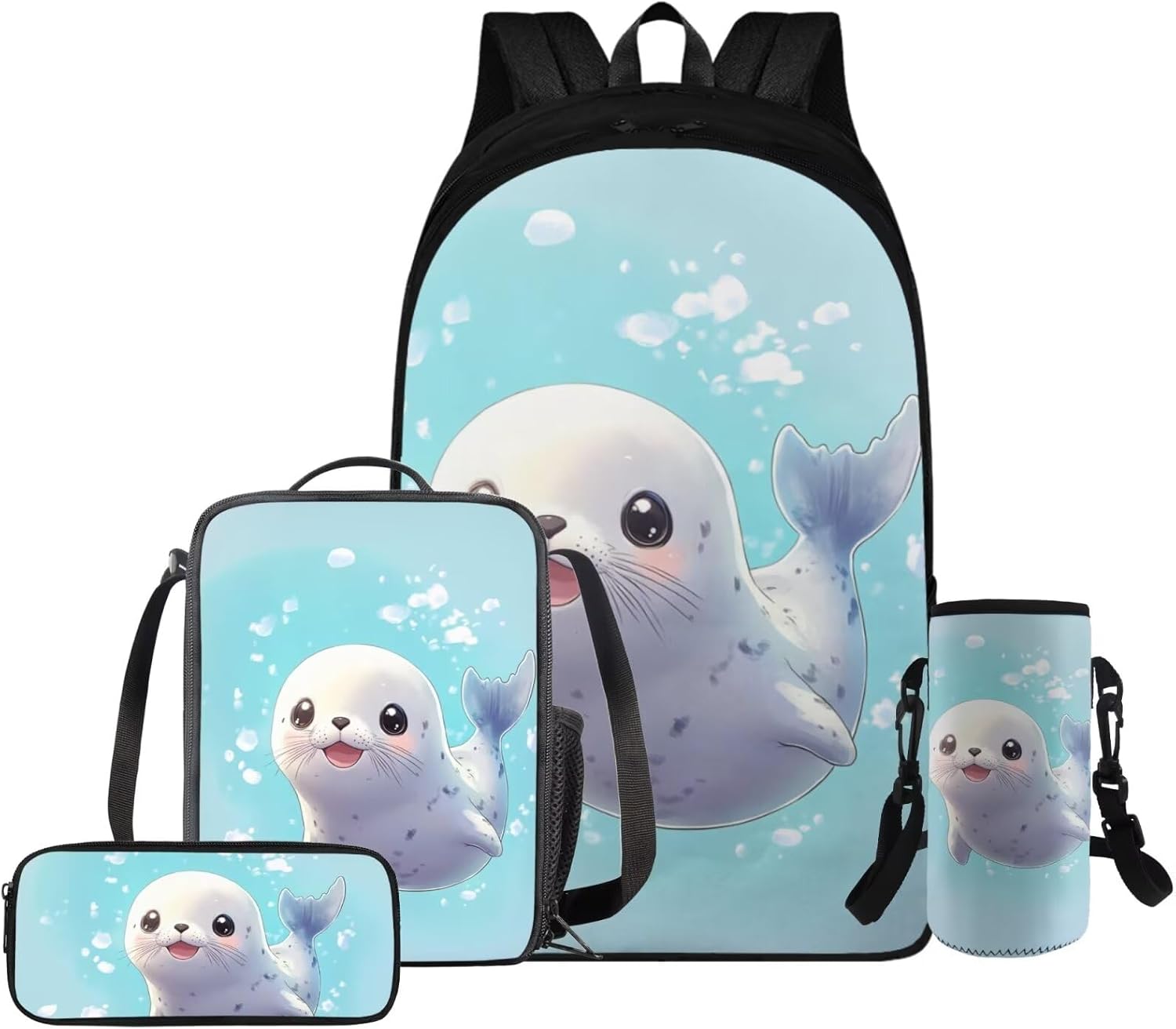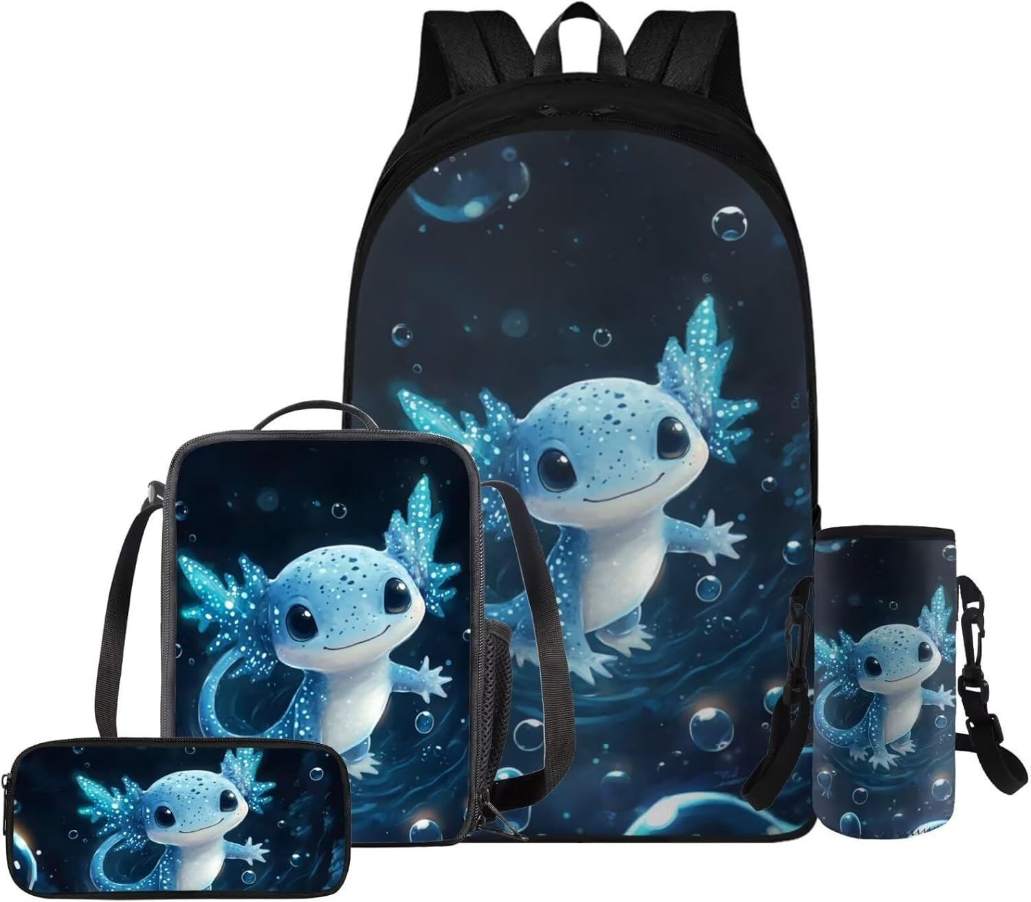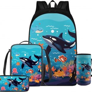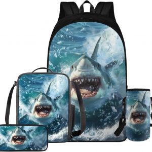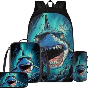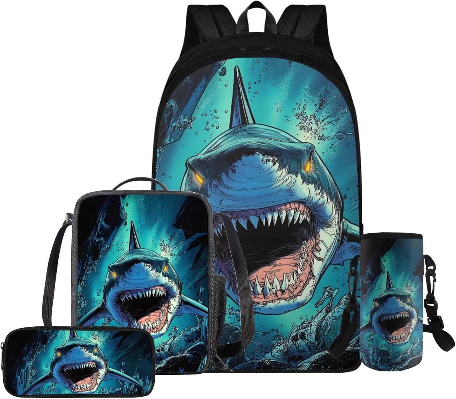 Rnyleeg Cartoon Shark Backpack for Kids 6-8 with Lunch Bag Kawaii School Backpack Set for Boys Girls Sky Blue Kids Bookbag for Elementary Students