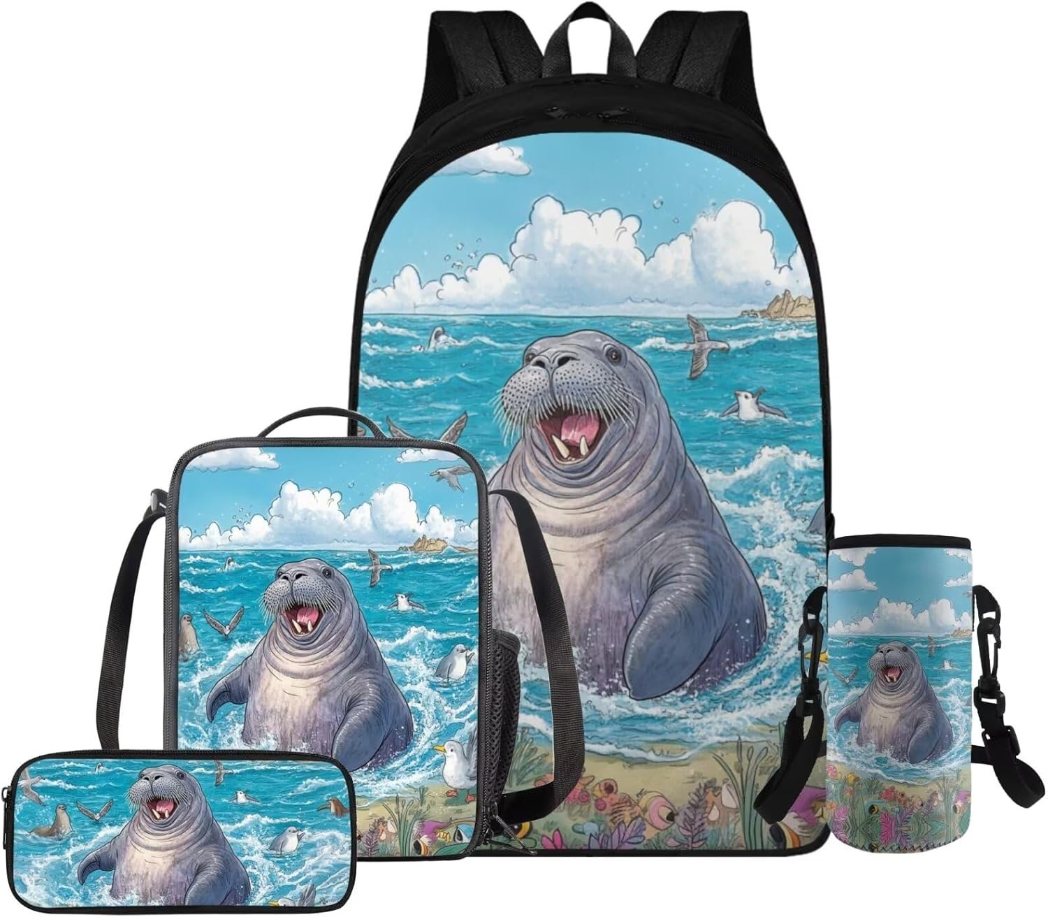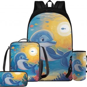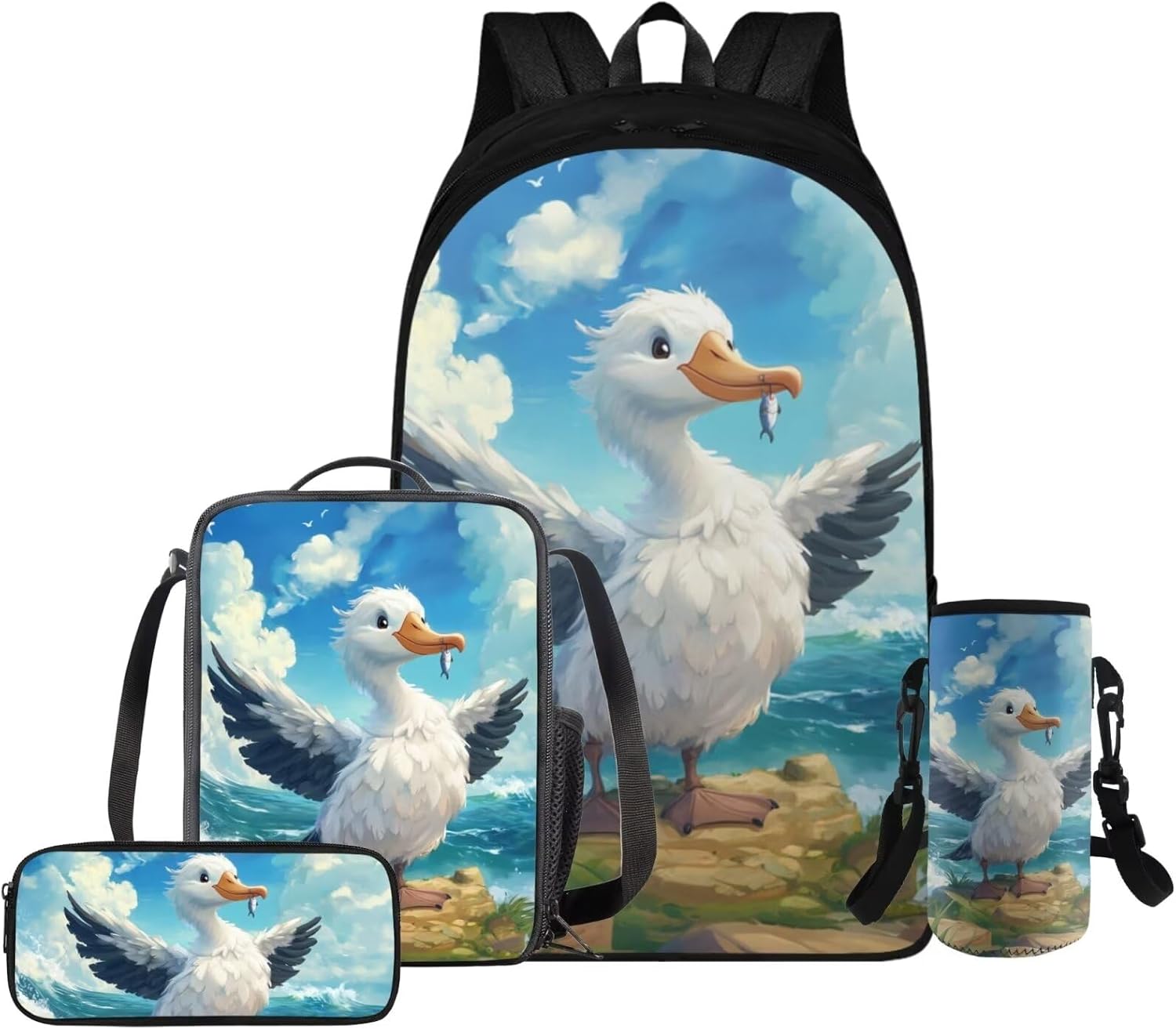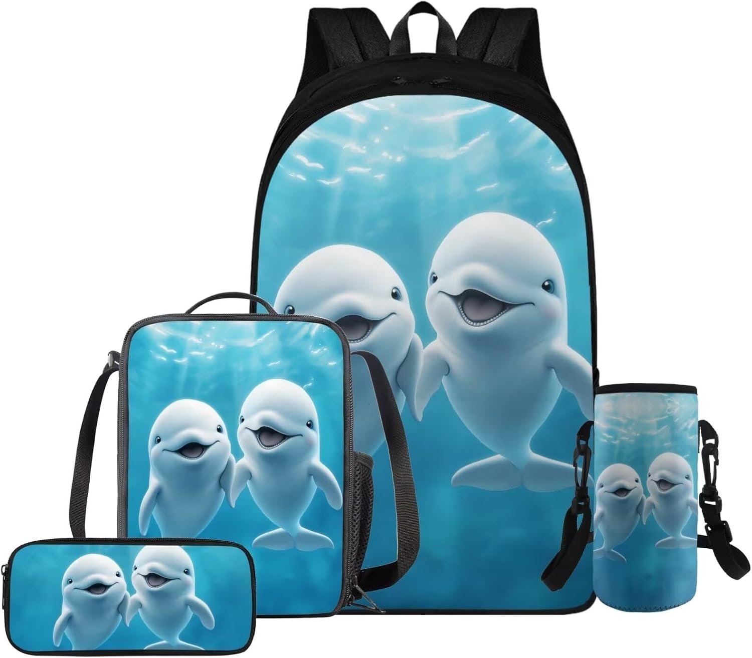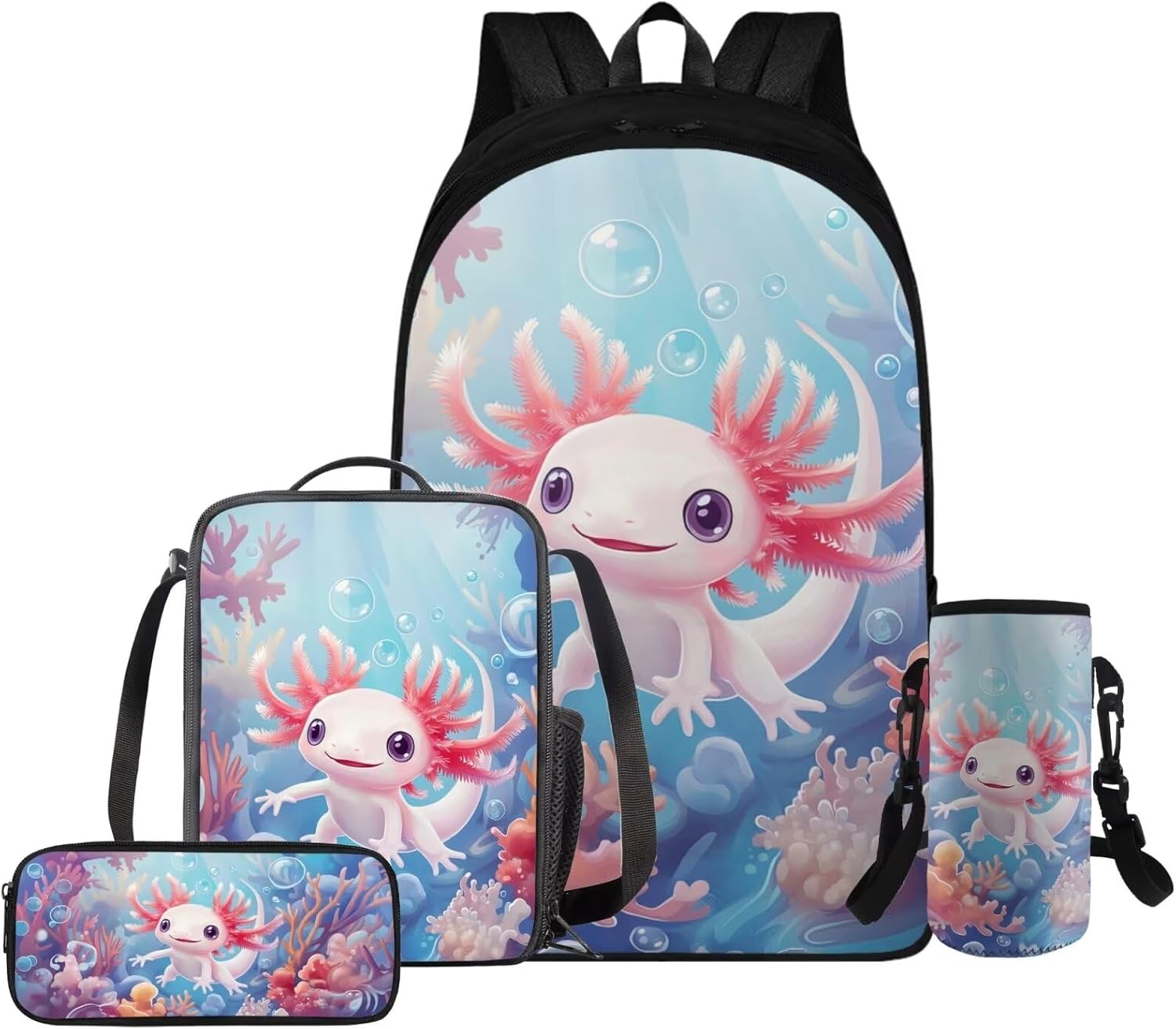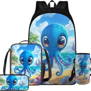 Rnyleeg Cartoon Shark Backpack for Kids 6-8 with Lunch Bag Kawaii School Backpack Set for Boys Girls Sky Blue Kids Bookbag for Elementary Students