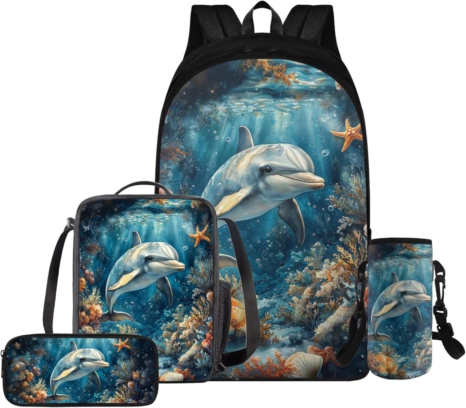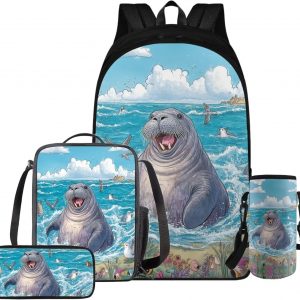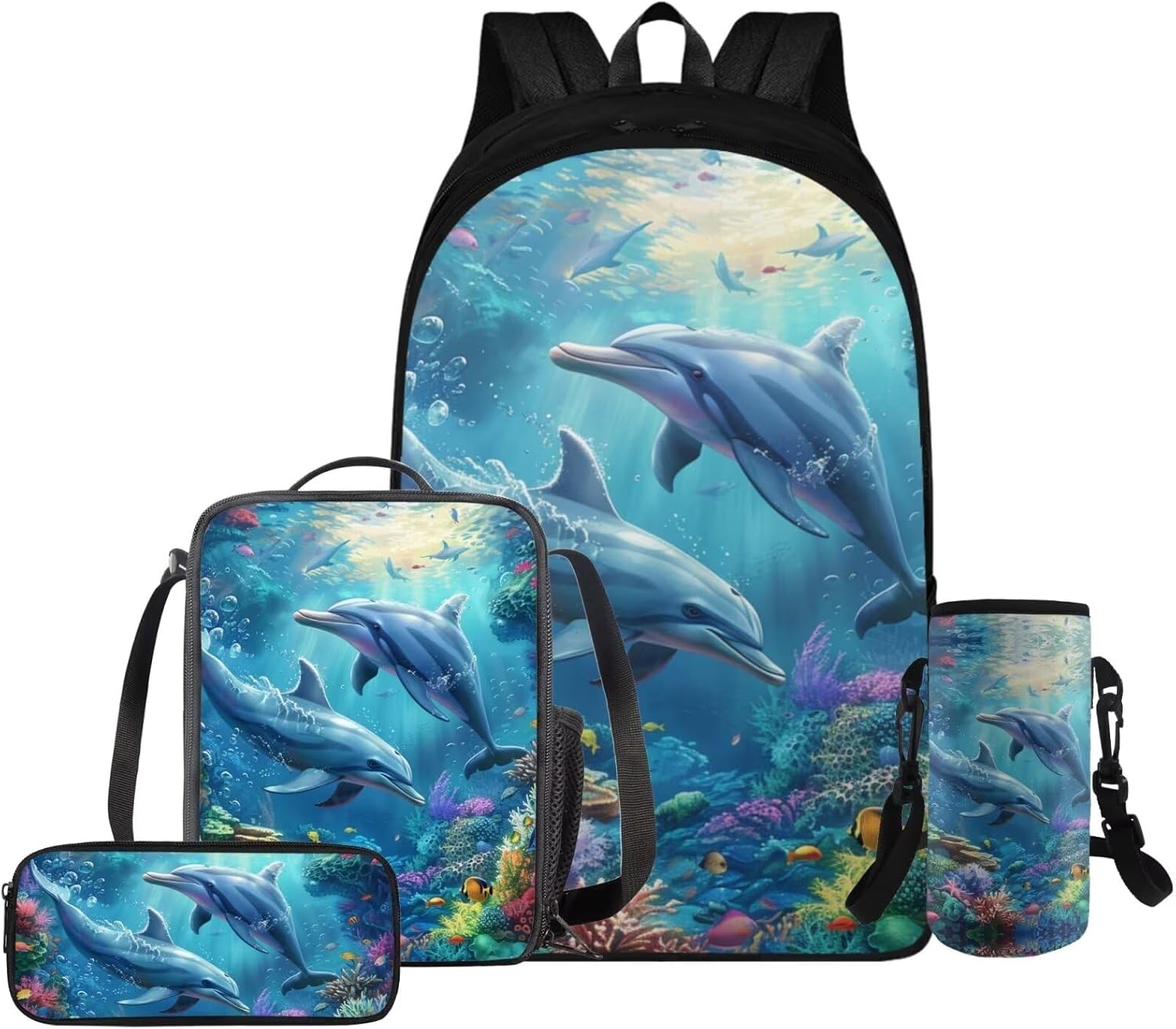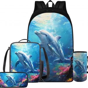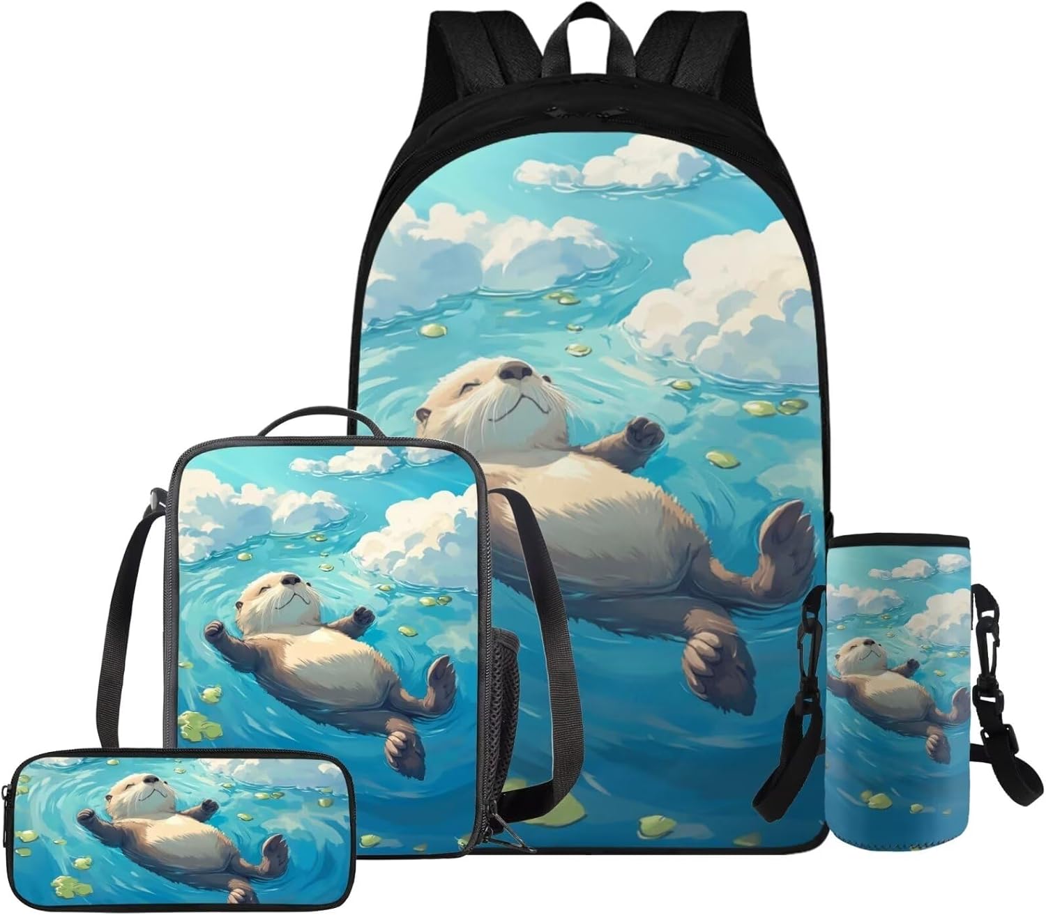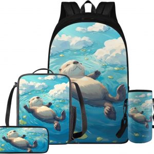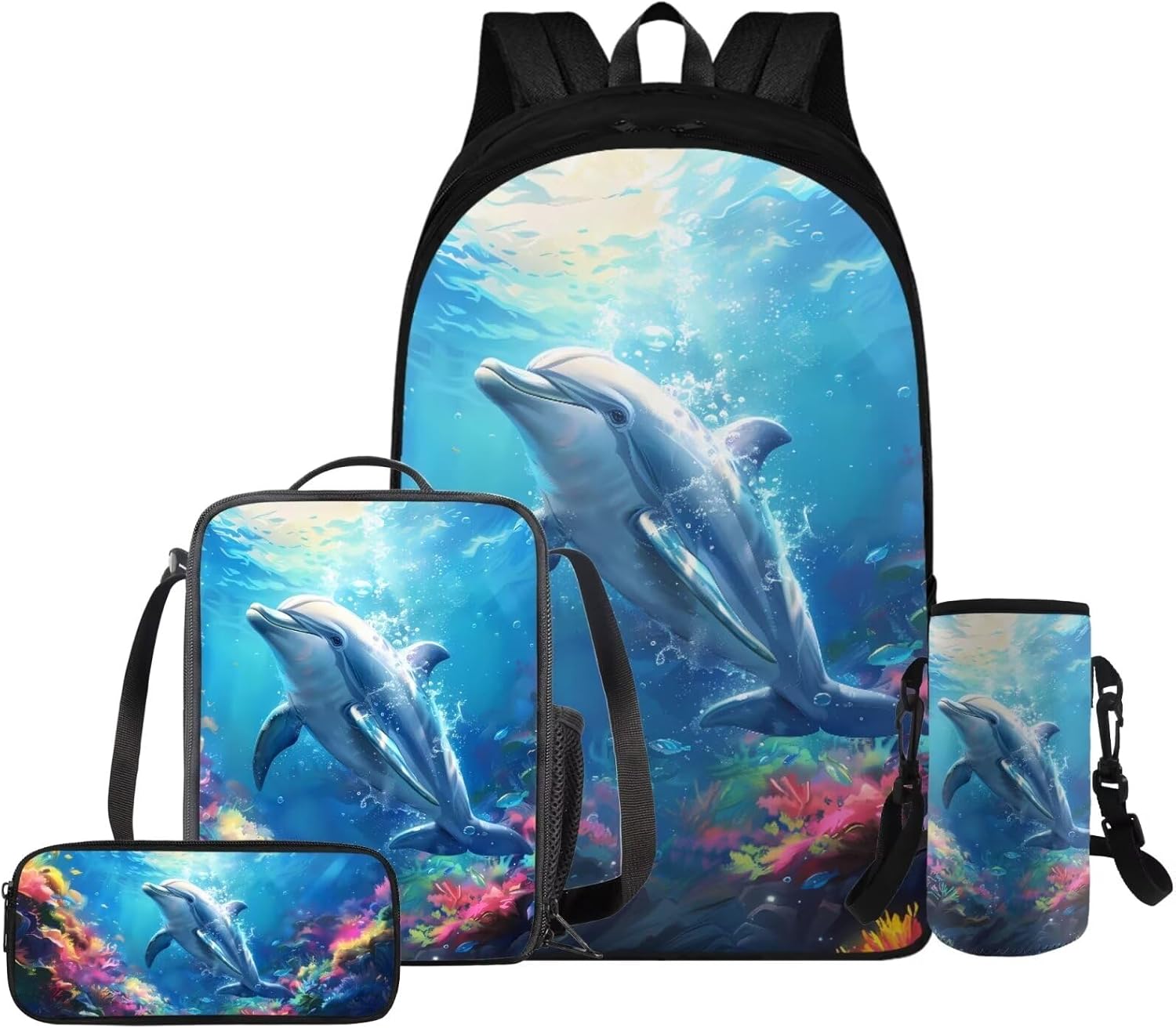 Rnyleeg Cartoon Shark Backpack for Kids 6-8 with Lunch Bag Kawaii School Backpack Set for Boys Girls Sky Blue Kids Bookbag for Elementary Students