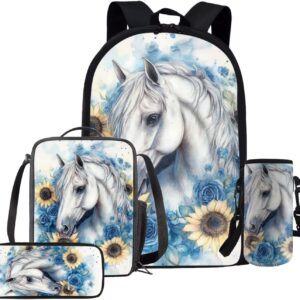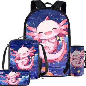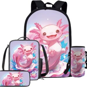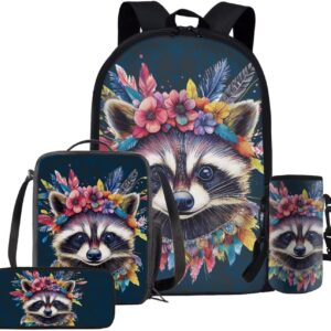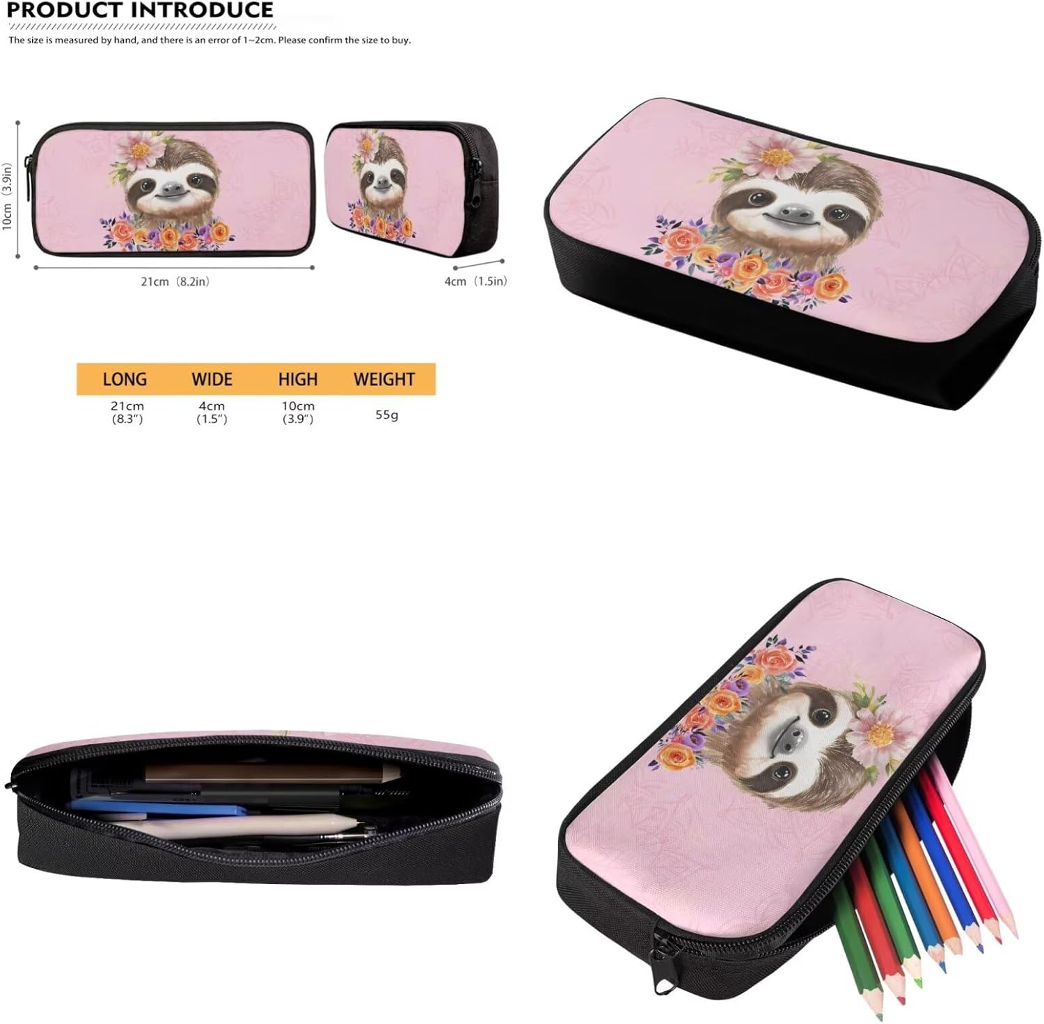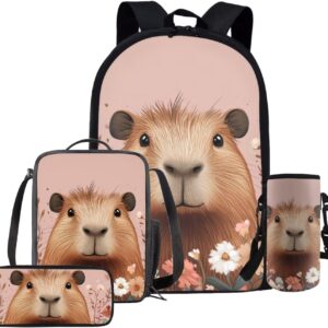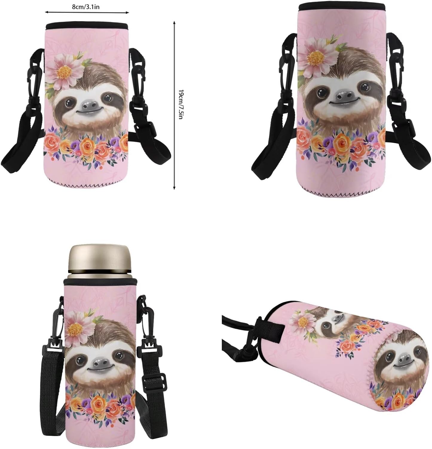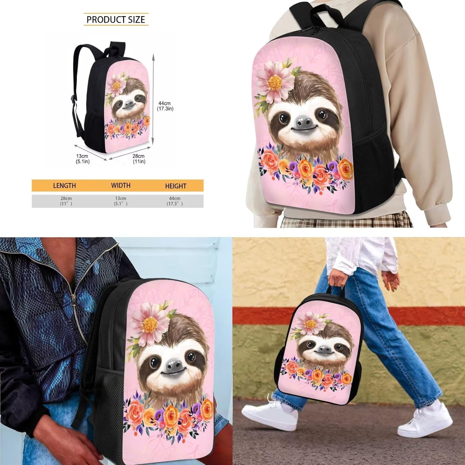 Rnyleeg Flower Sloth Backpack for School Pink Cute Girls Backpack with Lunch Box and Water Bottle Cover 4 in 1 Bookbag Set for Elementary Middle Students Kawaii Bag for School