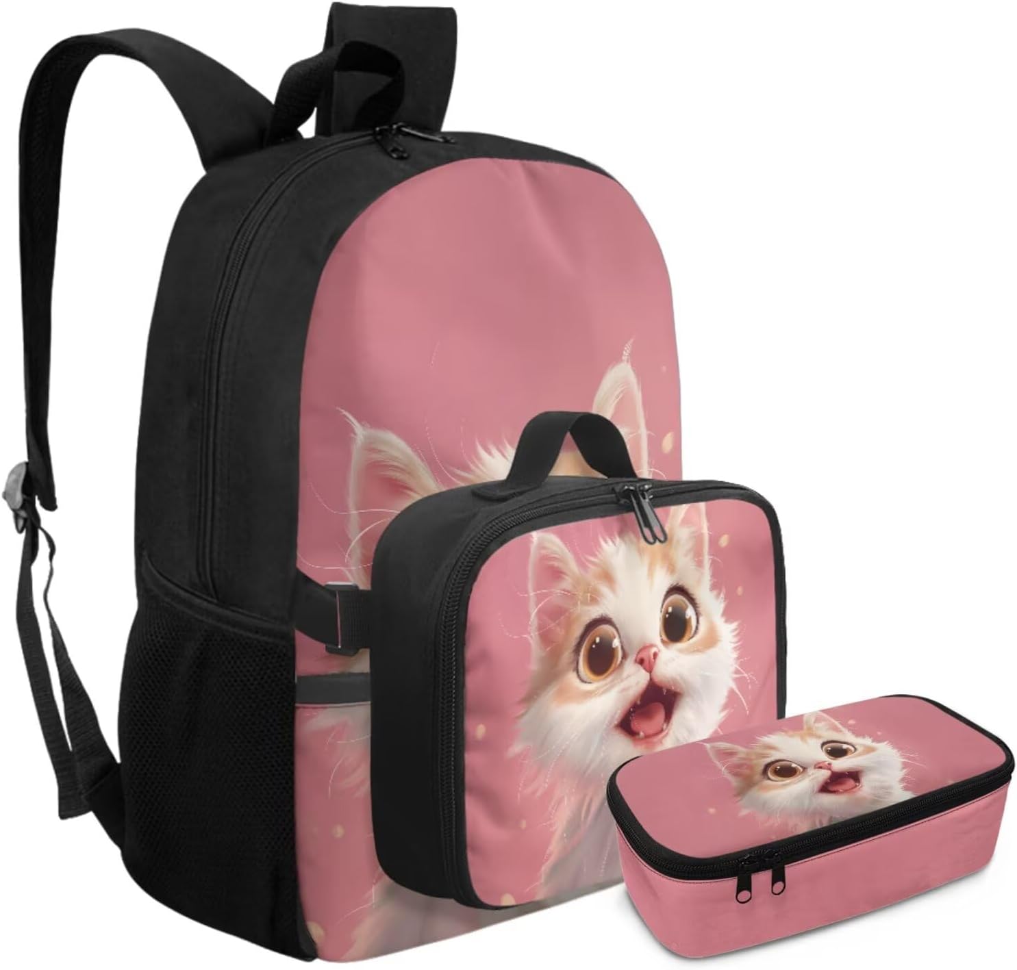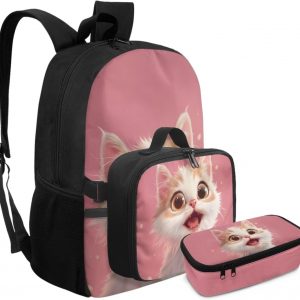 School Backpack Set for Kids -Material: 600D Polyester. Polyester is lightweight, tear-resistant, and easy to clean, making it ideal for kids’ school bags. -Complete School Kit: This set includes a 17-inch backpack meal kit, a large capacity pencil case, providing everything your child needs for school or outdoor activities in one convenient package. -Fun and Kid-Friendly Designs: Featuring unique and vibrant patterns, this backpack set is designed to spark joy and excitement. Choose from various styles that reflect your child’s personality, encouraging self-expression and boosting their enthusiasm for learning. You can even customize the patterns to create a one-of-a-kind set that highlights your child’s individuality. -Stay Organized and Safe: Keep school supplies neat and accessible with well-designed compartments that are simple and safe for children to use. Perfect for carrying books, lunch, and essentials, this set is suitable for school, daycare, camping, travel, and more. -Recommended Age: Ideal for elementary school, making it a versatile and practical choice for growing kids.