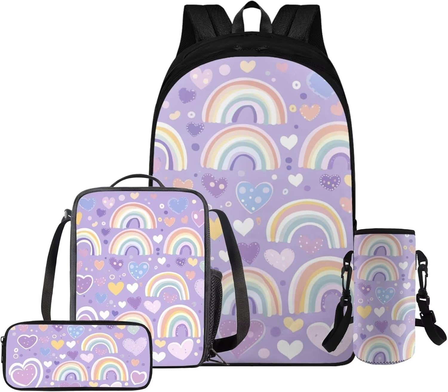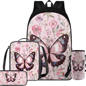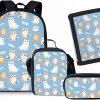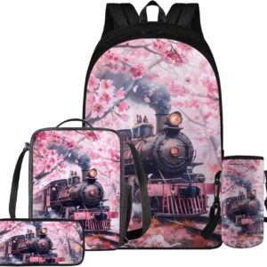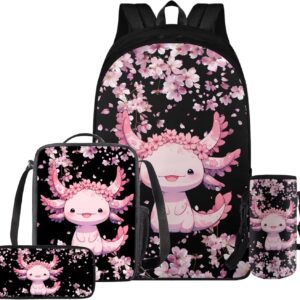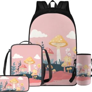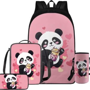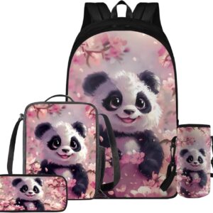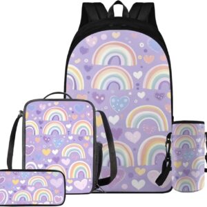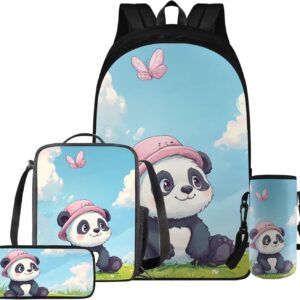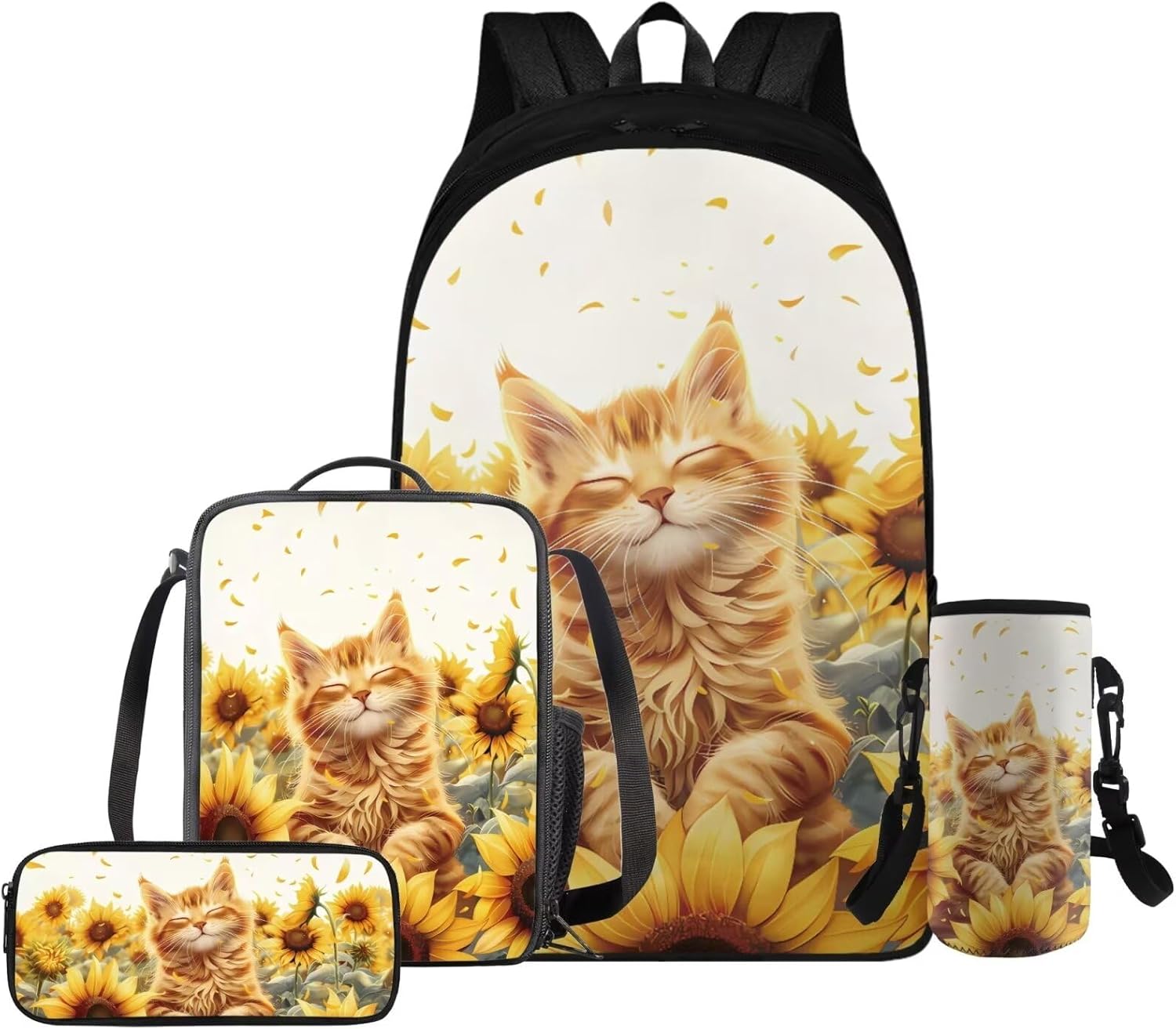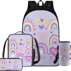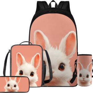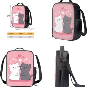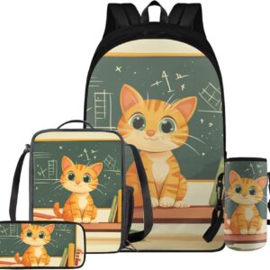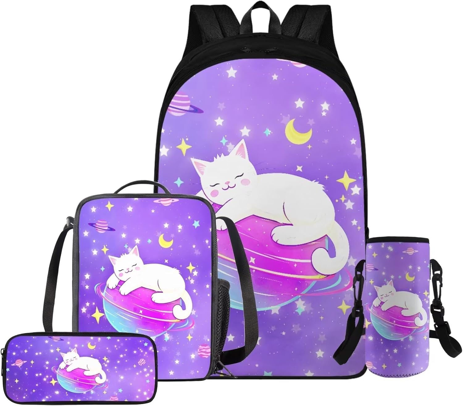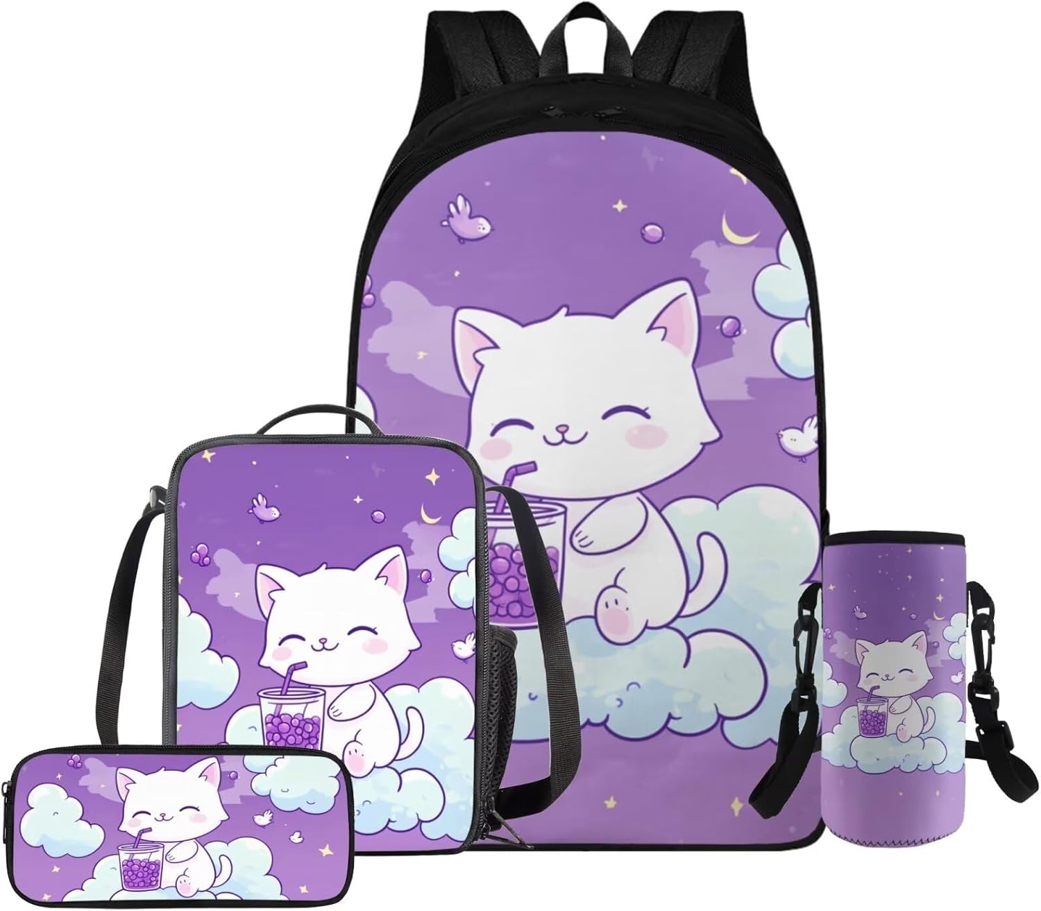 Rnyleeg Pink Cat Backpack for School Girls 9-12 with Lunch Box Kawaii Kids Backpack Set Middle School Bookbag Set 4 in 1 Kids School Bag Rucksack